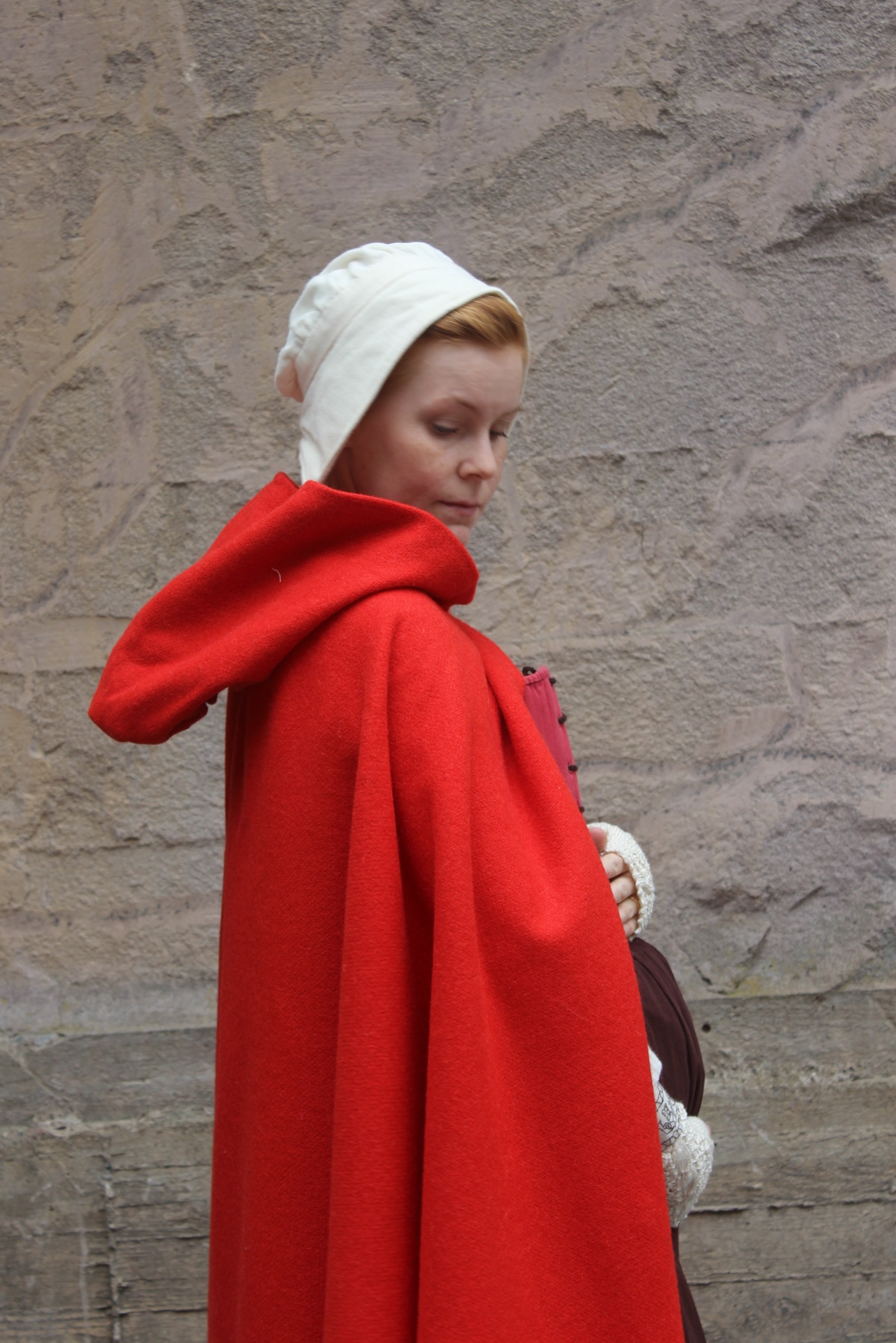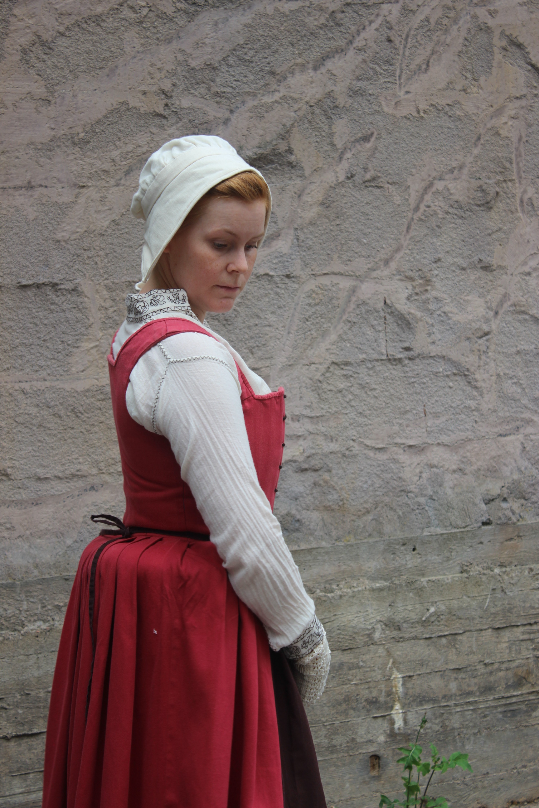 Historical accurate: Pretty good (except for the cotton fabrics, which should have been wool and linen). Lots of hand sewing and historical methods where used. The Apron and Coif are totally handmade, and so are all the visual seams on the Kirtle.
