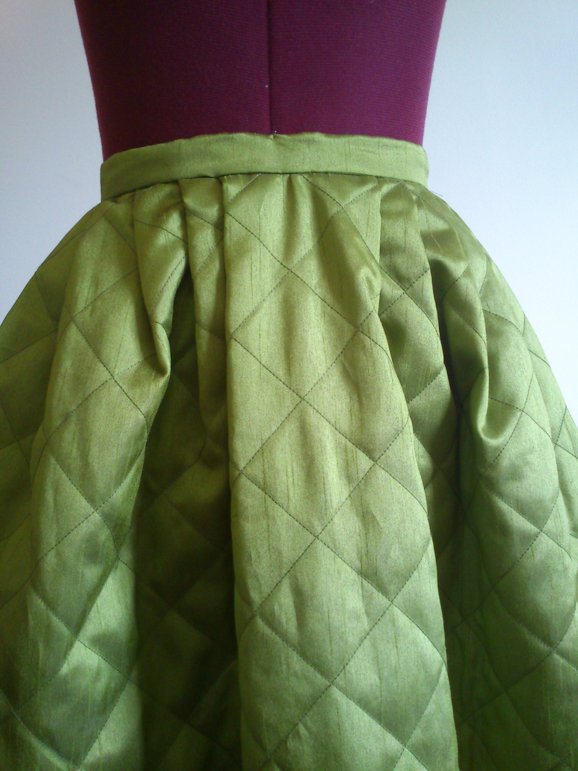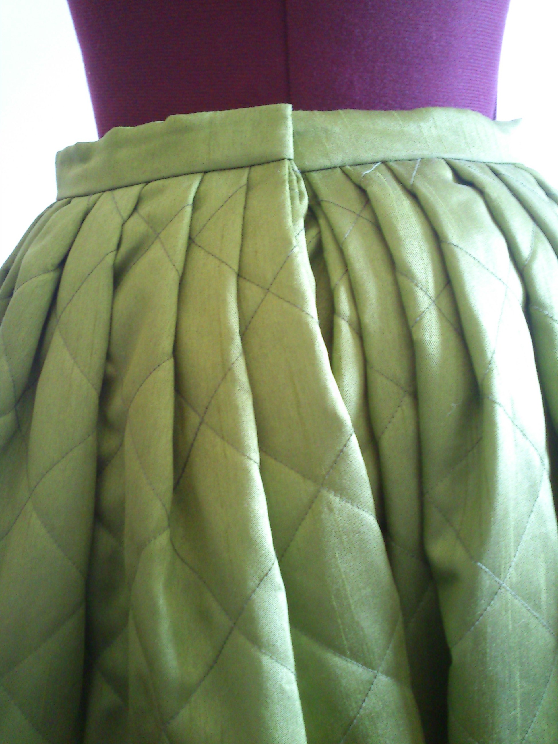 I bought some lovely green pre-quilted fabric from my nearest fabric store – I know it is kind of cheating to use pre-quilted fabric but I just didn’t have the time to hand-quilt (or even machine-quilt) a petticoat on my own this time.