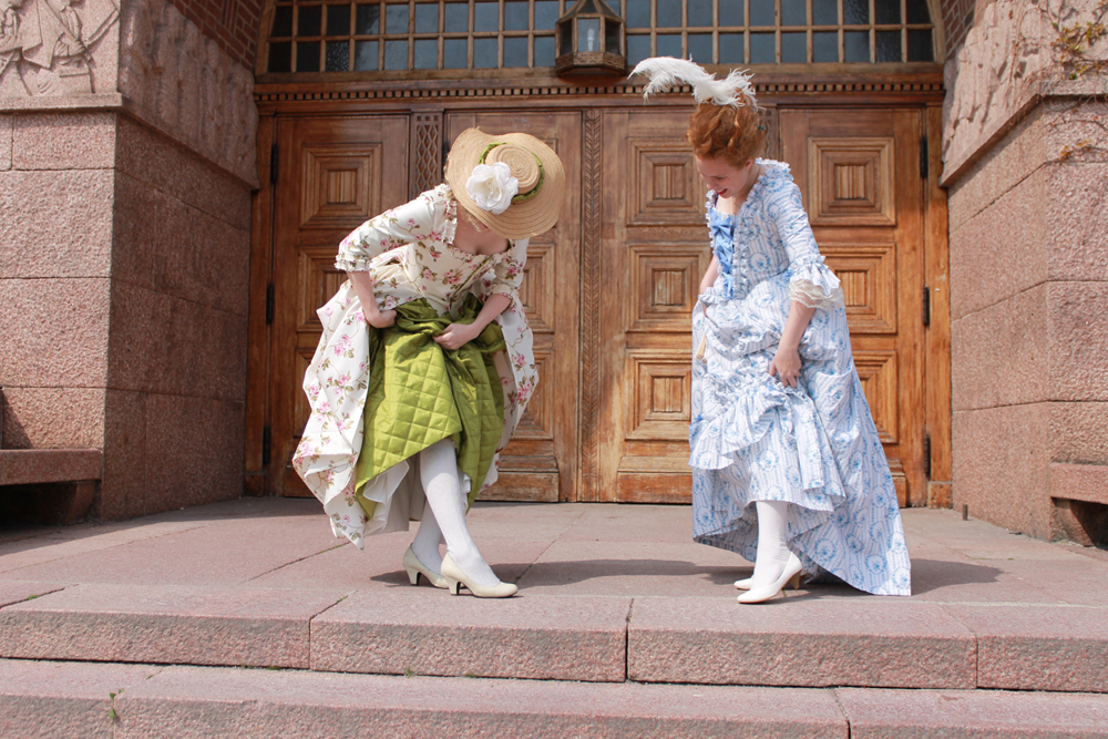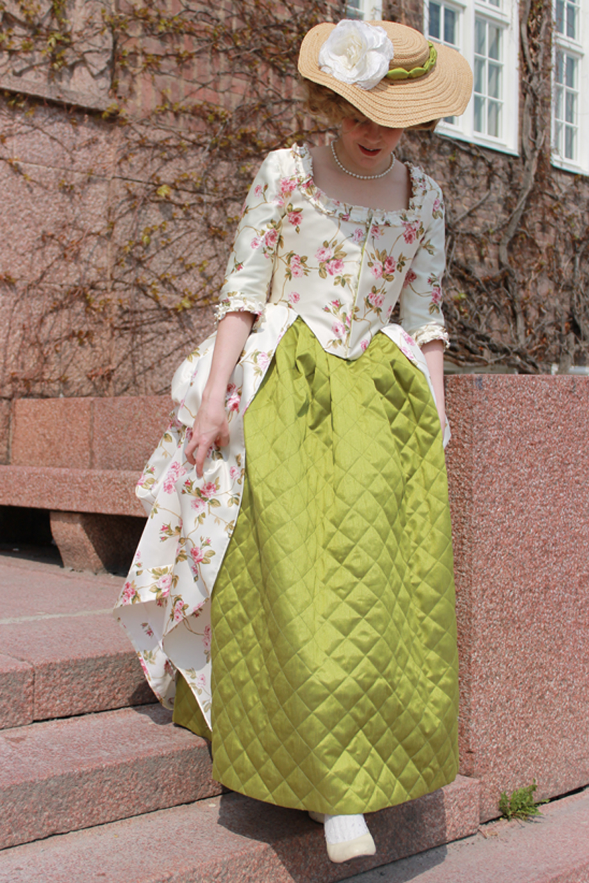 The petticoat is really comfortable to wear and works perfect both as a hidden petticoat under skirts for some extra fullnes, and as a skirt on its own. And I love that it matches both my new robe anglaise and a jacket I made a year ago. It makes me feel like I for once actually planned my historic wardrobe.