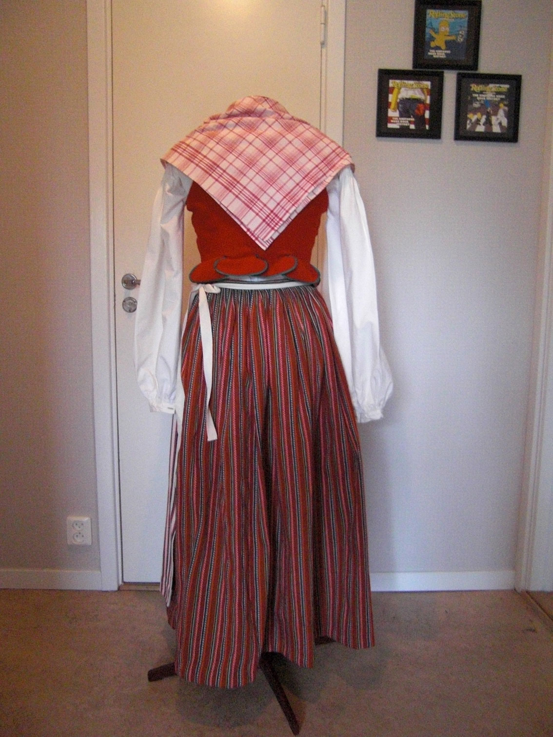 Here is my finished folk costume on my dressform taken three years ago. You will get some pictures of it in action next time.