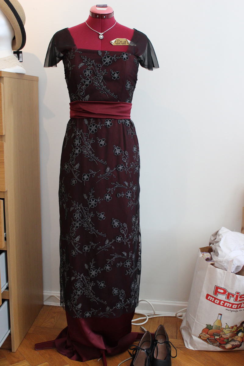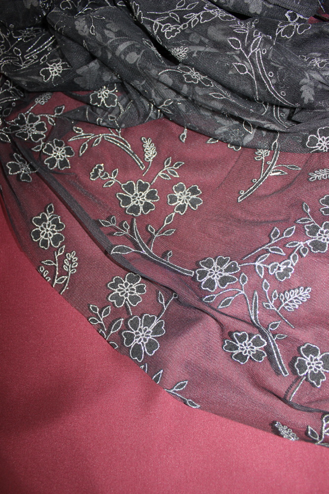 So when I found this wonderful black tuile, with black and silvery flowers on sale I bought the whole lot. I also got this wine colored viscose to match.