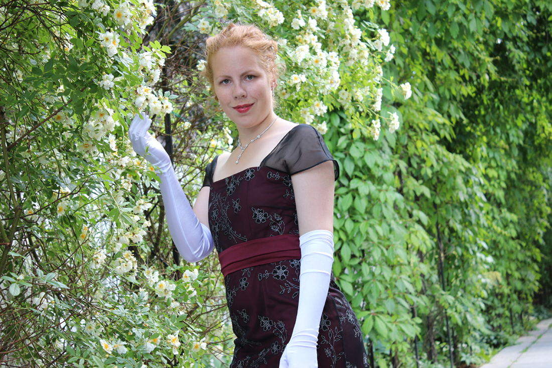 When I decided on the look of my sisters gown for the “Titanic exhibithion” I only knew that I wanted to make it simple yet beautiful. I needed to use pattern I already owned and find fabric from stash or cheap in the store. There would be no time to look for perfect fabric, or to indulge in intricate details on the garnment – quick and easy was the theme.