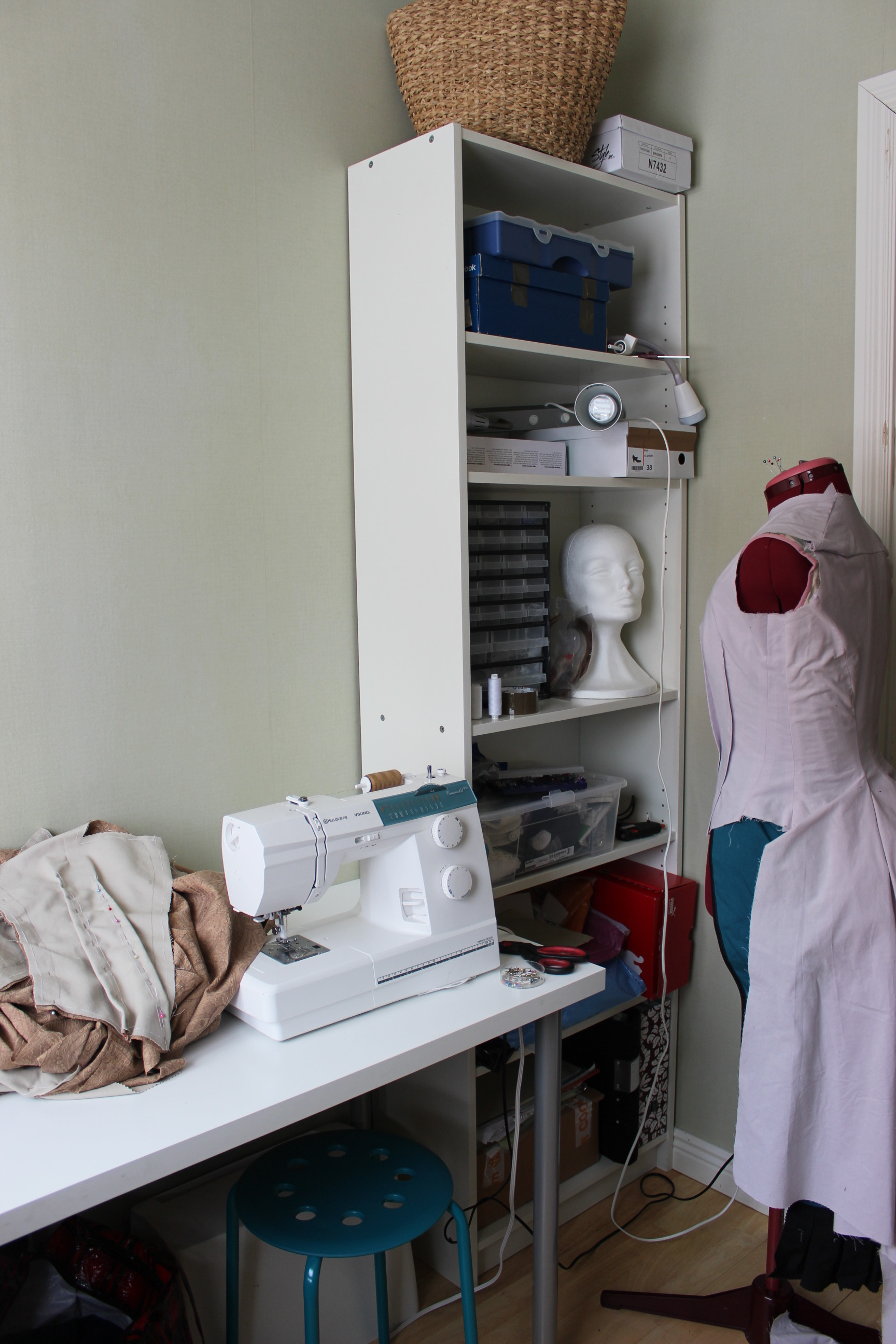 One of my demands for this room was a wardrobe. And as you can se I’ve stuffed it full. The bags and big boxes conains fabric and will be sorted and stored in our basement.