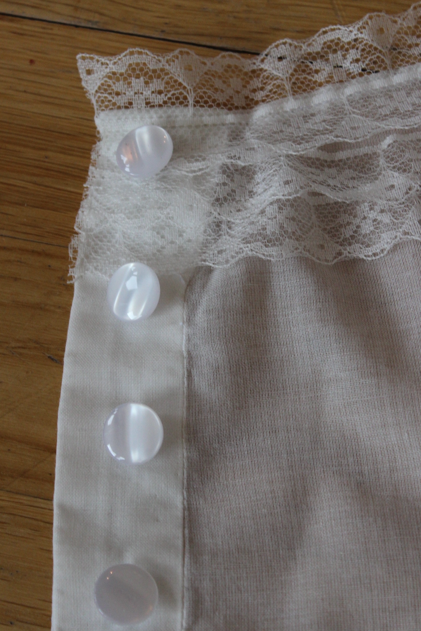 Notions: Thread, 8 buttons and 4 m of narrow lace,