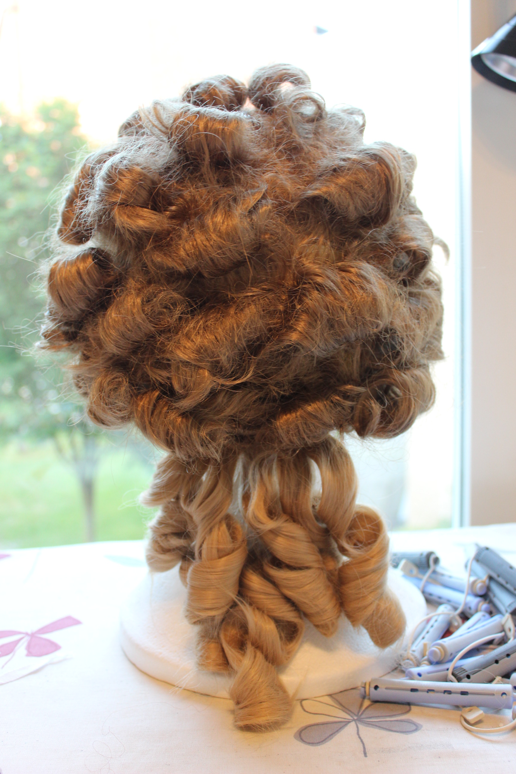The wig right after I removed the curlers.