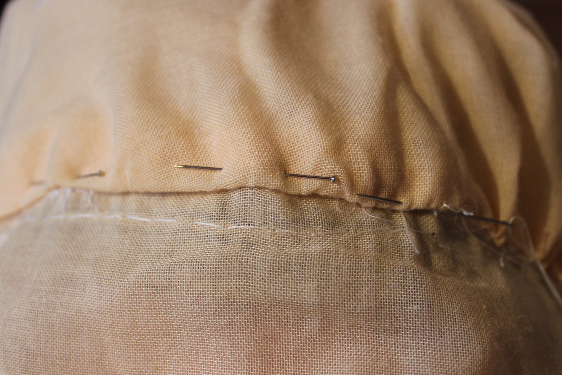 When I wore the dress for he first time I noticed The gathering at the bust was somewhat to far to the sides, so I un-picked the under bust seam and moved the gathers 1,5 cm to the middle.