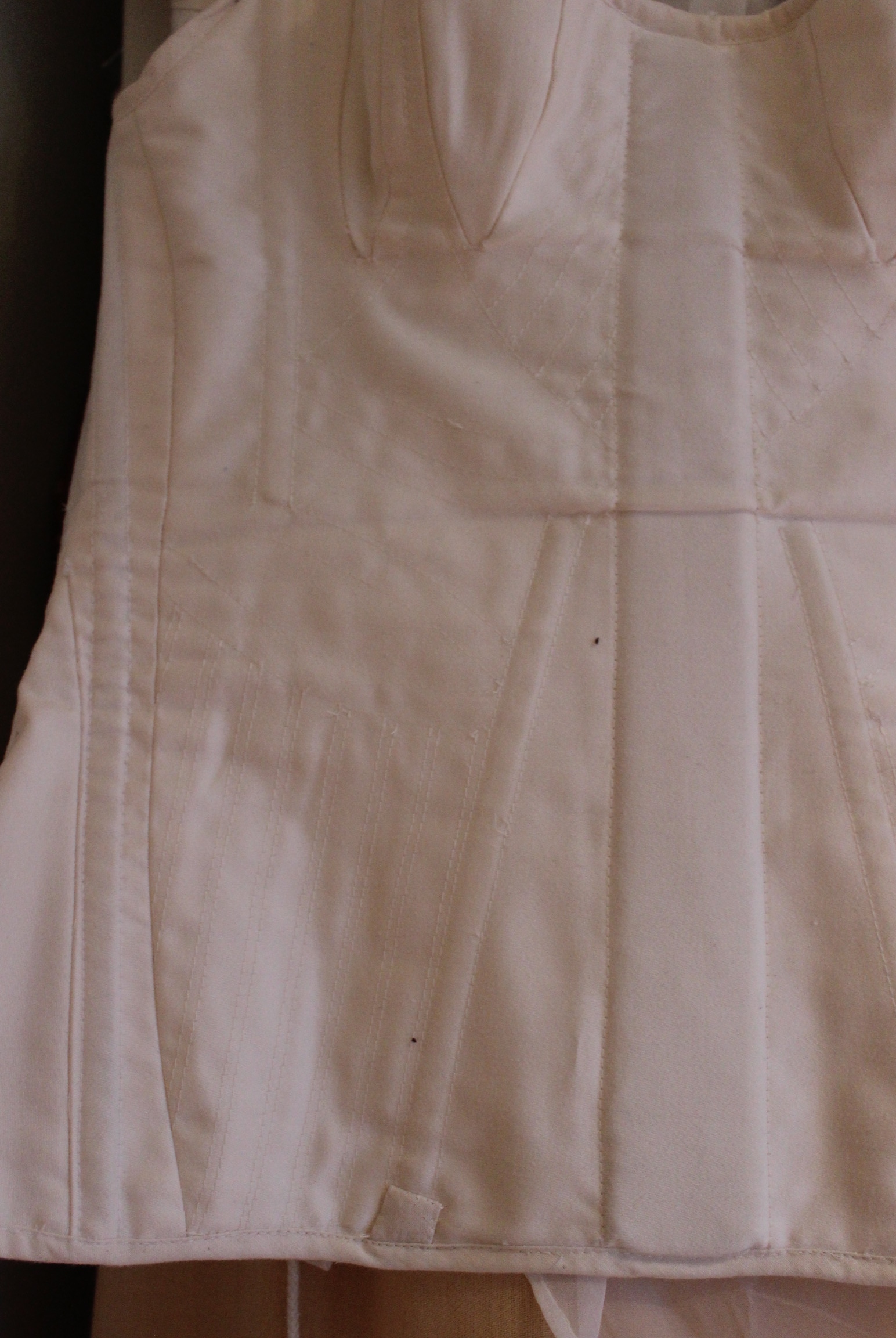 I started with my regency corset from last autumn. The corset itself are great and I love the fit and the shape it gives me. But the combination of wear and way to weak fabric have left the boning poking through (and often as not stabbing my thighs.
