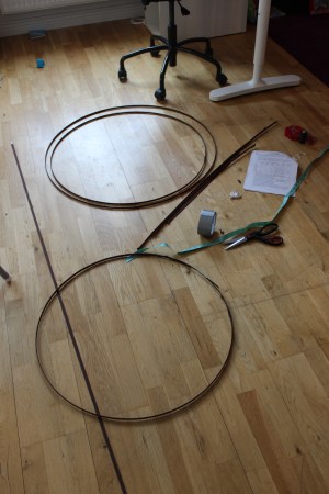 I spent a full evening measuring, cutting, encasing and taping the bones to make them into neat bias covered hoops.
