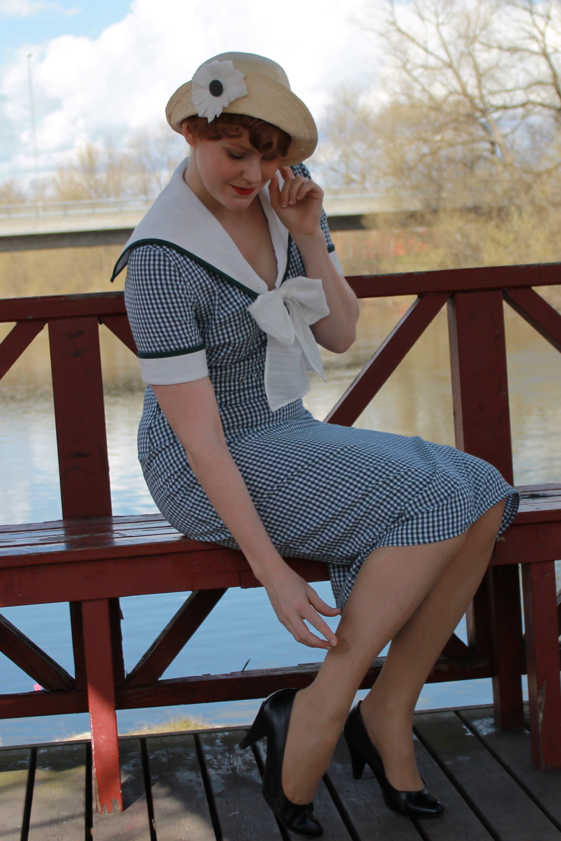 To really get the right 1930s look I decided to also make a matching hat. I bought a cheep straw hat and re-shaped it with some water and decorated it with a flower/bow.