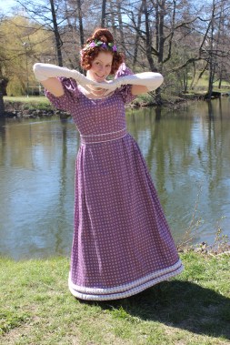 Here my sister’s wearing my green 1840s gown for a winter photoshoot we did a few years back.