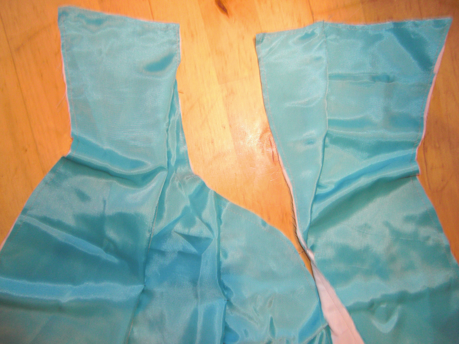 1 set of polyester curtains 140 x 250cm (bought at IKEA for 100 Sek (10 Usd)) was just enough for my sisters 1860s evening gown. (And yes I used up every scrap of the fabric)