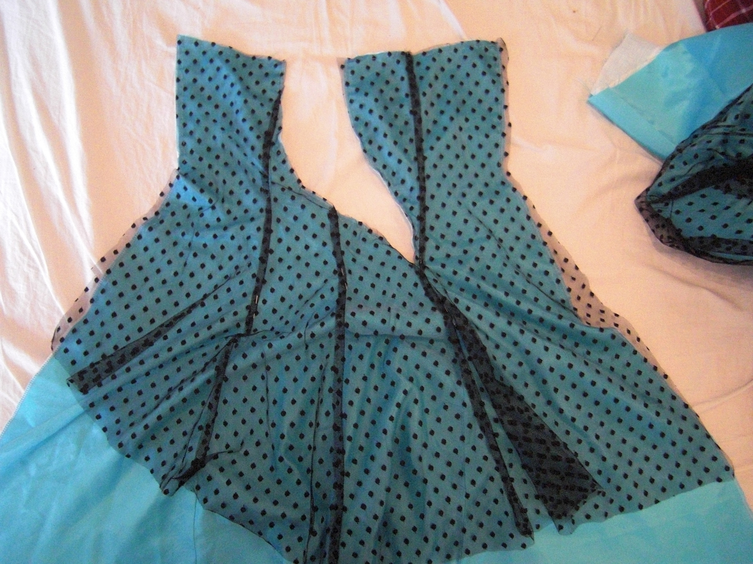 Two sets of cotton beddings made up this dress. The duvets was enough for an additional evening bodice.