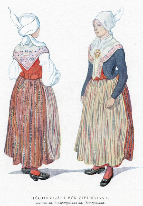 The two ladies in this pic are wearing identical jackets and two variations of the “Skedevi” costume. (left: the summer costume in white and pink cotton, and right: the sunday costume in red wool). I would love to make that jacket for myself – I do have the pattern…