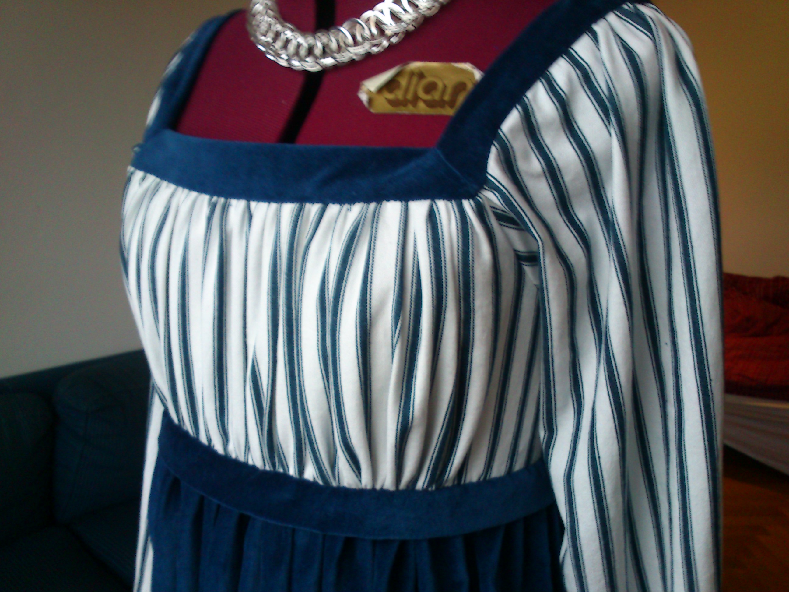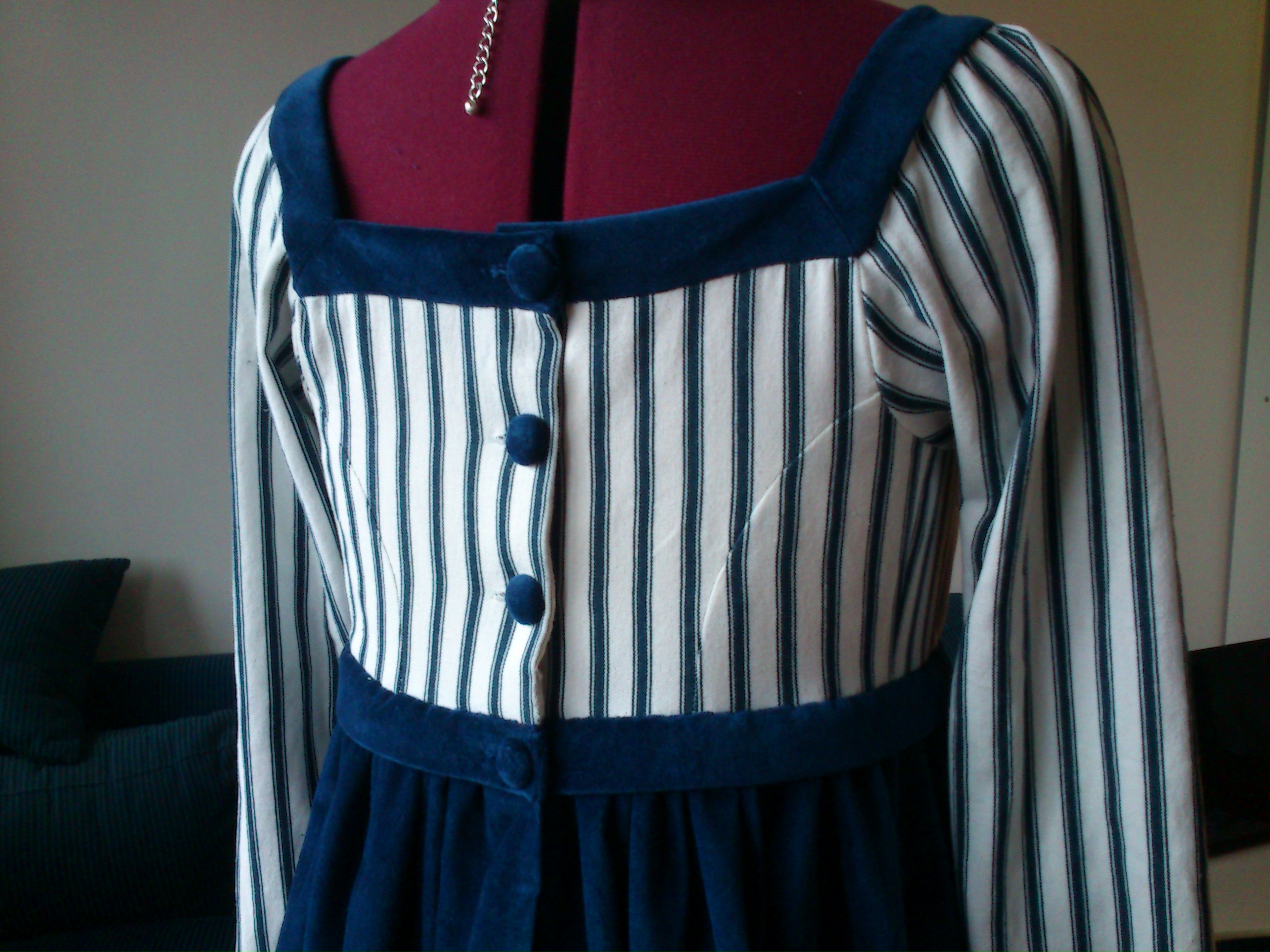 How historical accurate: Pretty good. The print’s not period but the fabric and the look of it is good, and even though it made mostly by machine all the finishing are made by hand. So maybe 8/10.
