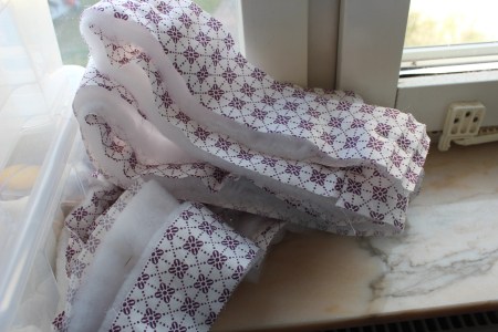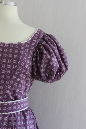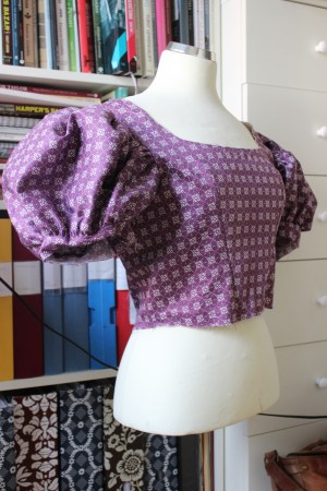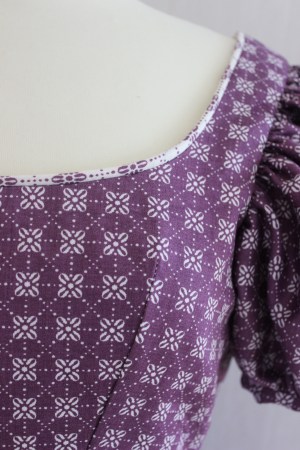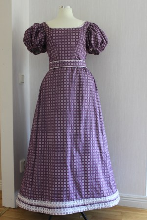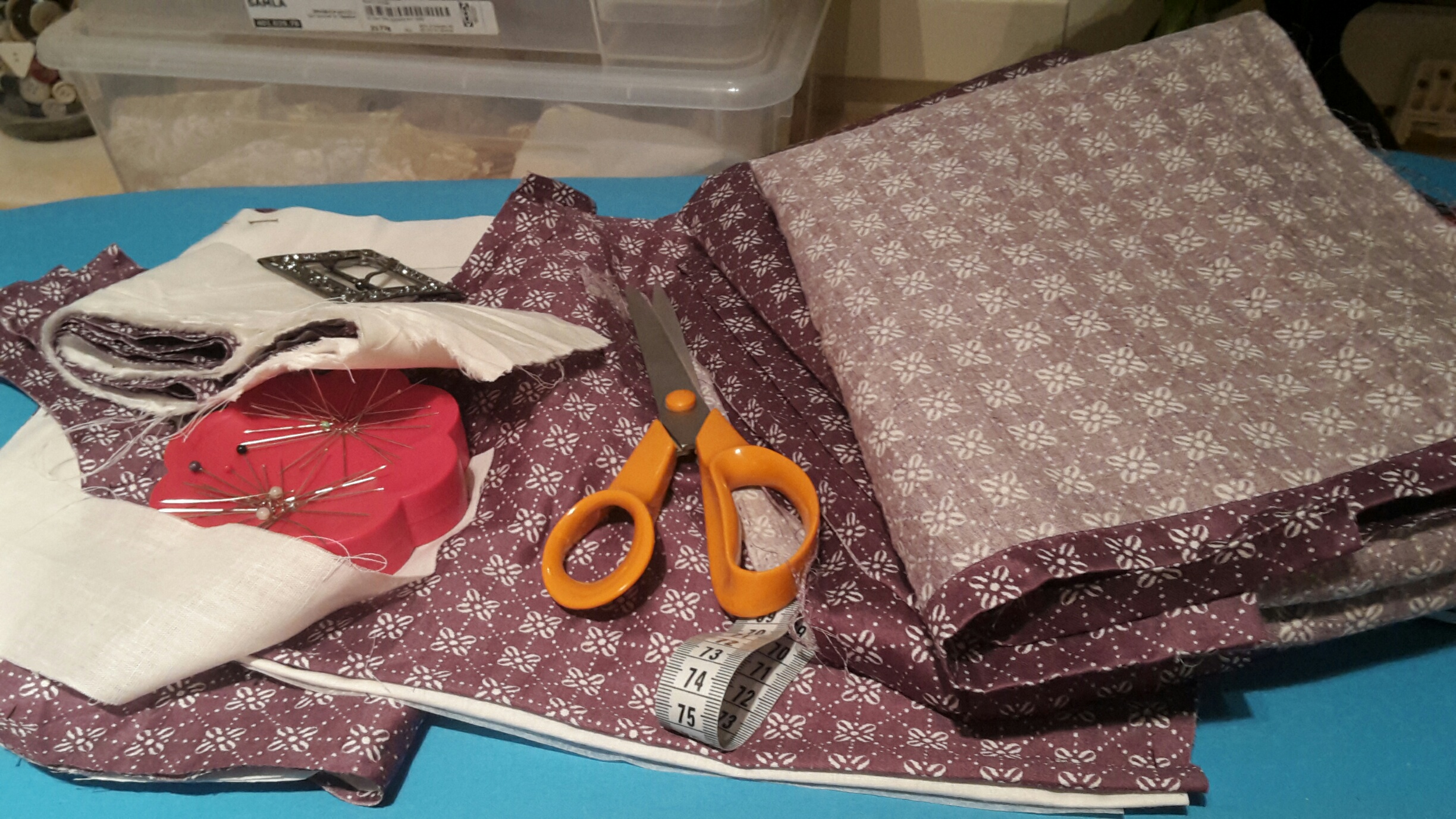 And there I found a sett of purple/white printed bedsheets I got on sale a few months back, thinking I’ll turn them into a 1850s evening gown.