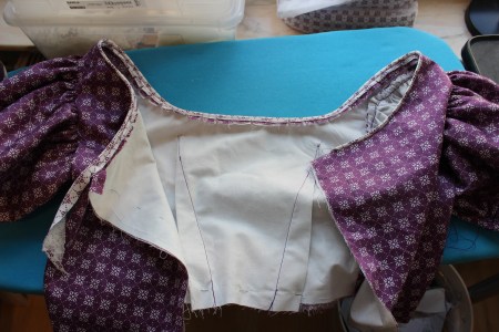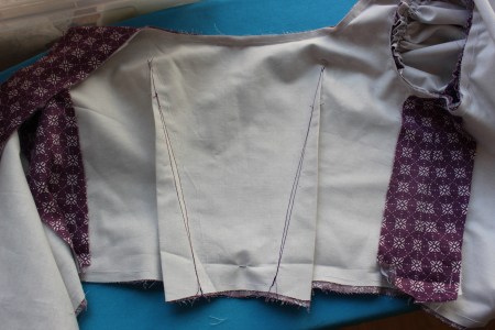 I interlined the bodice (and the sleeves), pinned and stitched the pieces together and added the darts at the front.