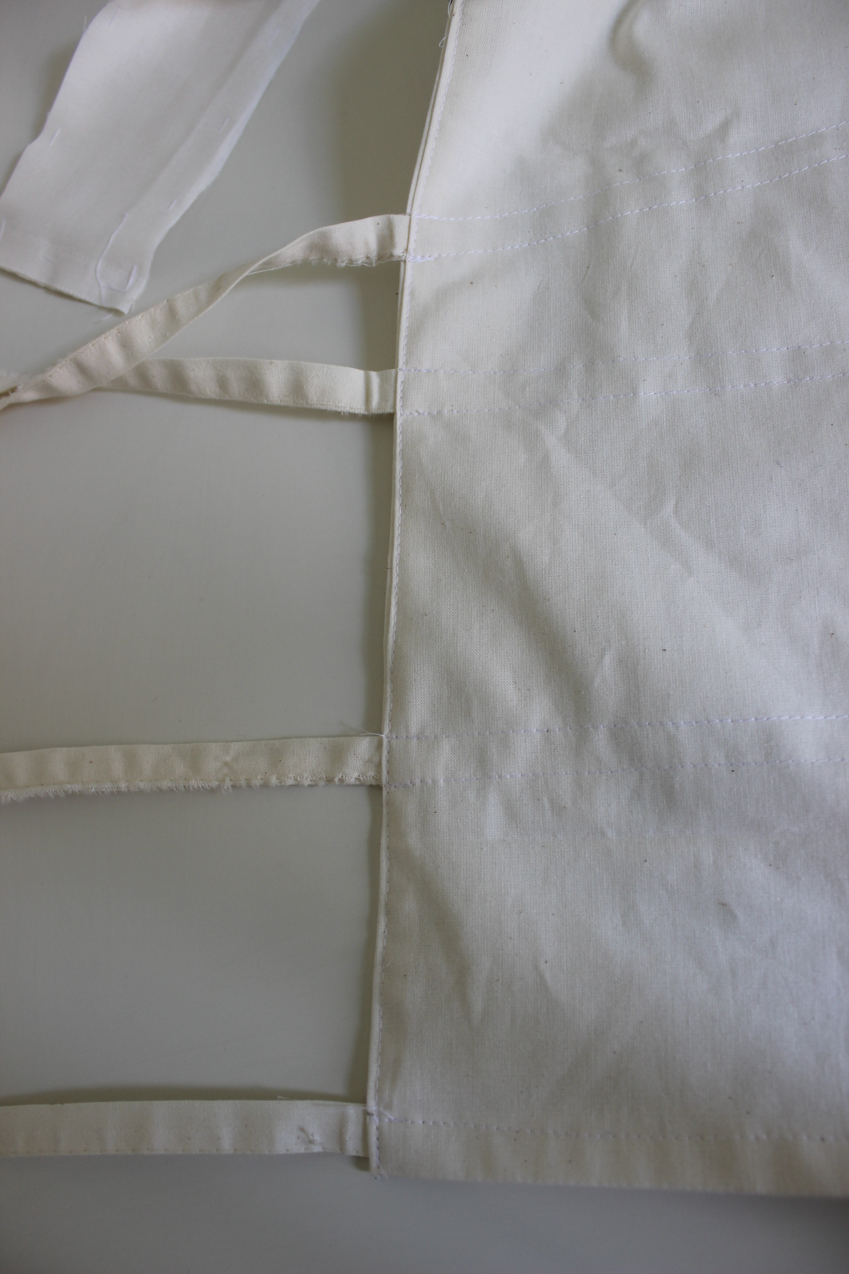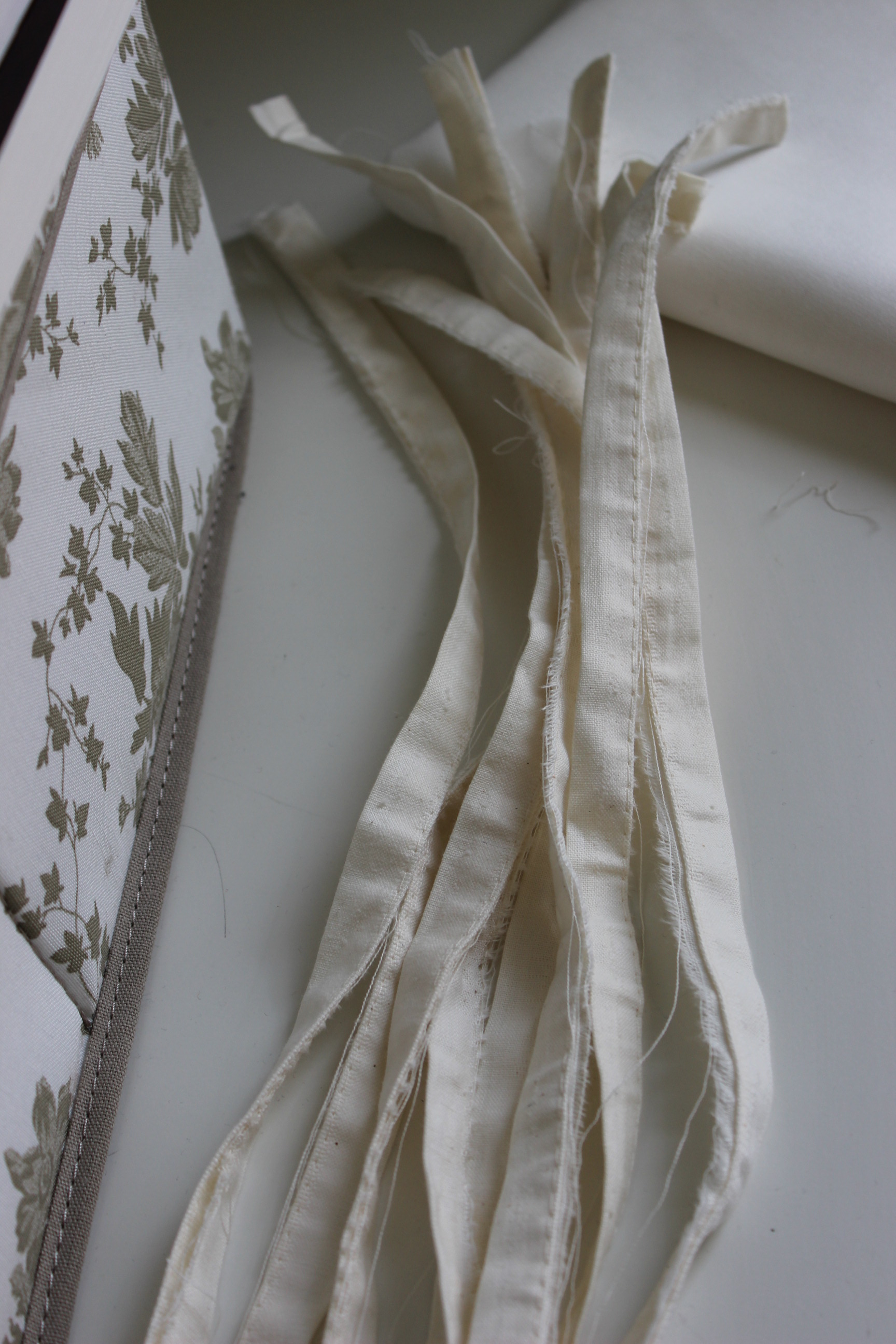 I also saved, and cut the sewn selvages on the sheet to use as ties.