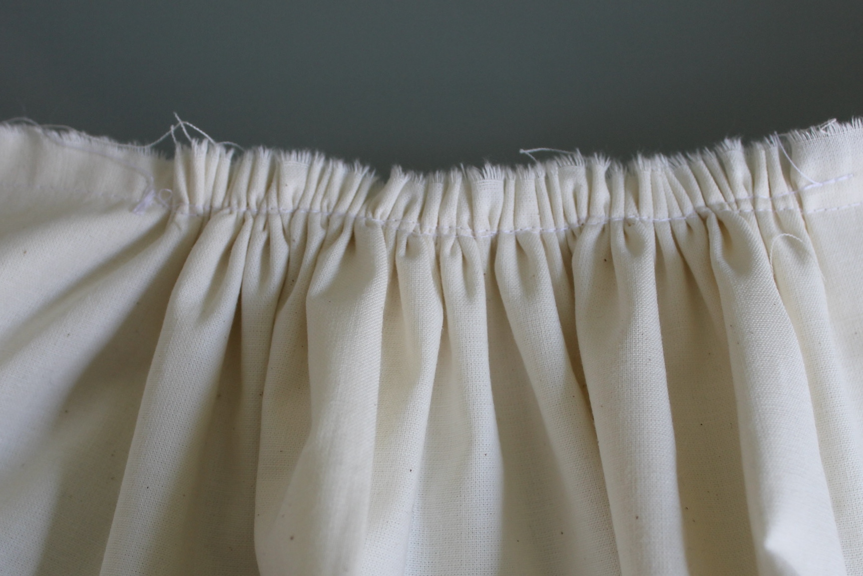 I sewed a gathering thread to the top edge, working the two layers as one.