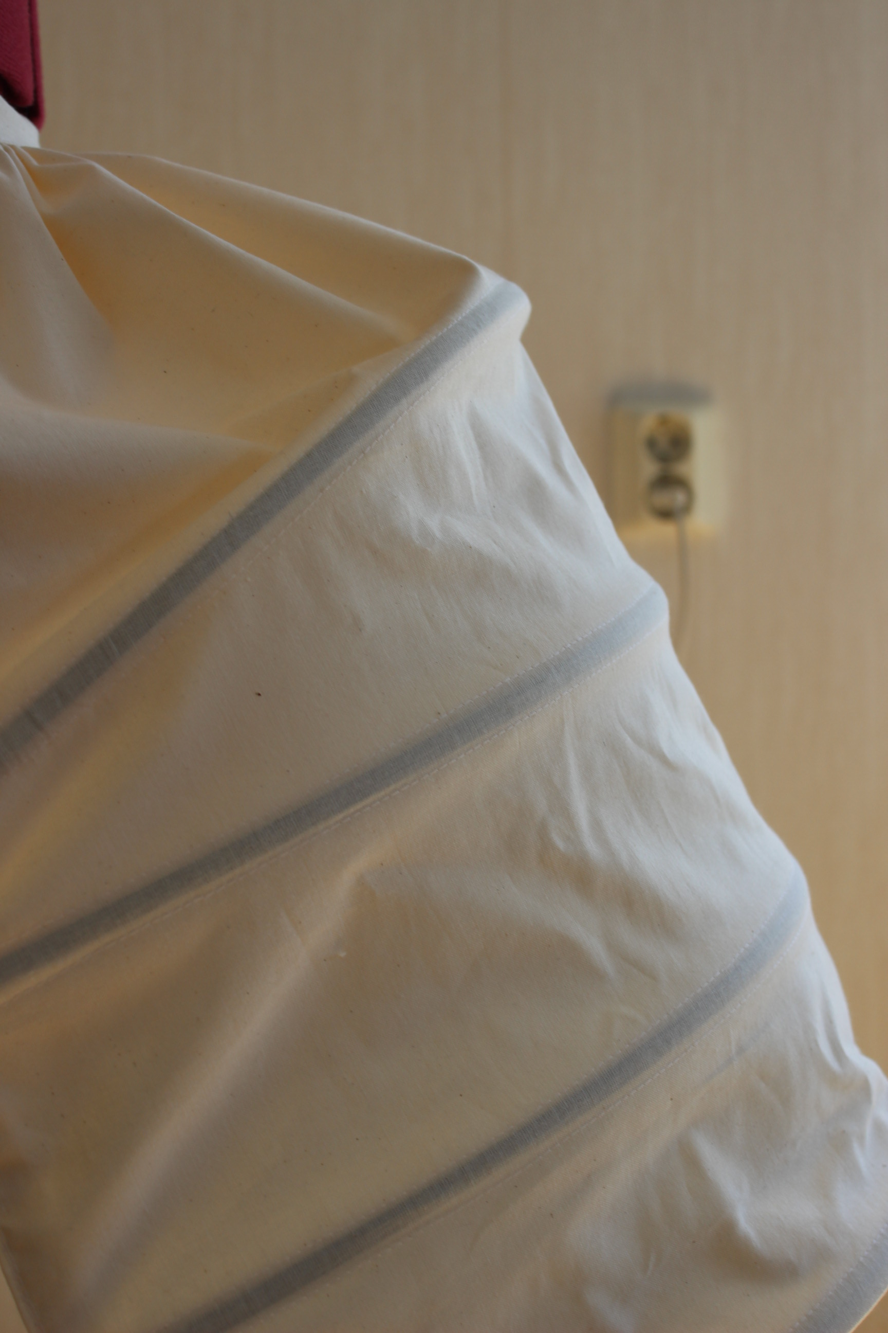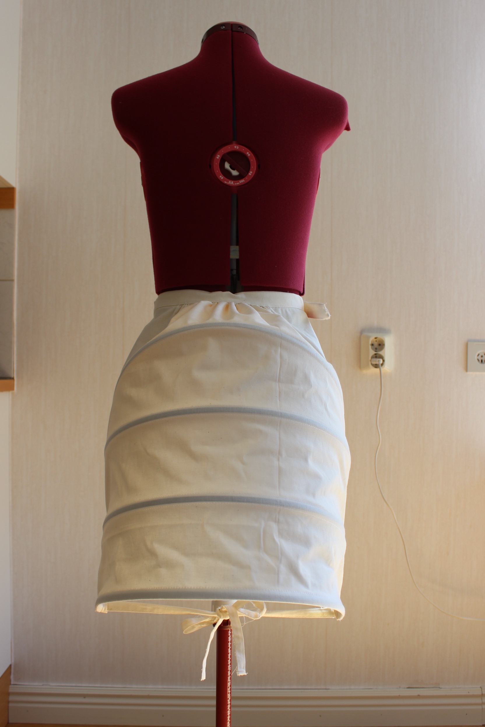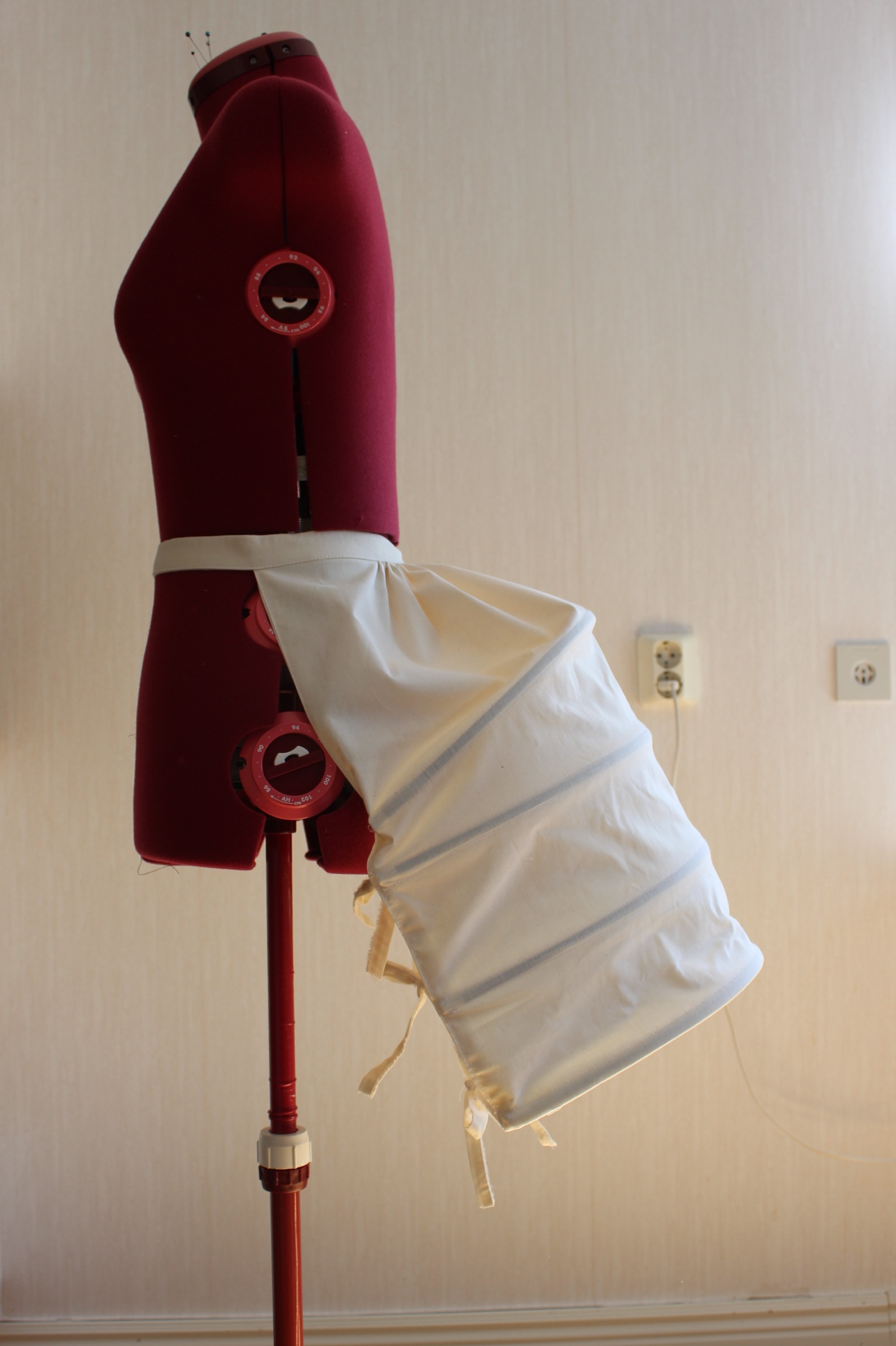 How historical accurate: Not sure but I think it is pretty good. Both the material and the sewing tecniques was used during he period. And since this seems to be the simplest and most straight forward way of making a bustle, I’m sure some peolple back then must have done so.