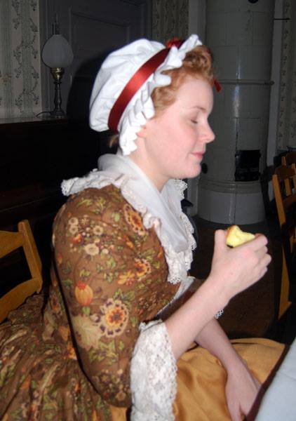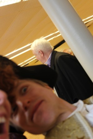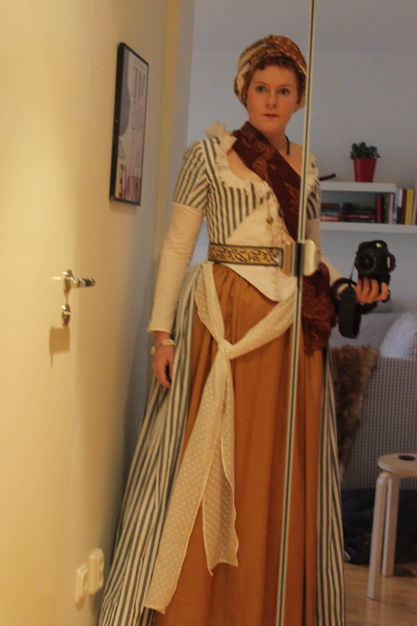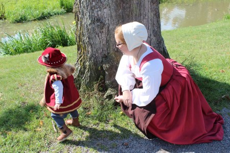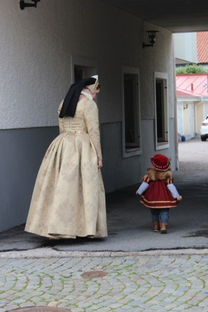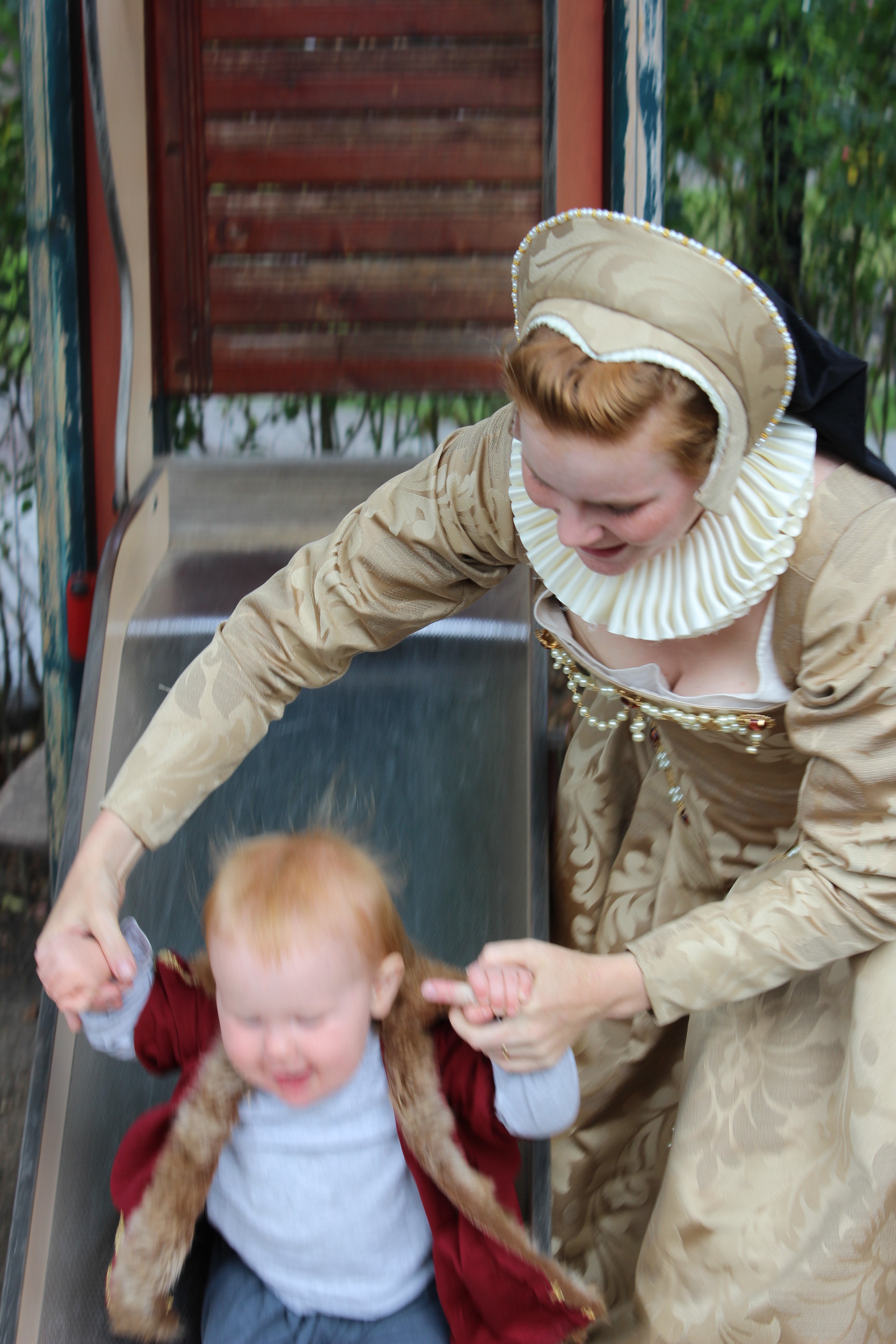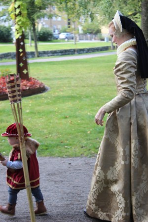 **I’m sorry about the “Floating ruff”, but the partlet was simply to hot to wear, and I’ve forgotten to bring my necklace and/or black-worked smock, so I figured it was better then nothing…