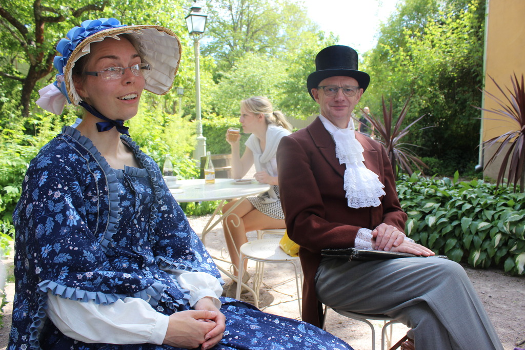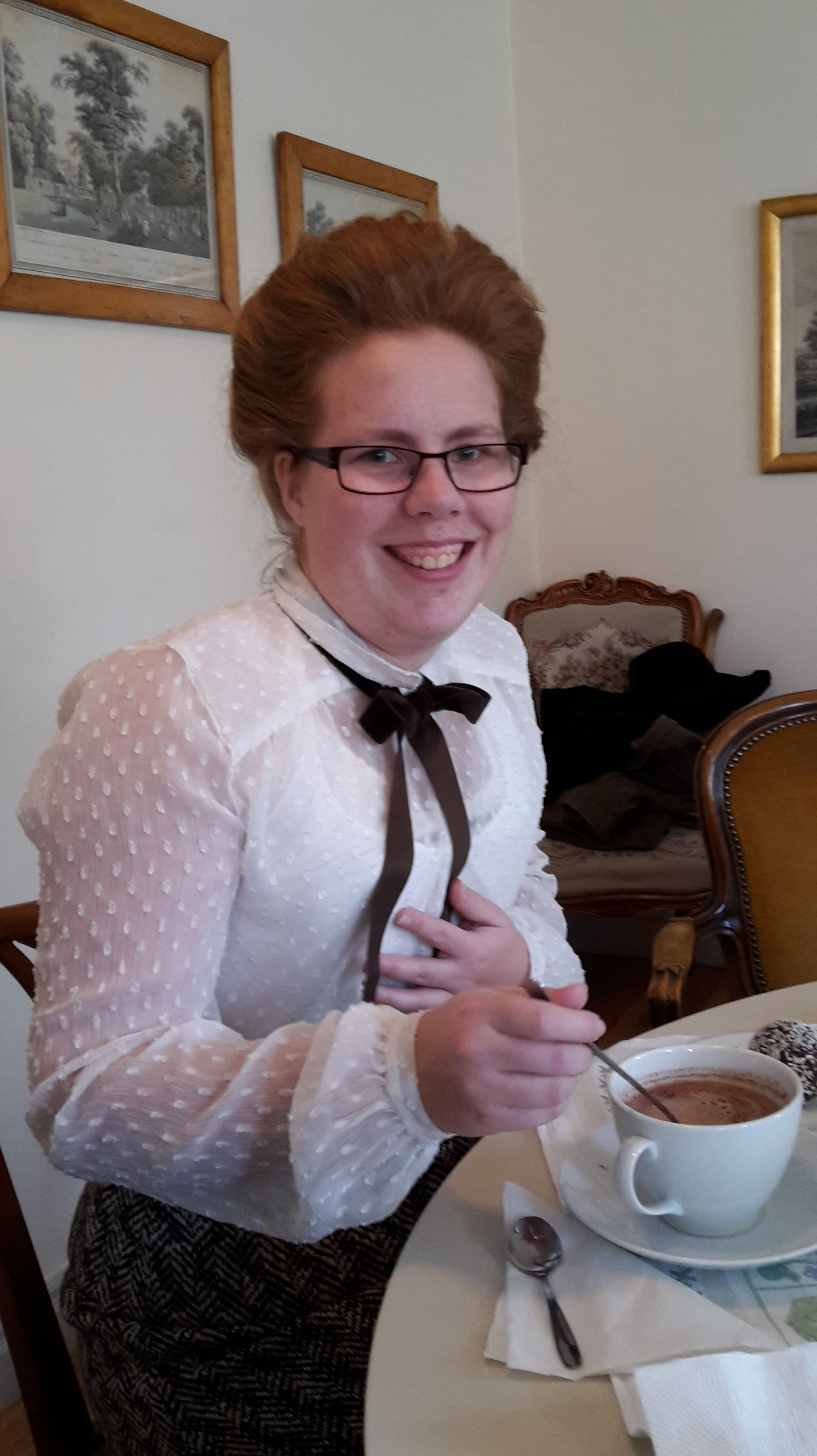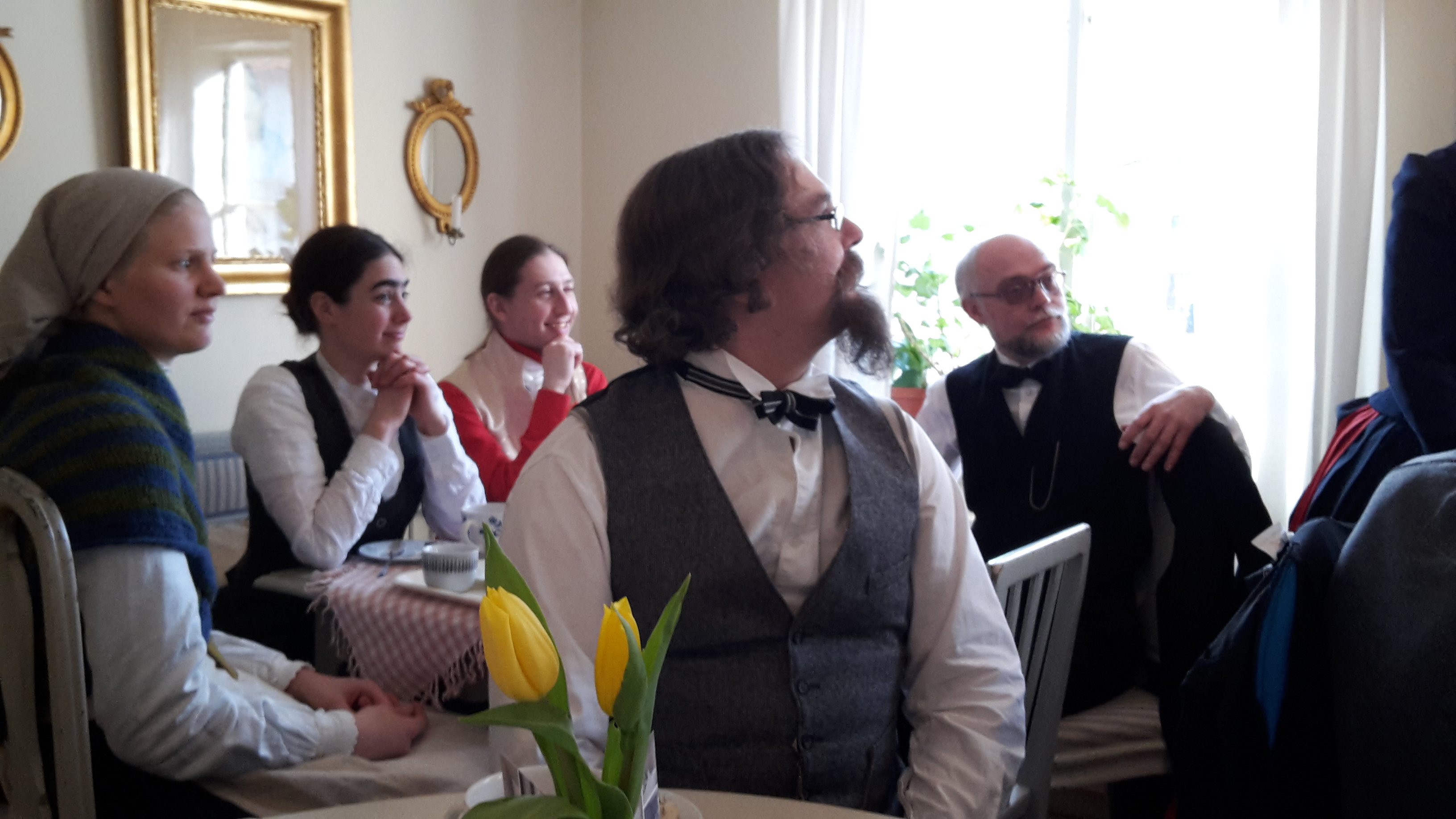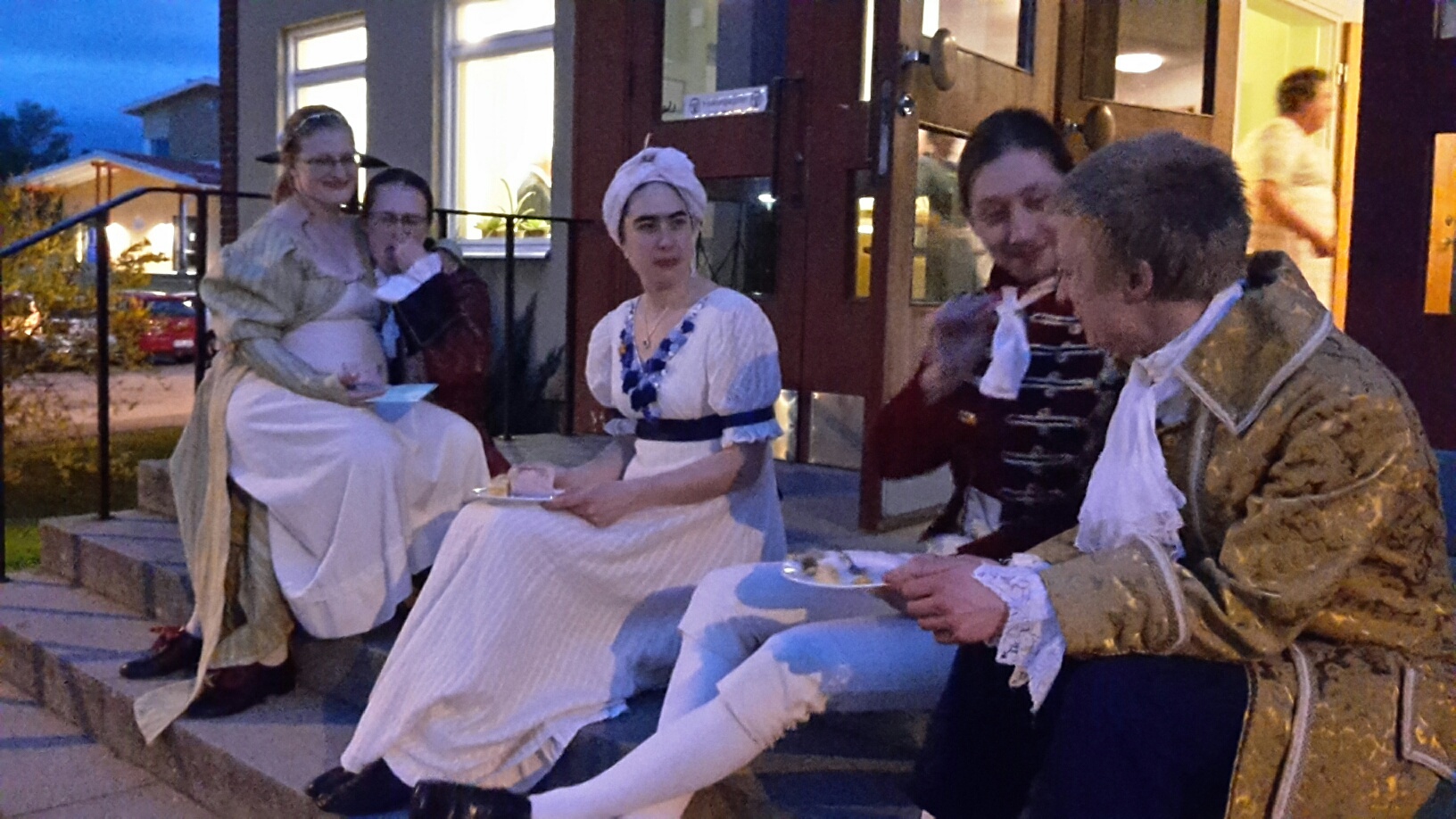 **I’m sorry about the “Floating ruff”, but the partlet was simply to hot to wear, and I’ve forgotten to bring my necklace and/or black-worked smock, so I figured it was better then nothing…