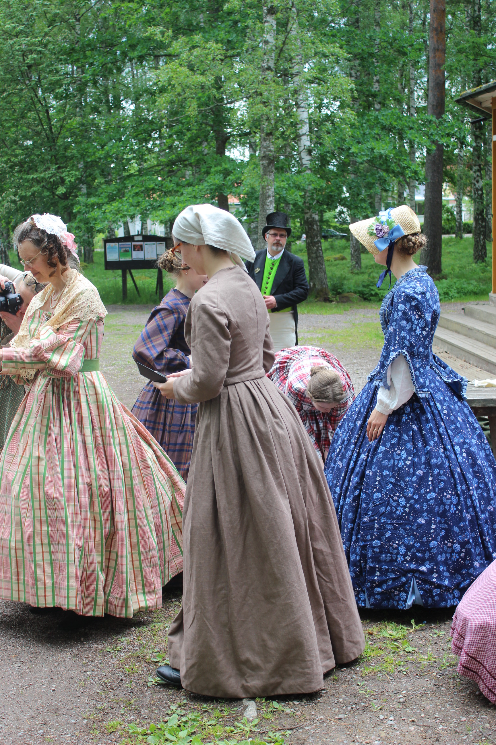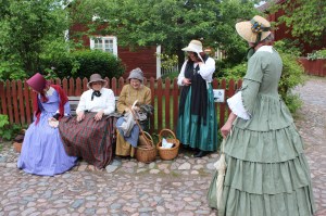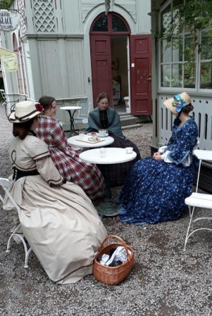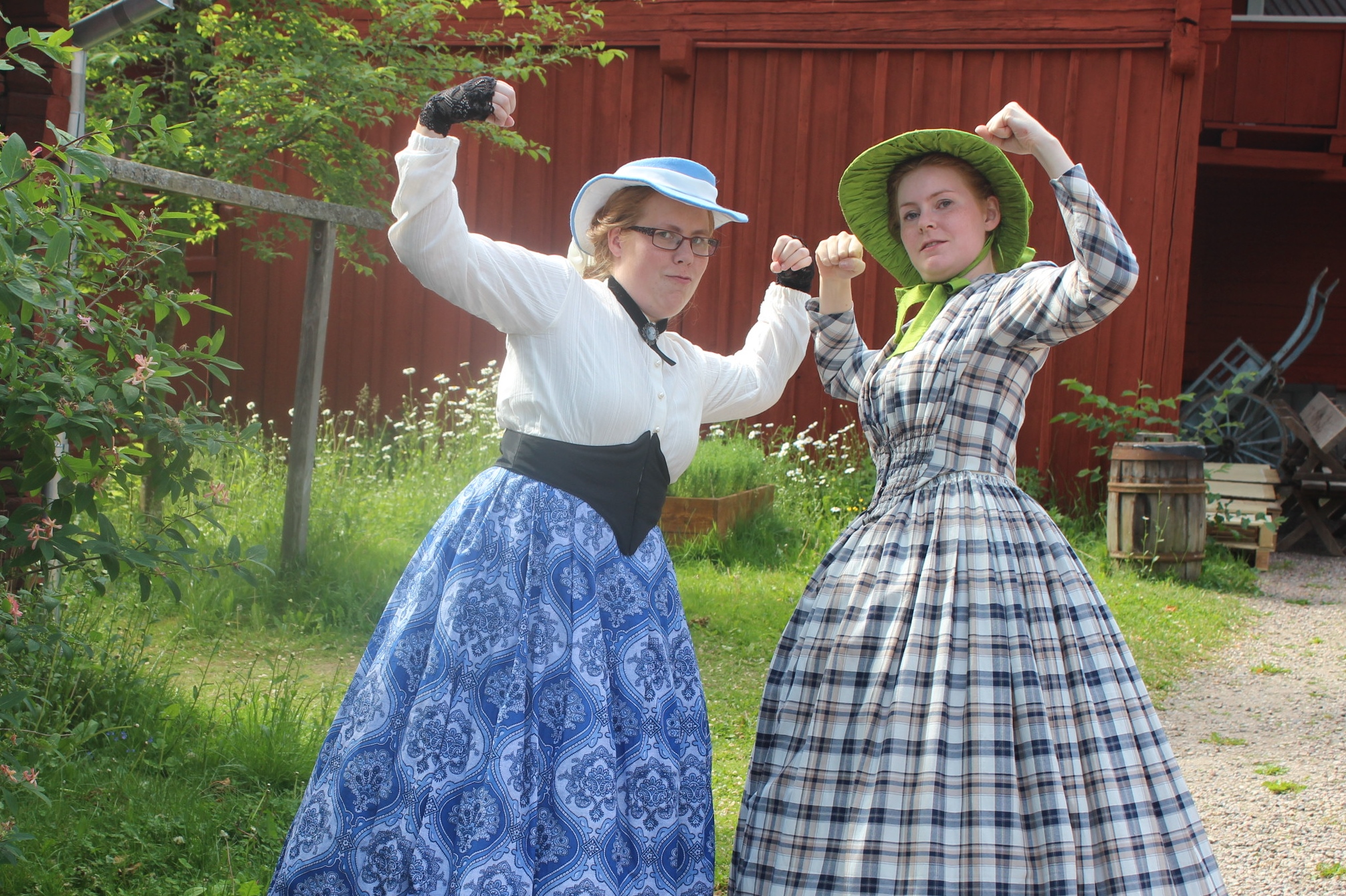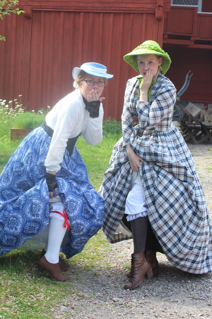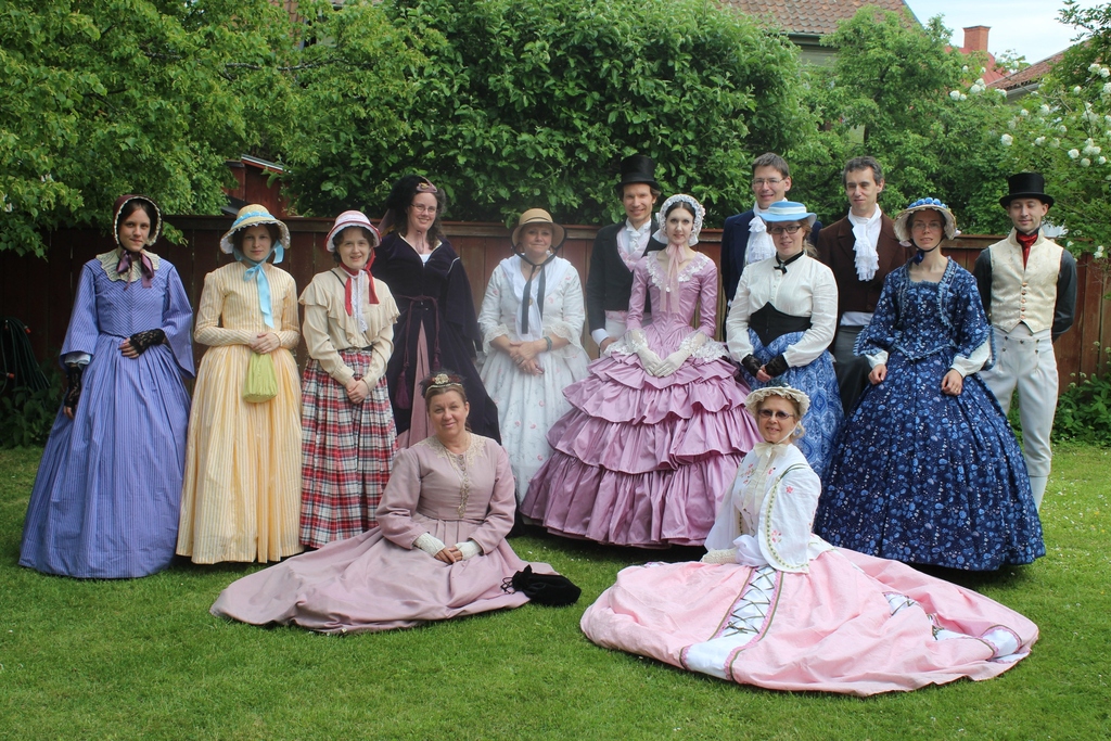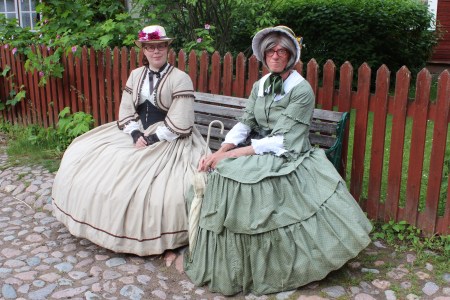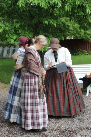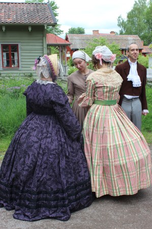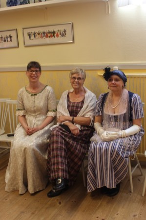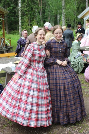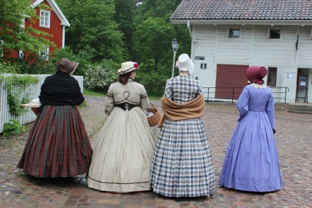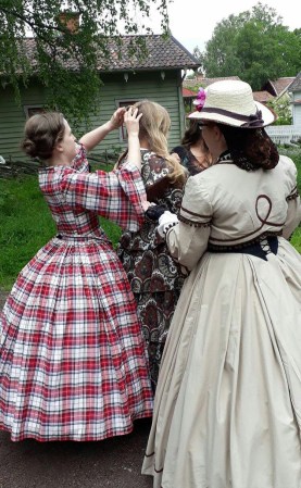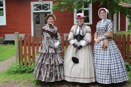 Clara, Maria and Engla in three quite different styles of 1850-1860s dresses.
