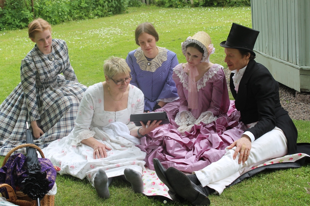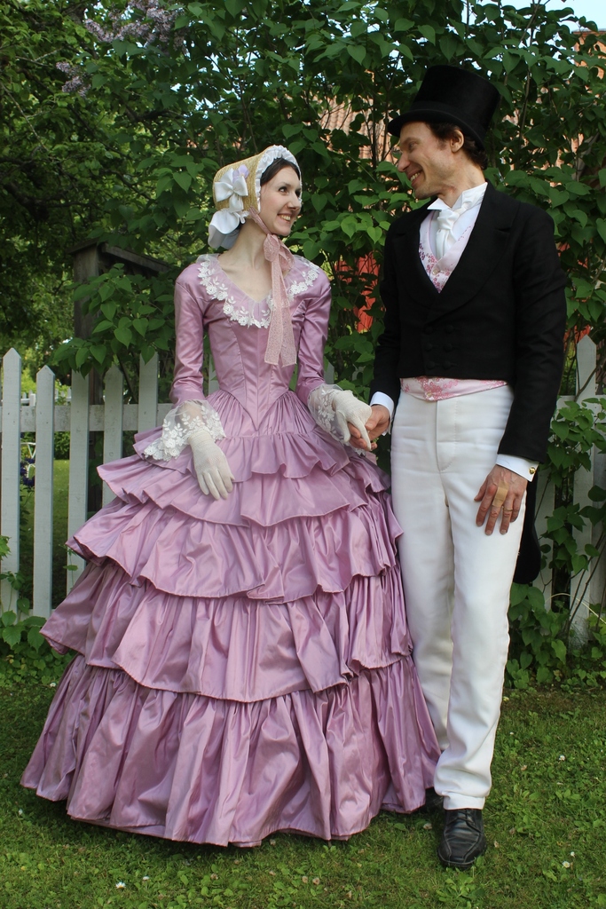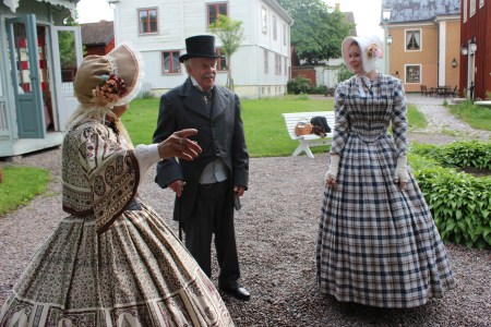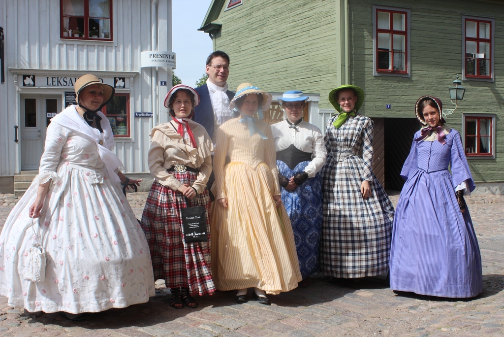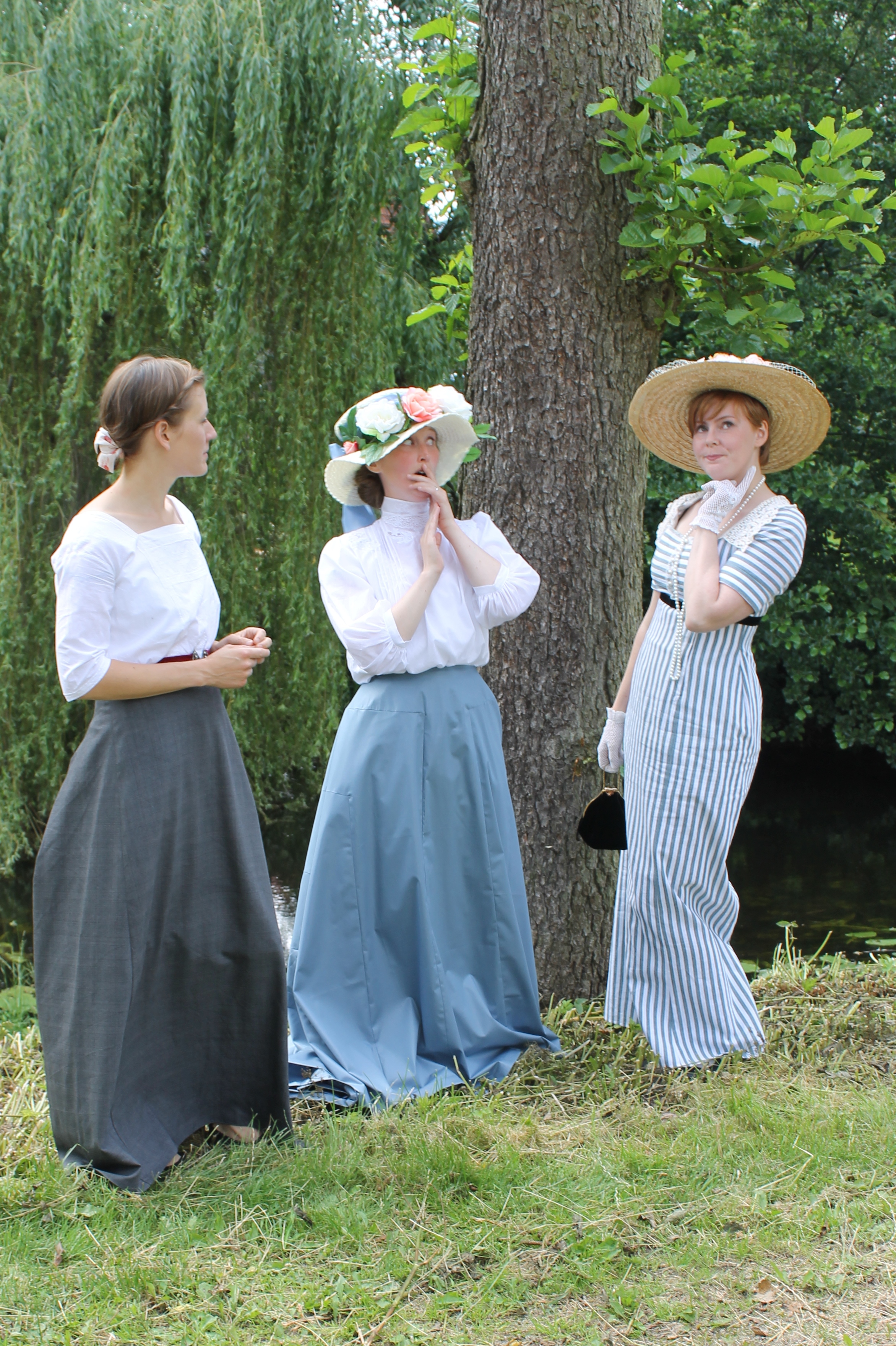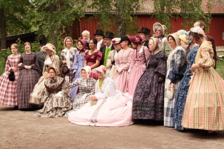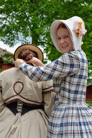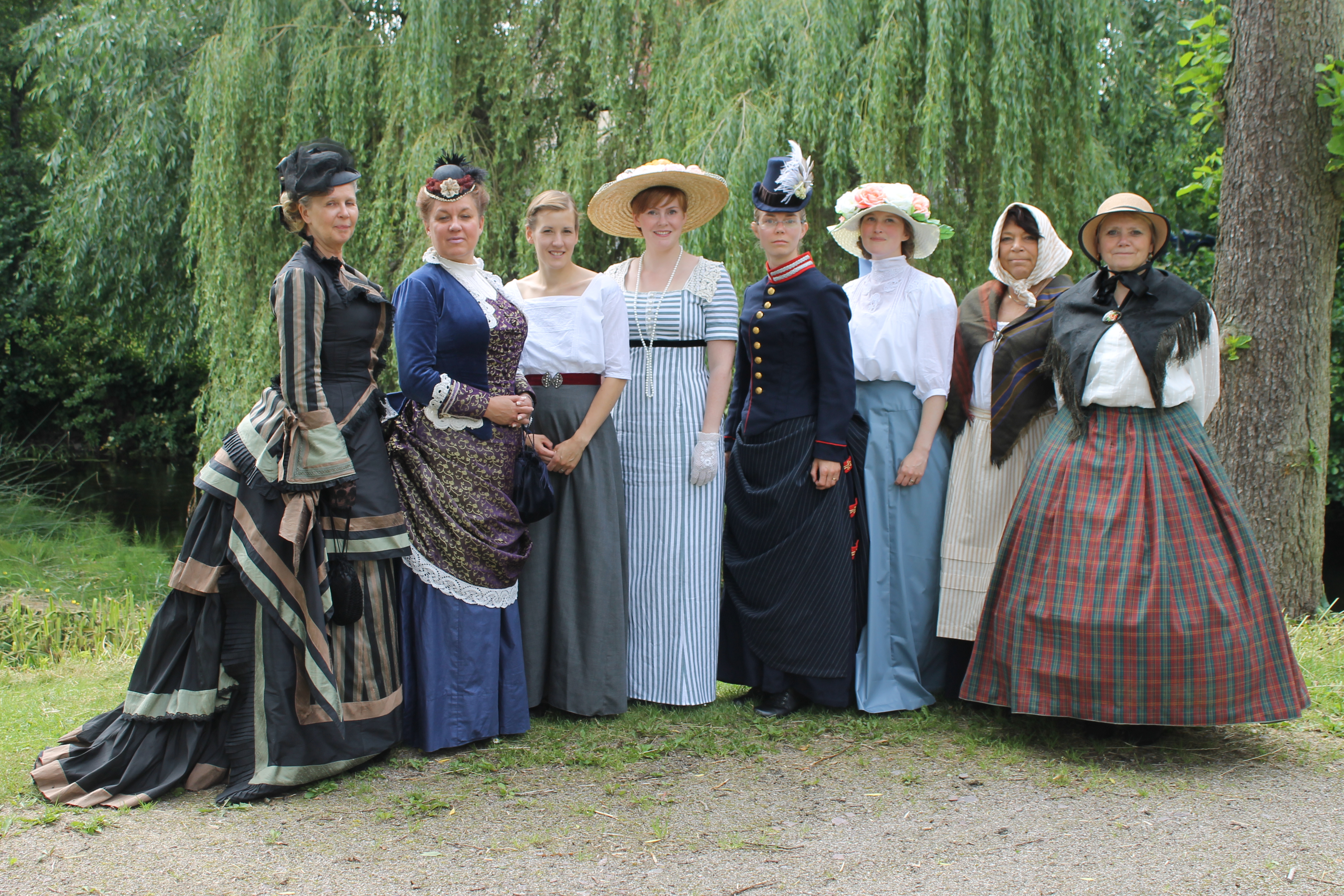 Clara, Maria and Engla in three quite different styles of 1850-1860s dresses.