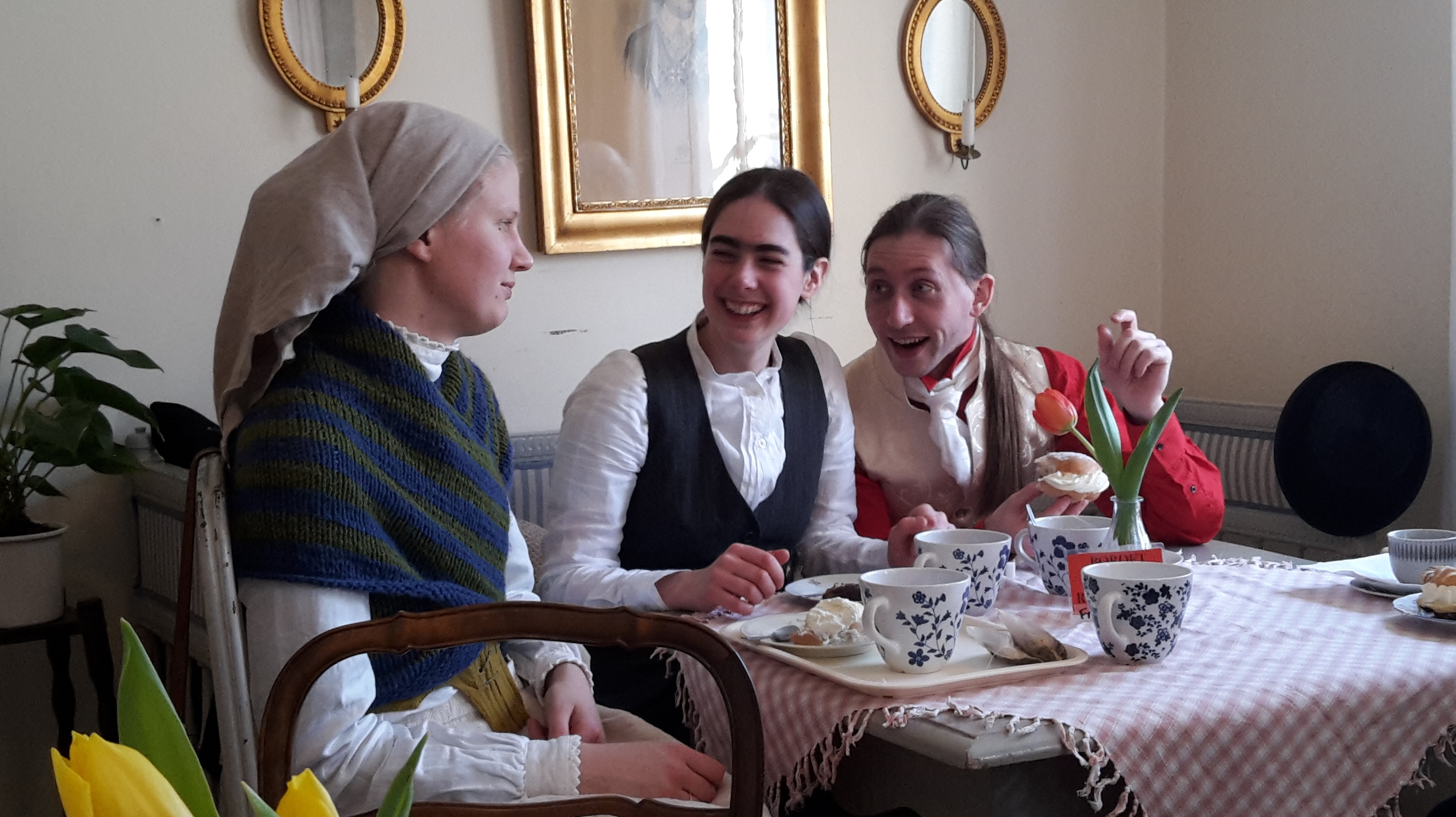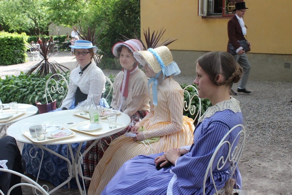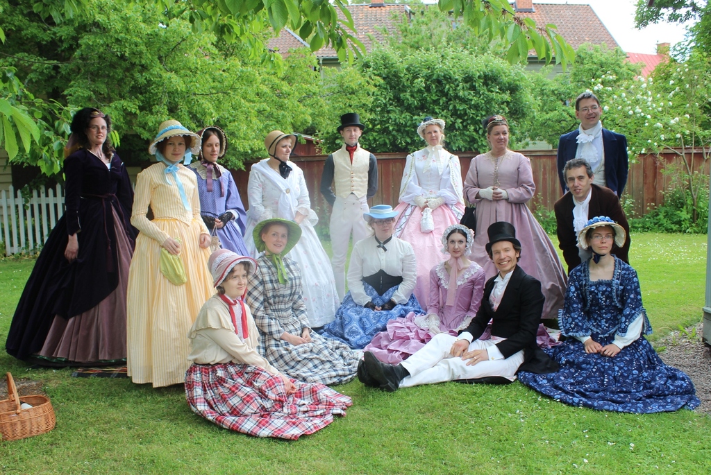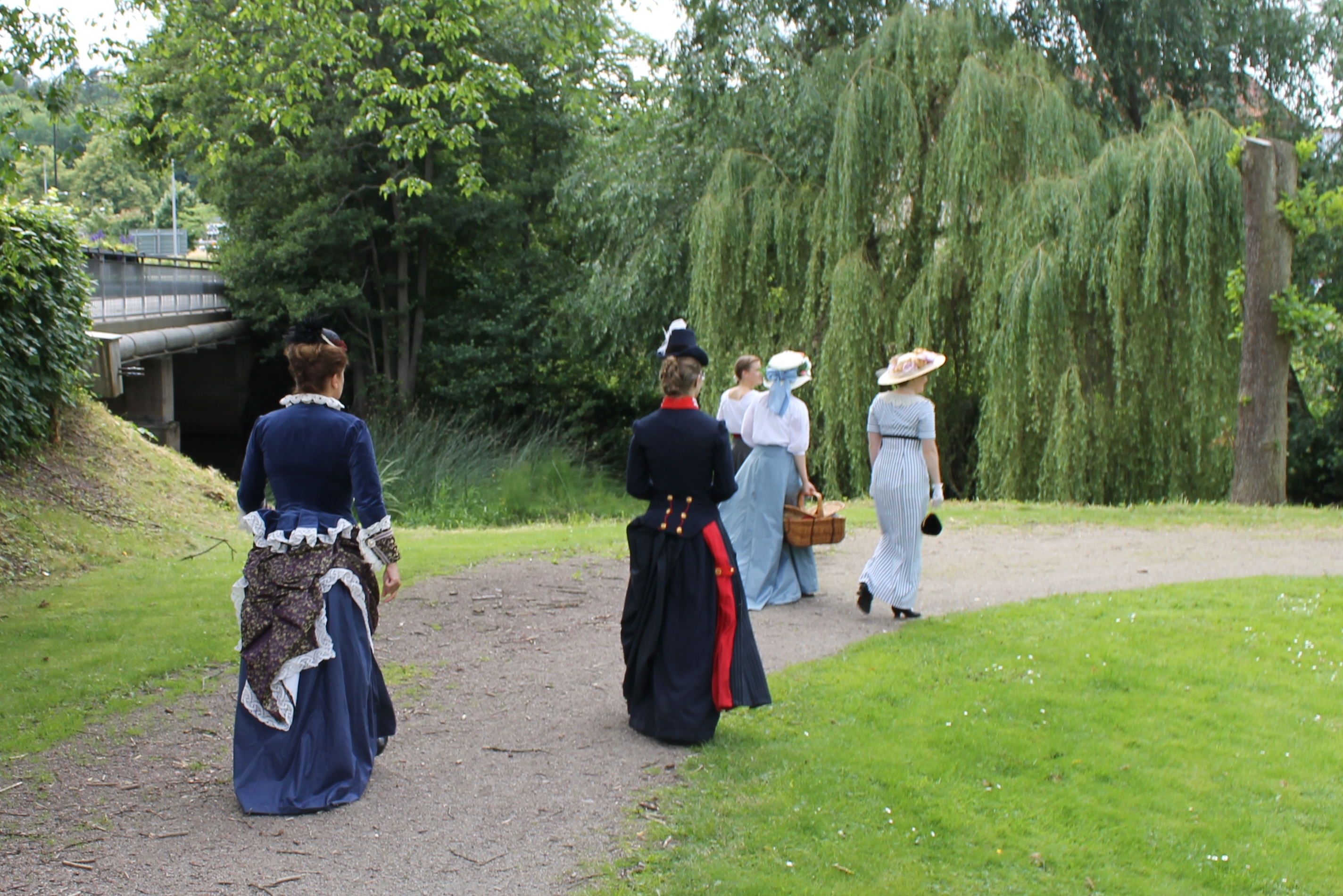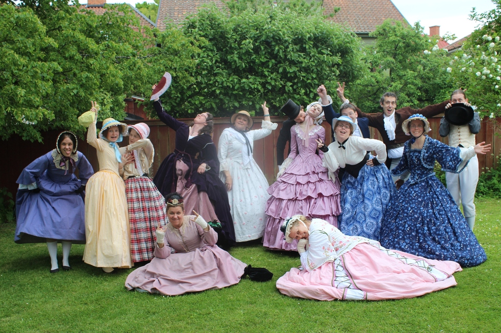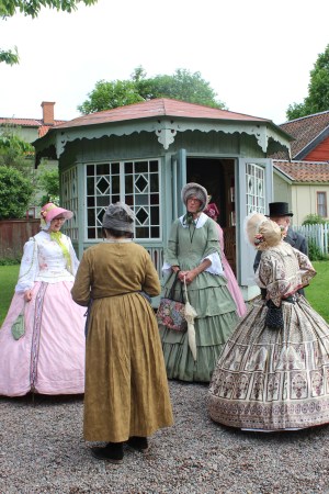 Clara, Maria and Engla in three quite different styles of 1850-1860s dresses.