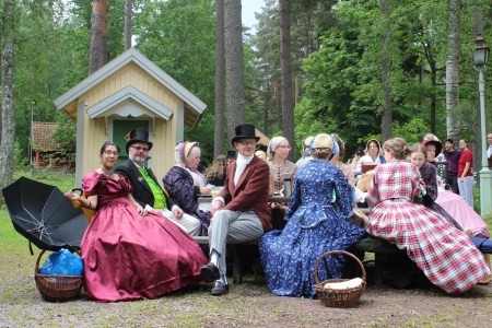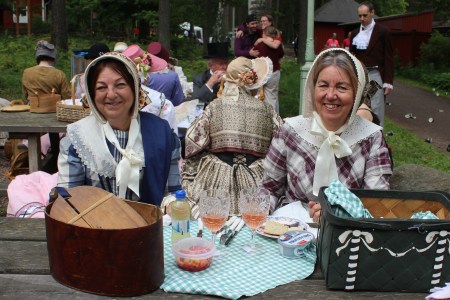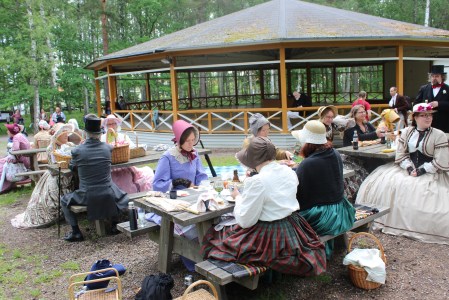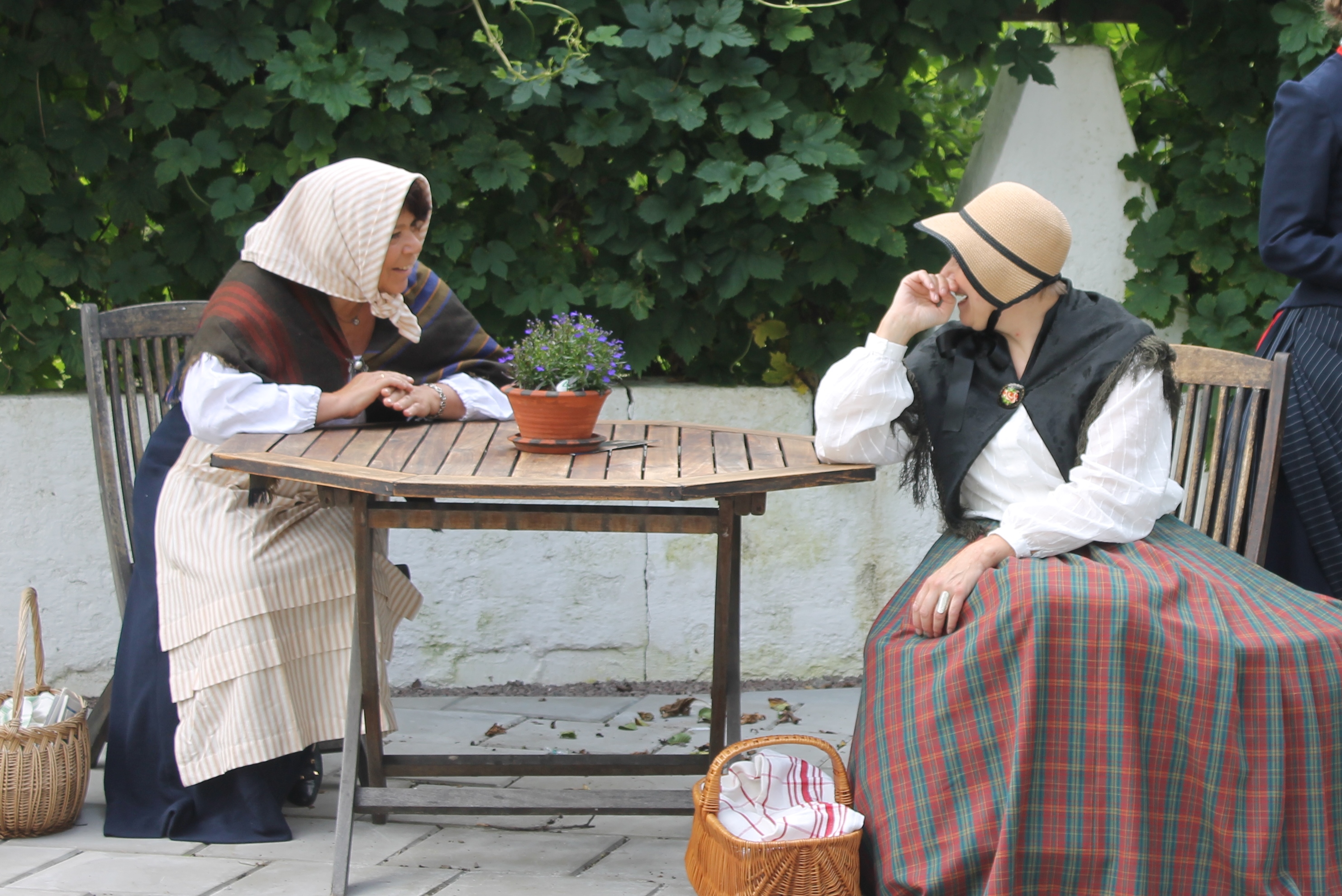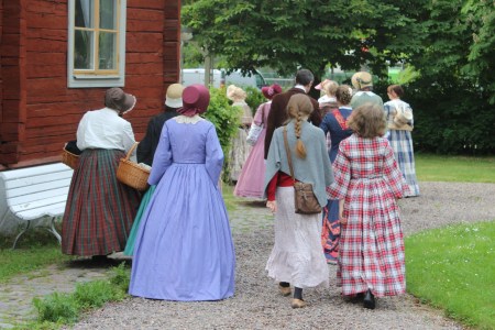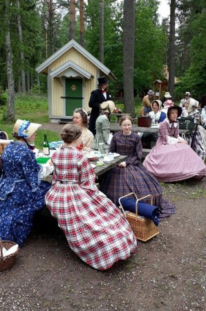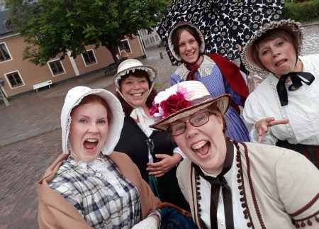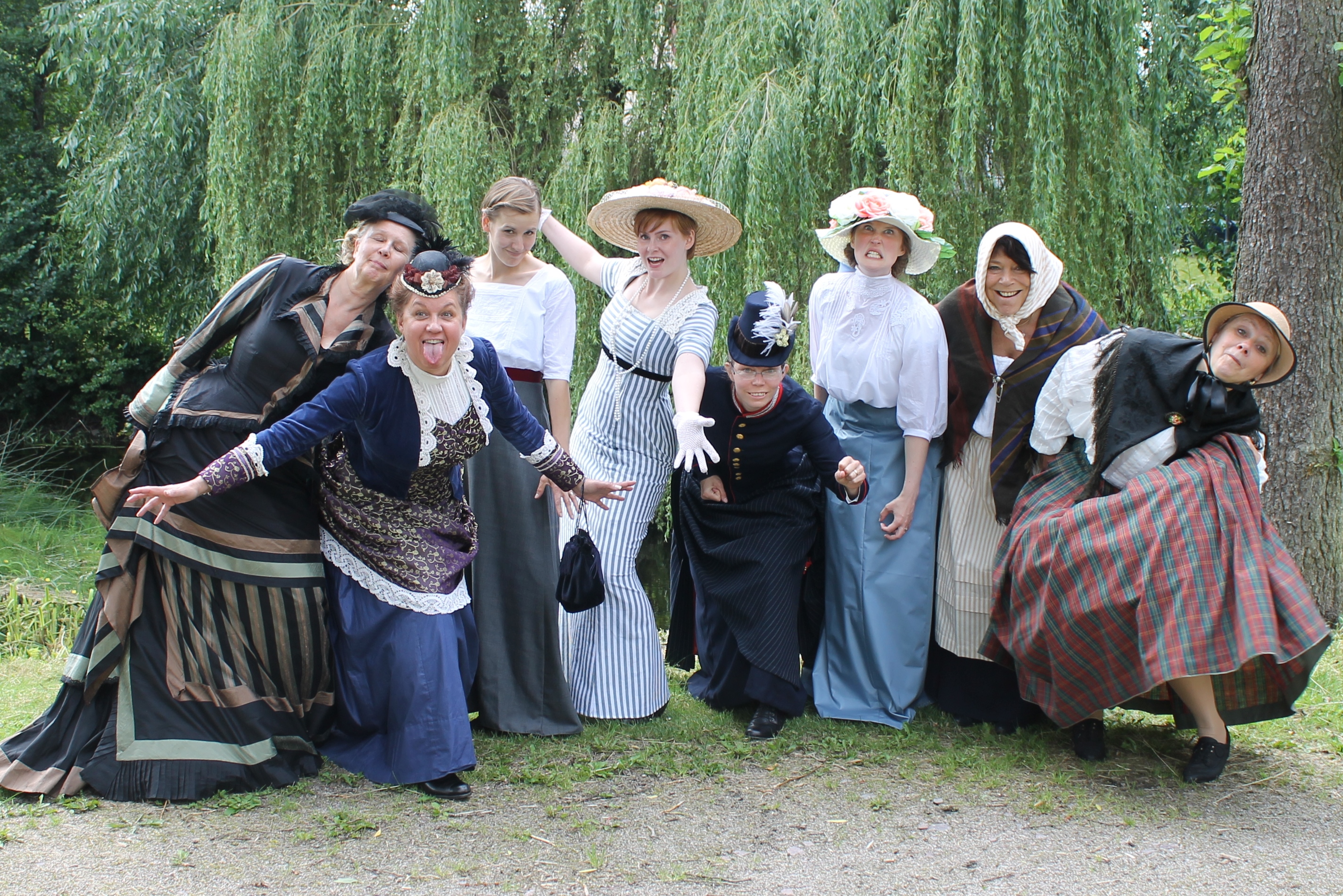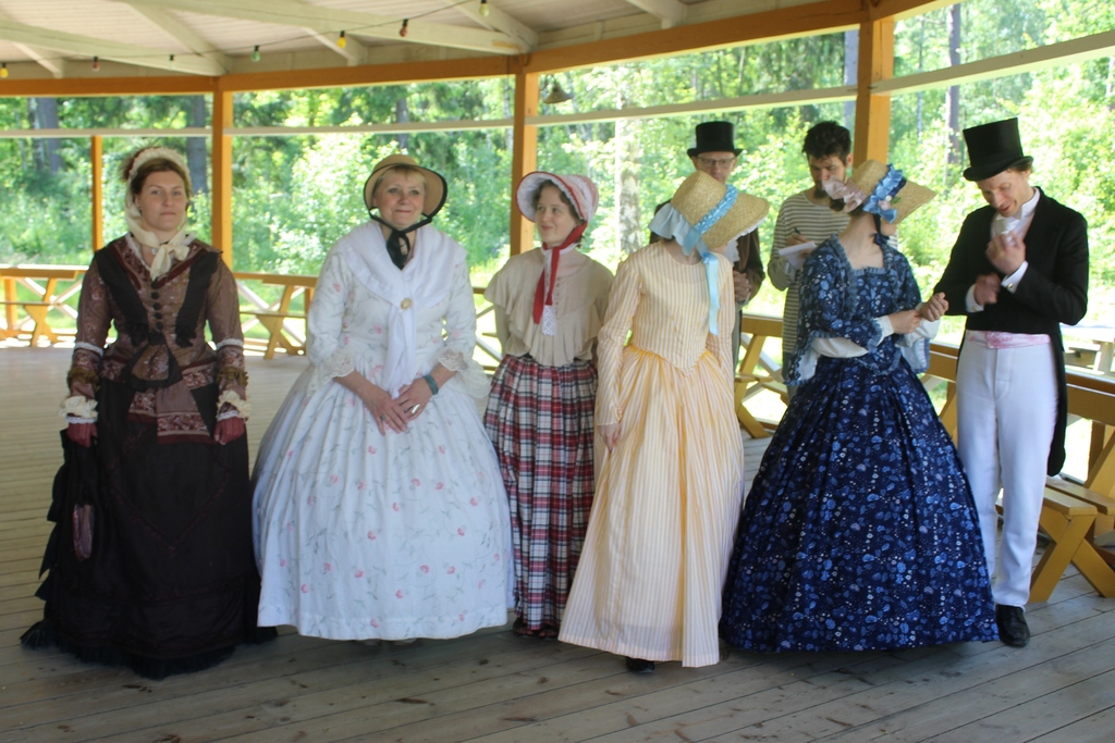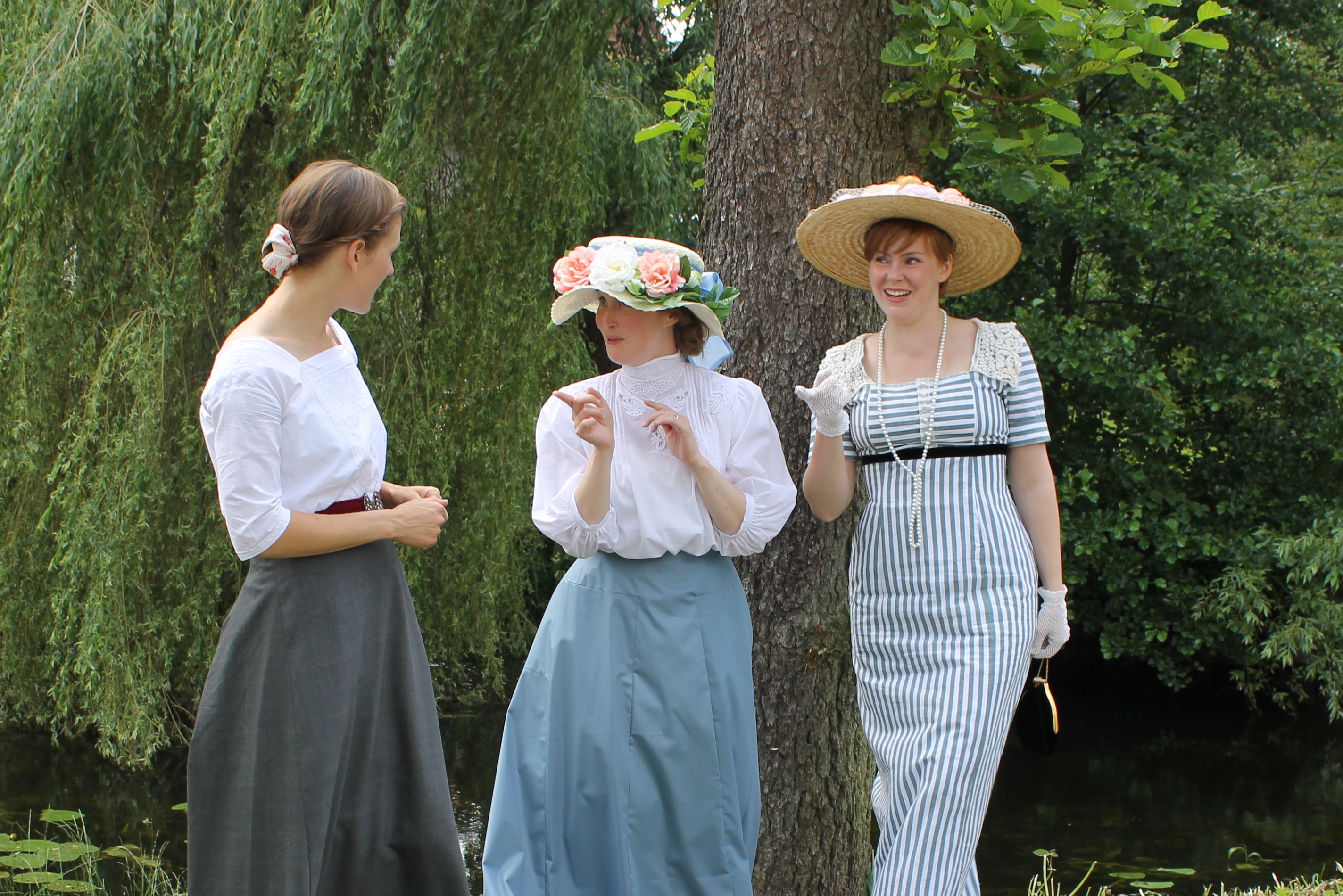 Clara, Maria and Engla in three quite different styles of 1850-1860s dresses.