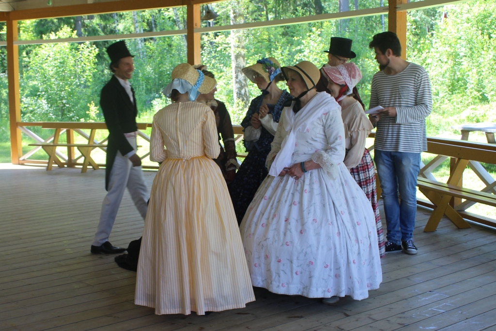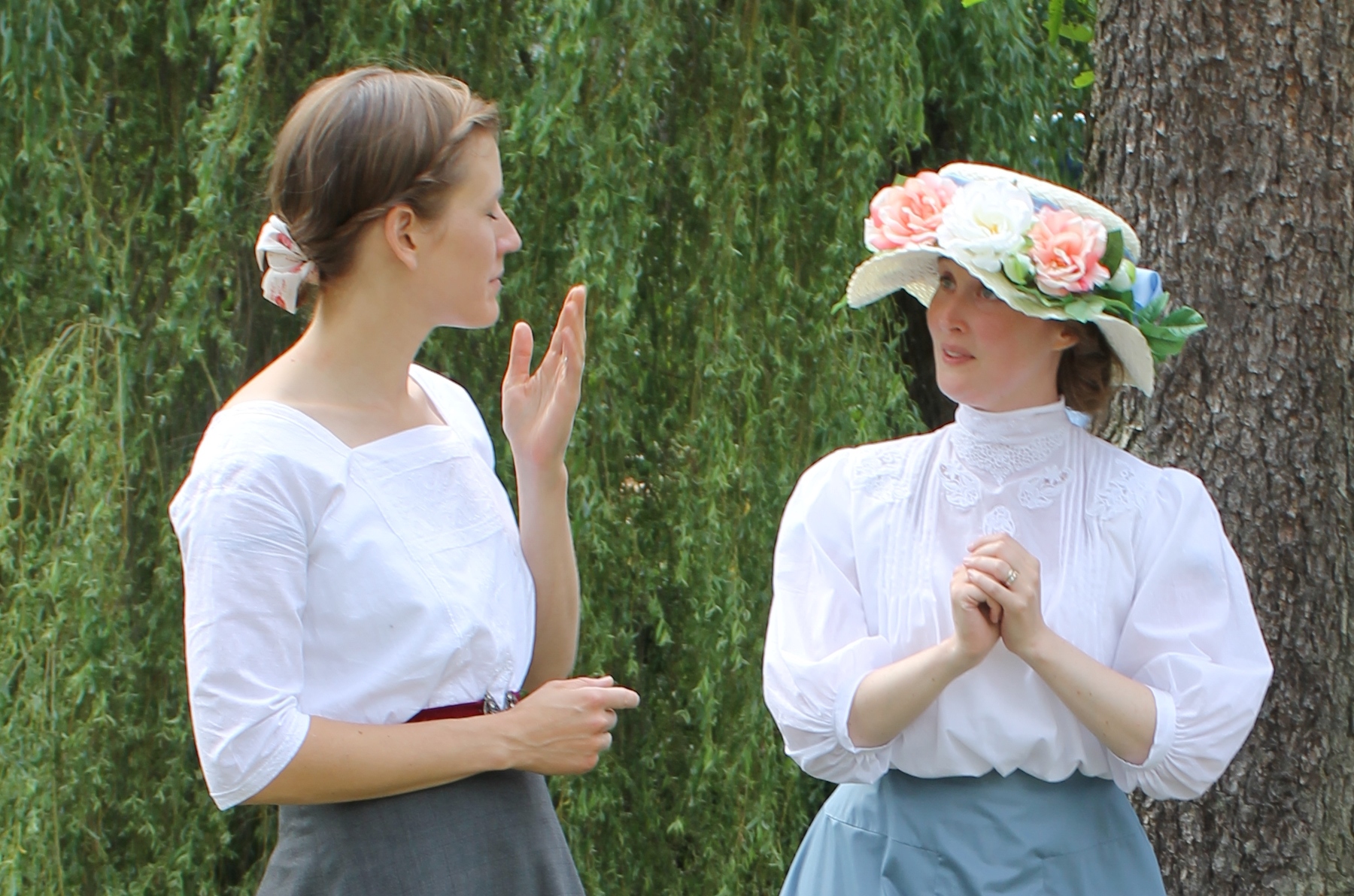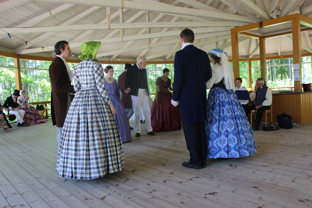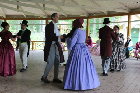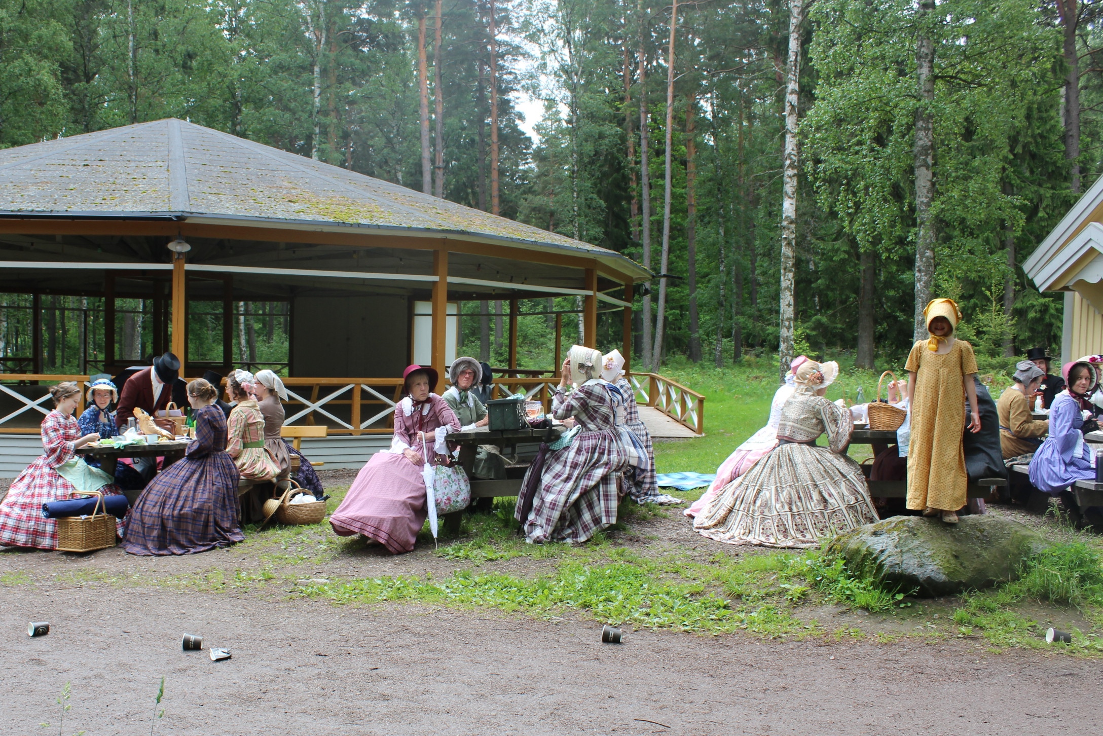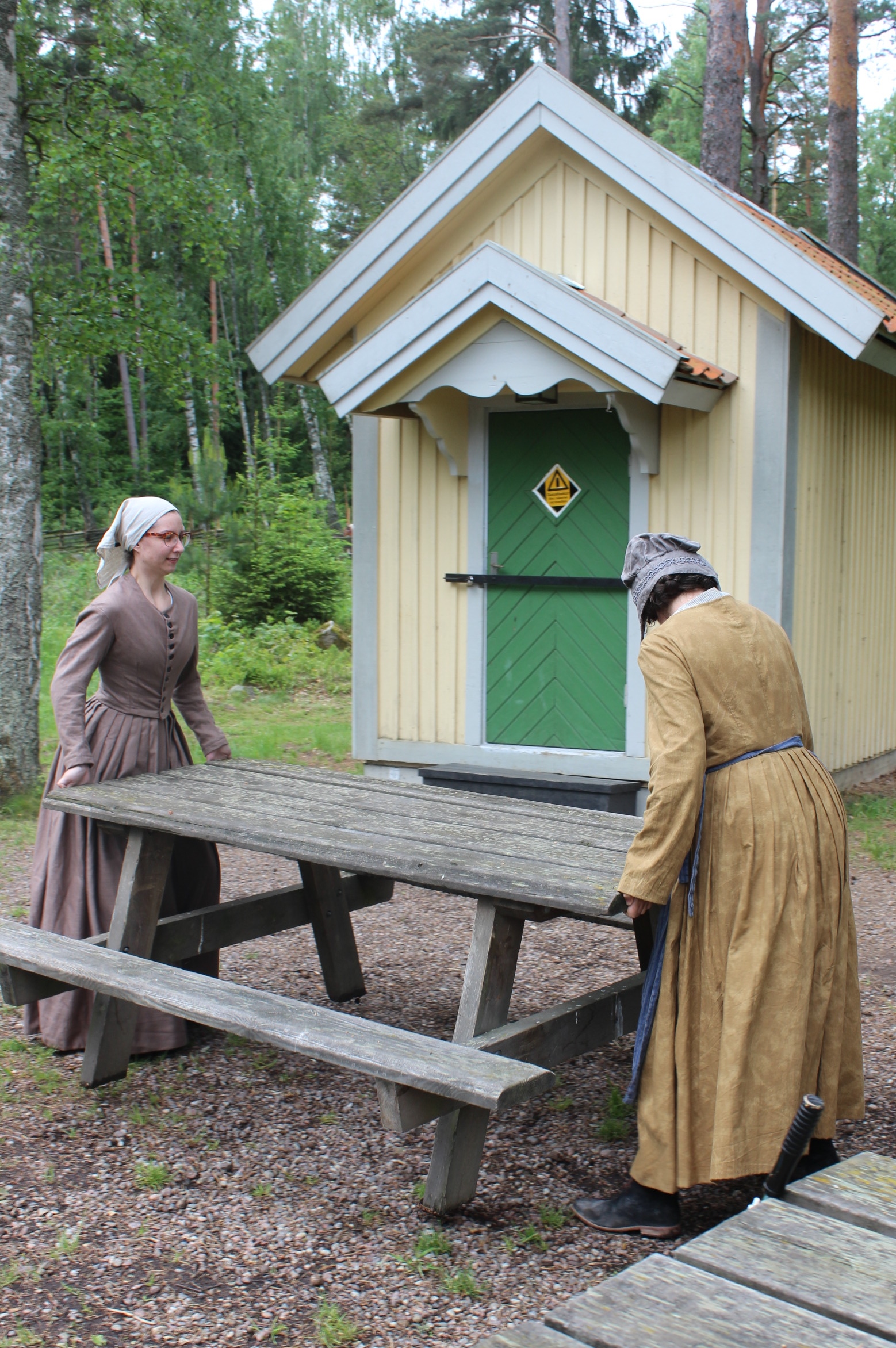 Clara, Maria and Engla in three quite different styles of 1850-1860s dresses.