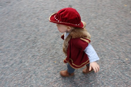 And baby Charlie wore the Henry VIII coat from last year, pared with an old red velvet hat to match.