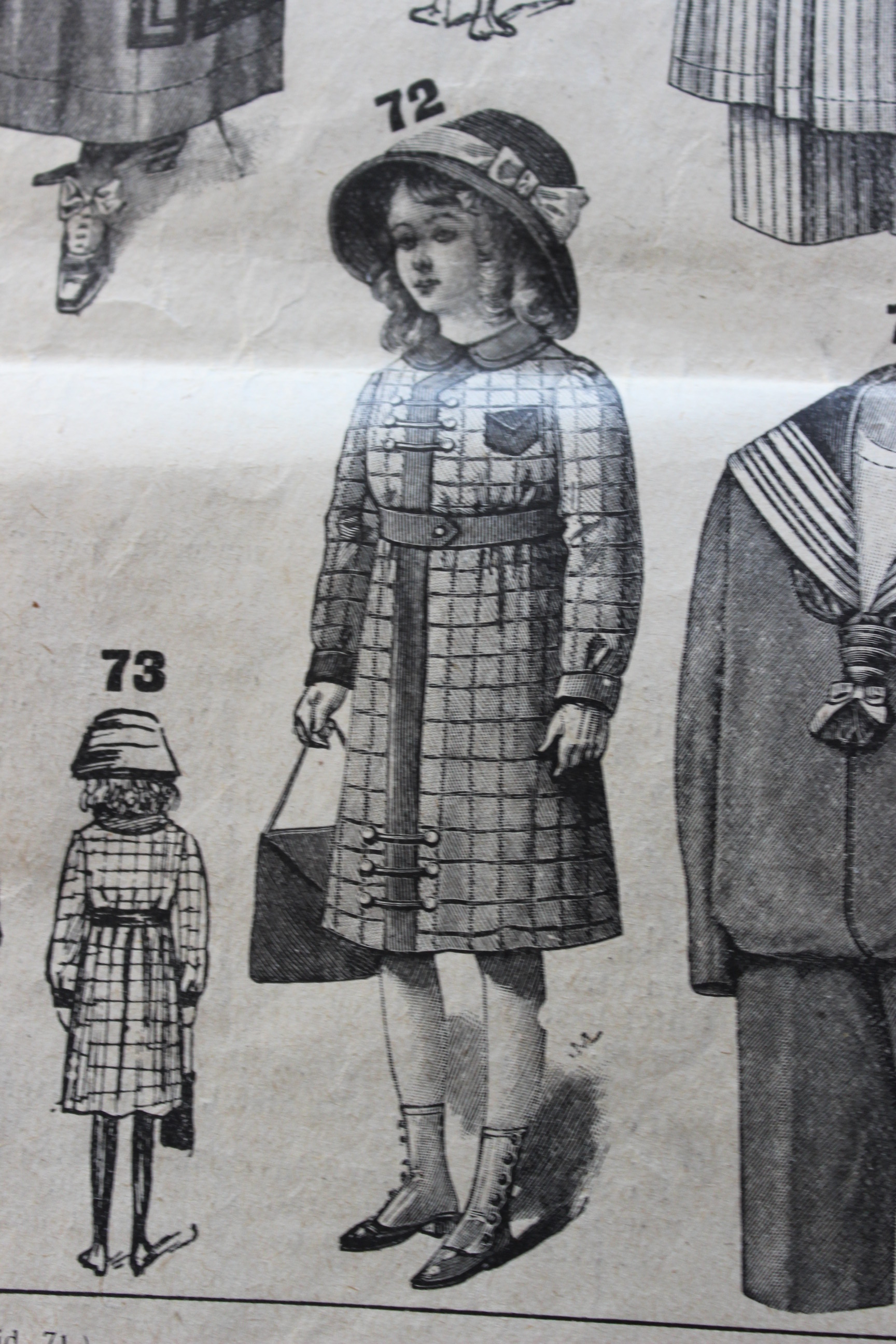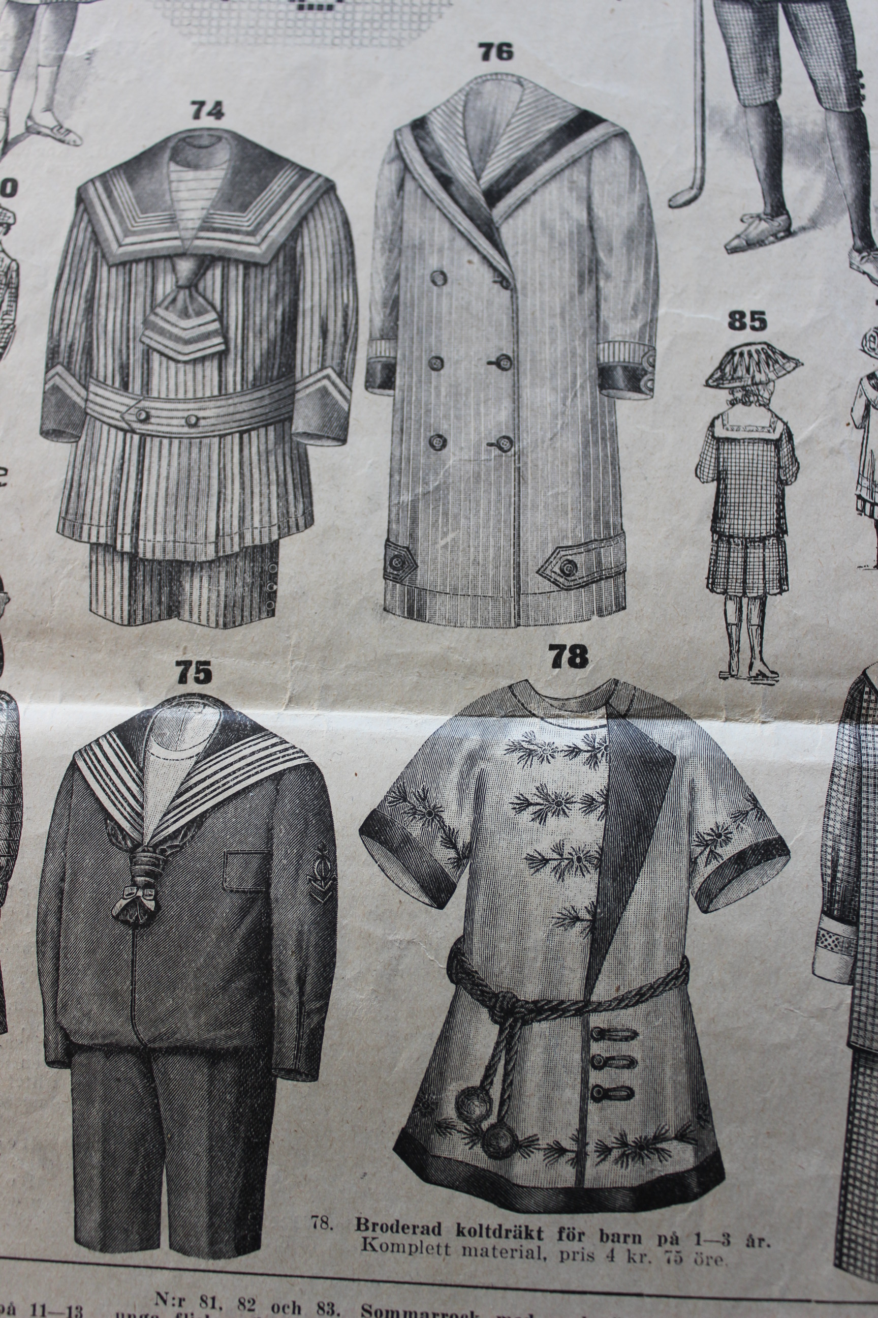 Notions: Thread, Buttonhole-thread, bias-tape, cotton cord, 10 cm plastic boning, 13 buttons, 7 snaps.