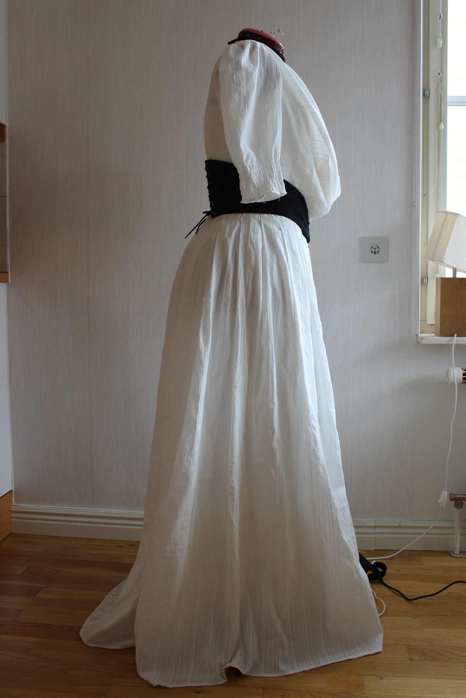 I realized at once I was not going to manadge the black colour fading on the skirt, simply because my fabric didn’t had the toning. Nor did it had the flowery design, and I did not had the time to cut and attach several hundreds of flowers to get the style completly right. Maybe that will be something to do later on, if I decides I like it this time around.