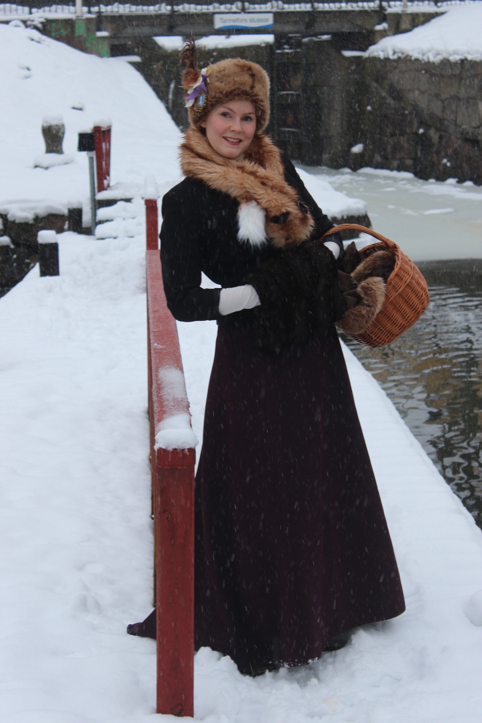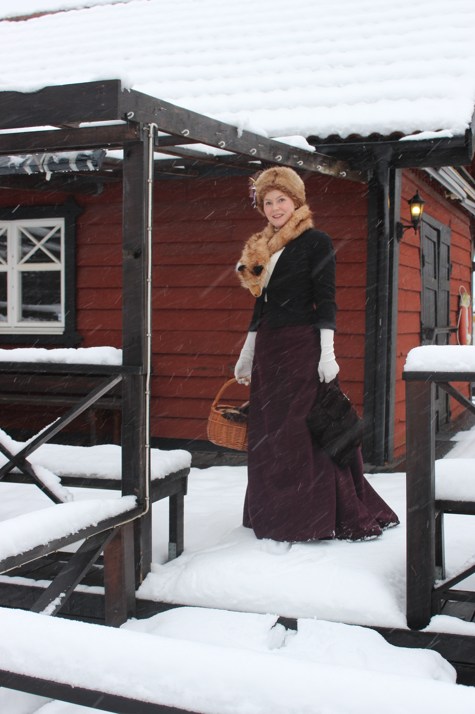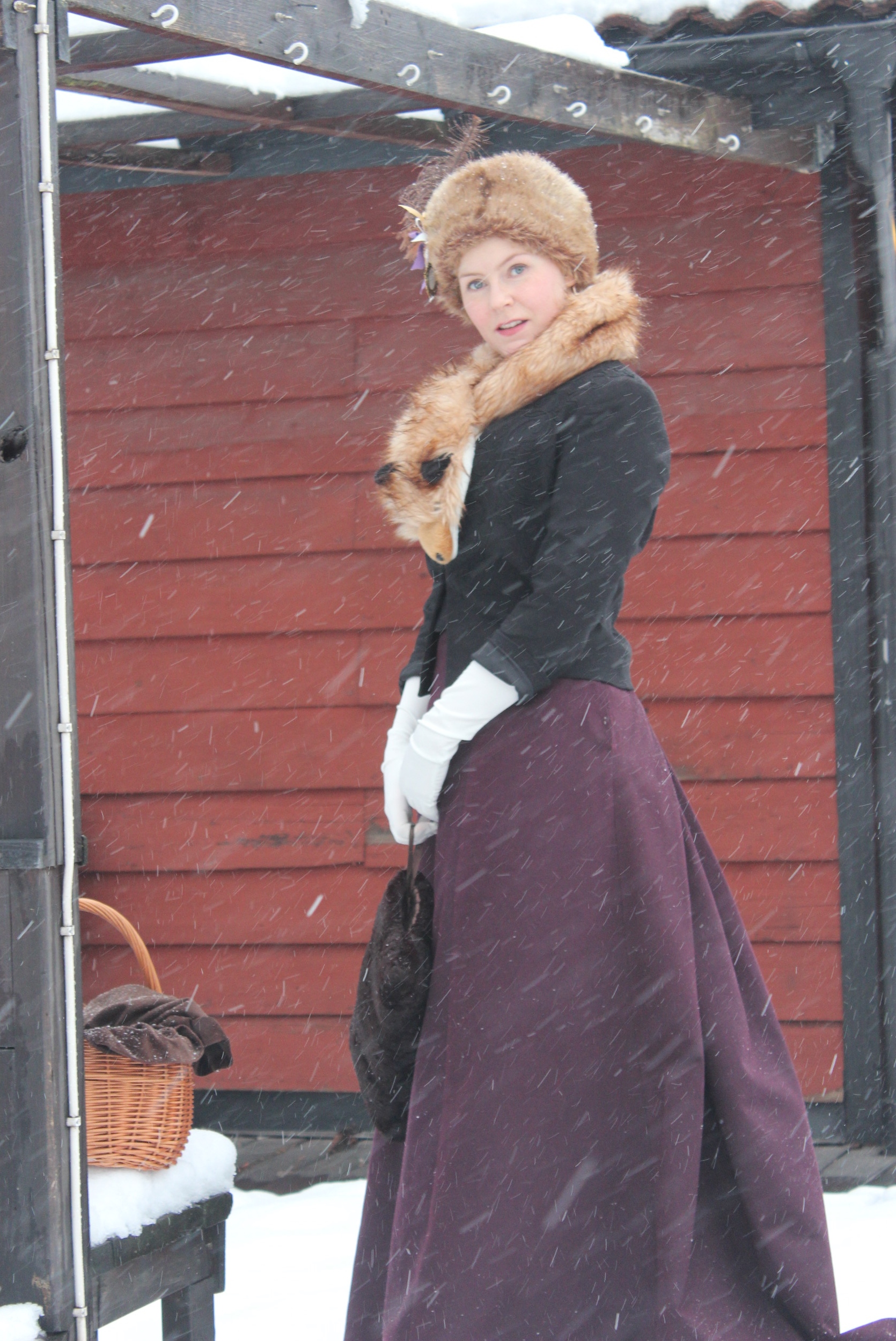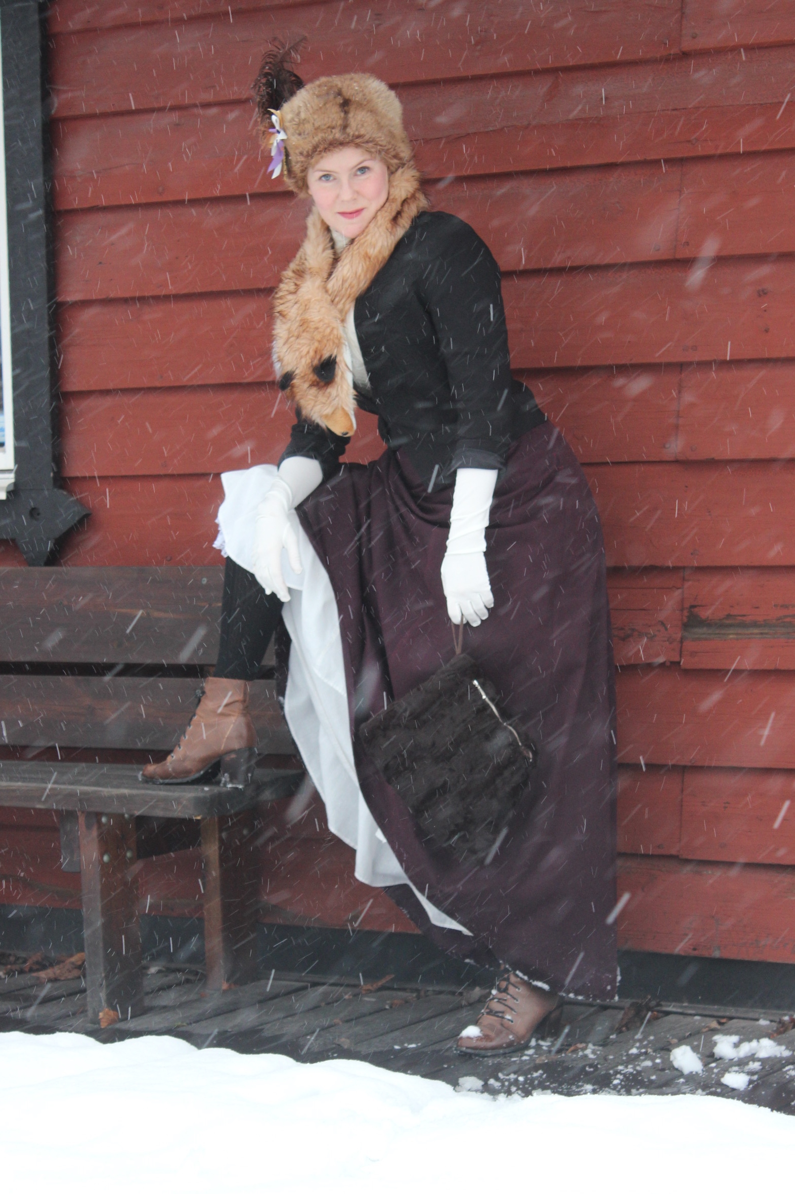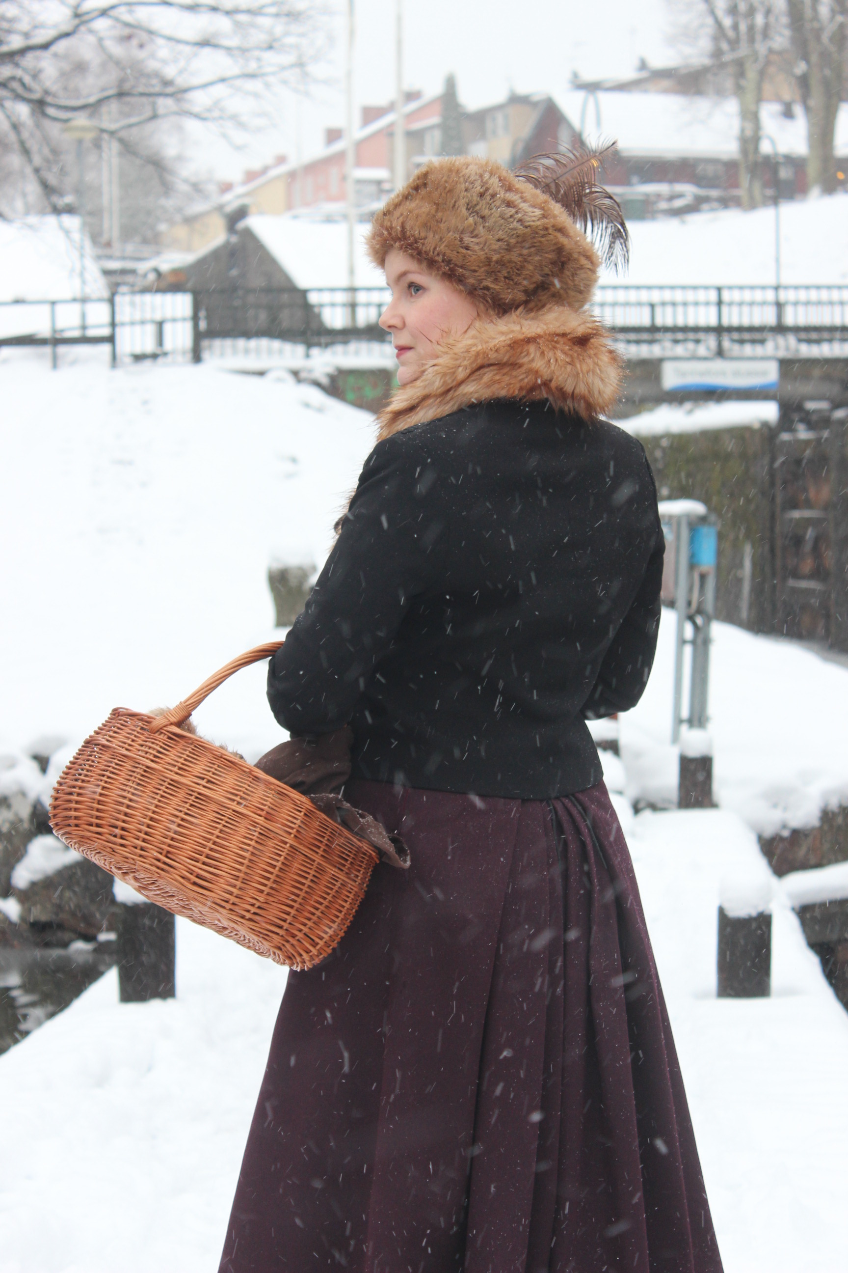 After some searching, both for inspirational pictures and in the fabric stores, I decided on a dark brown faux “wolf” fur, that would work nice with the red and browns in the gown.
