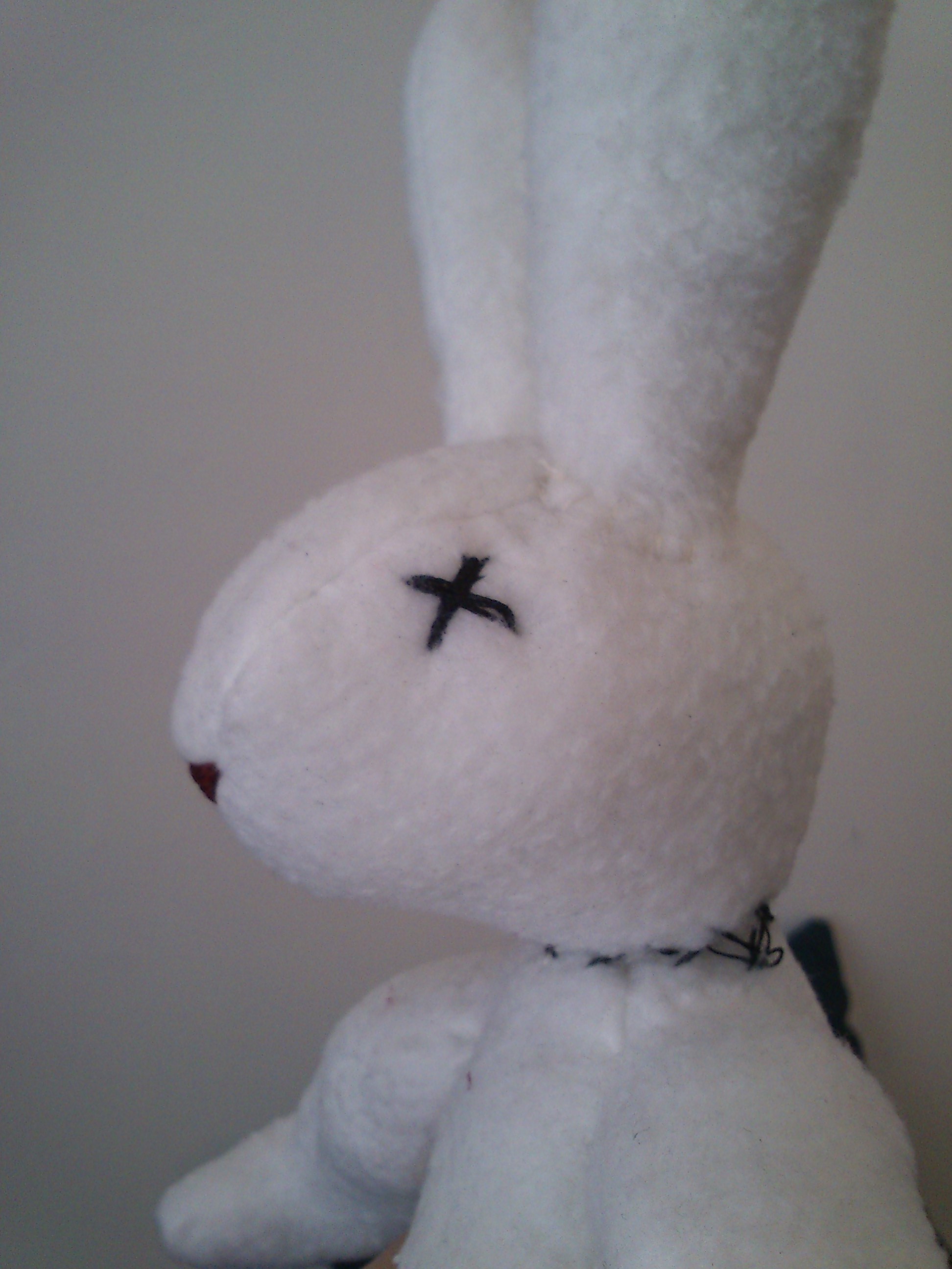 I even “killed” the bunny by stiching X-s as eyes, and making the head removable (and attacheble) with a hidden snap.