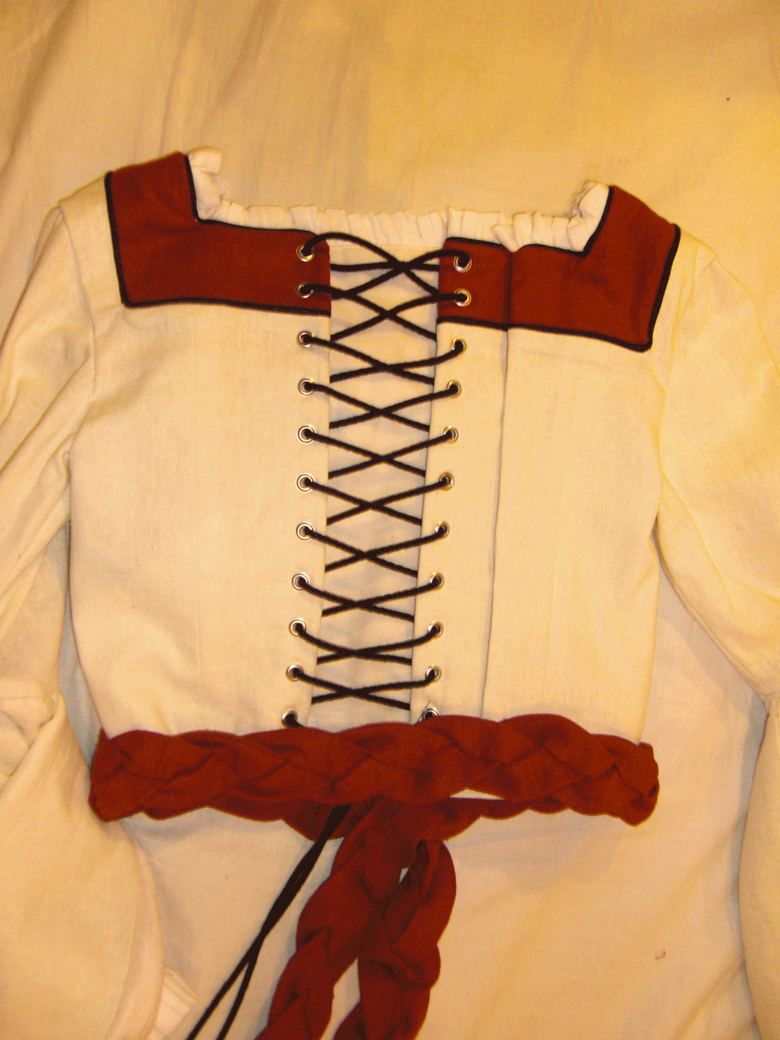 And the bodice with the big sleeves sewed on, and a opening in the back next to the lacing which closed with snaps.