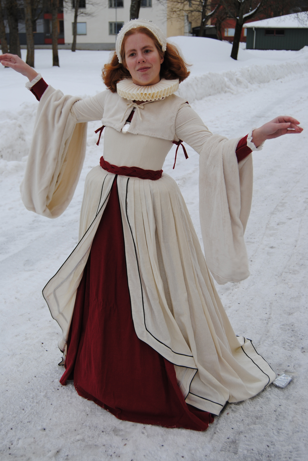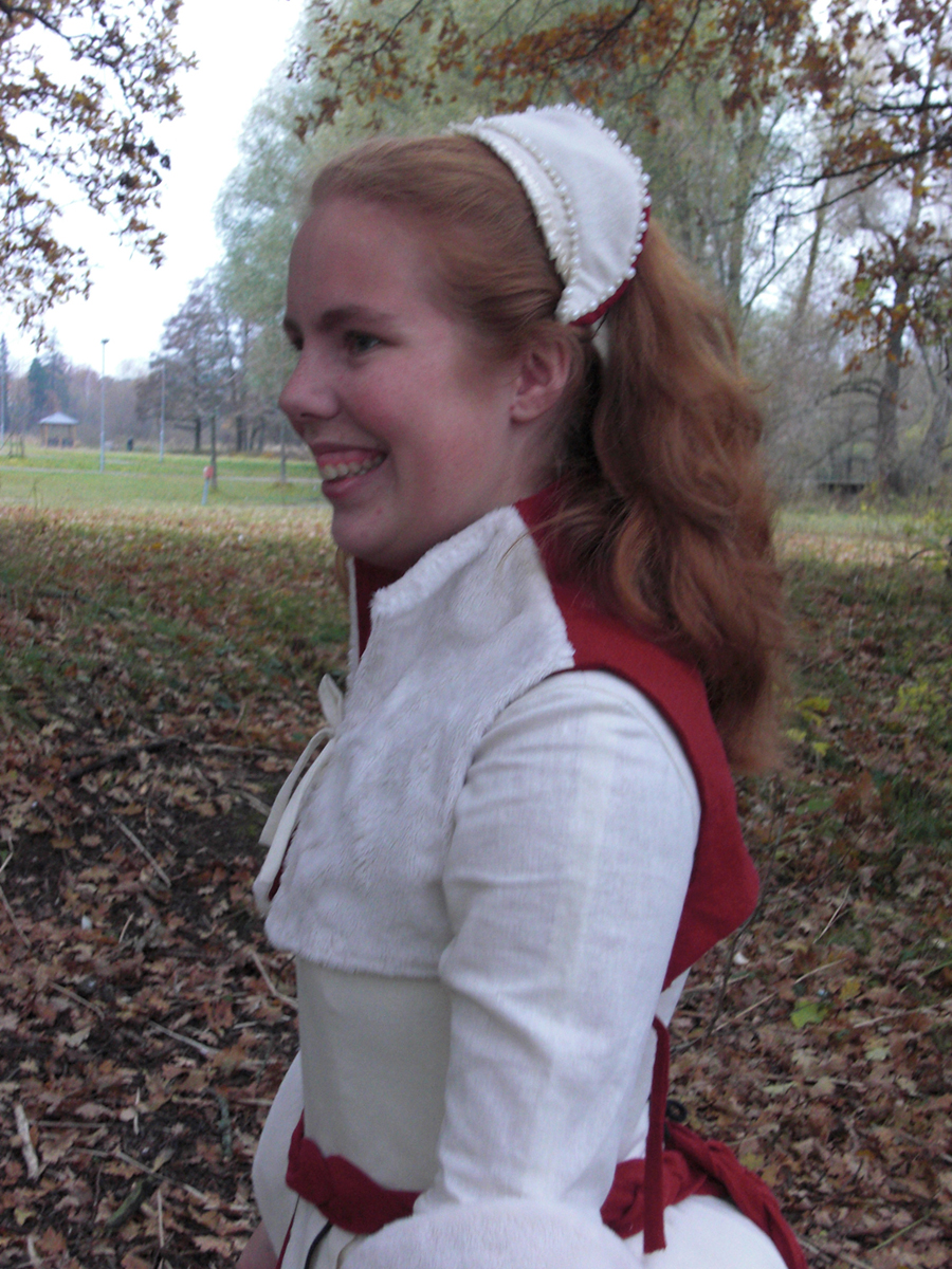 I also made a partlet, a bumroll, a belt and a french hood.