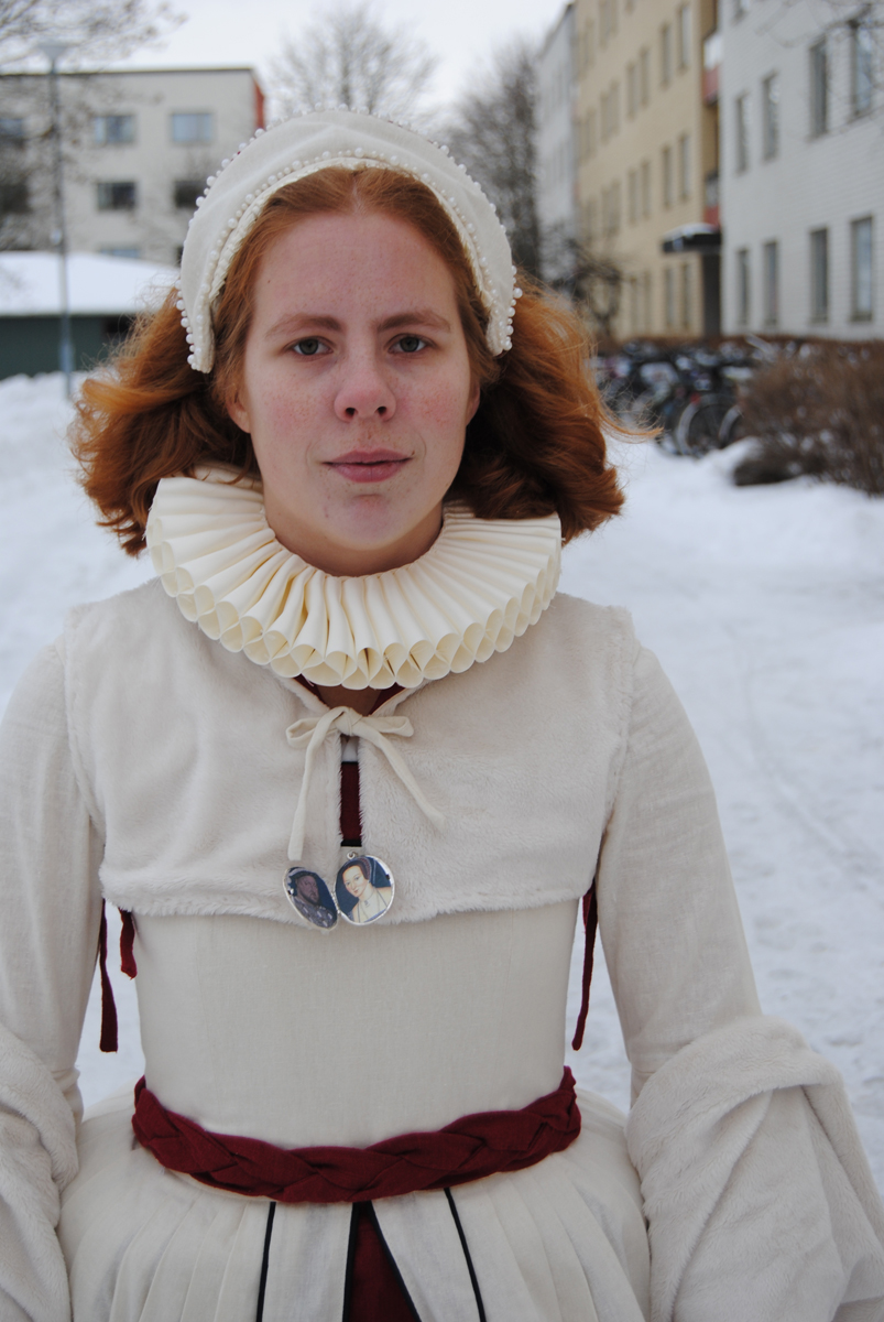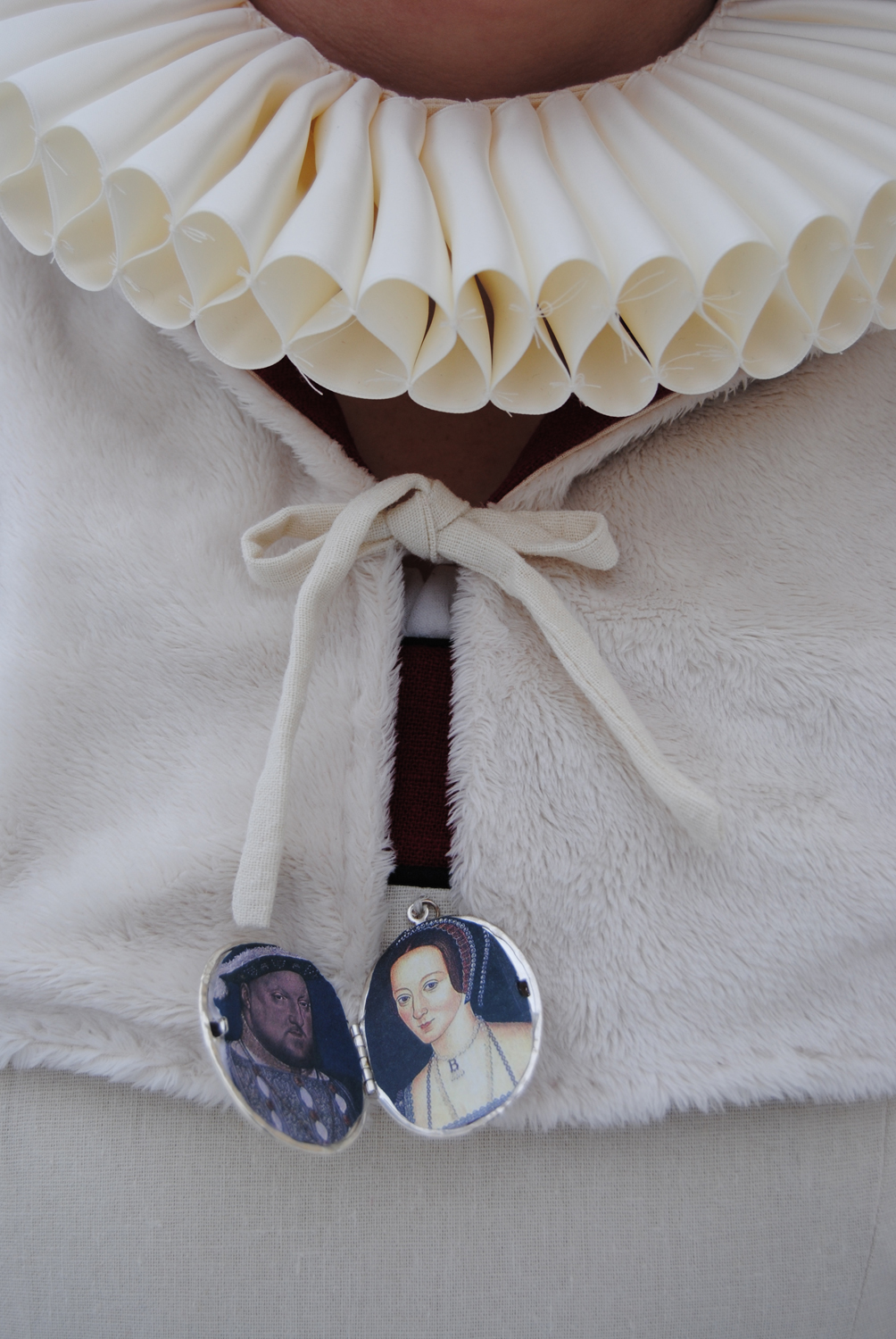 I also made a simple ruff to wear around the neck, and put some pictures of King Henry IIIV and Anne Boleyn in a amulet.