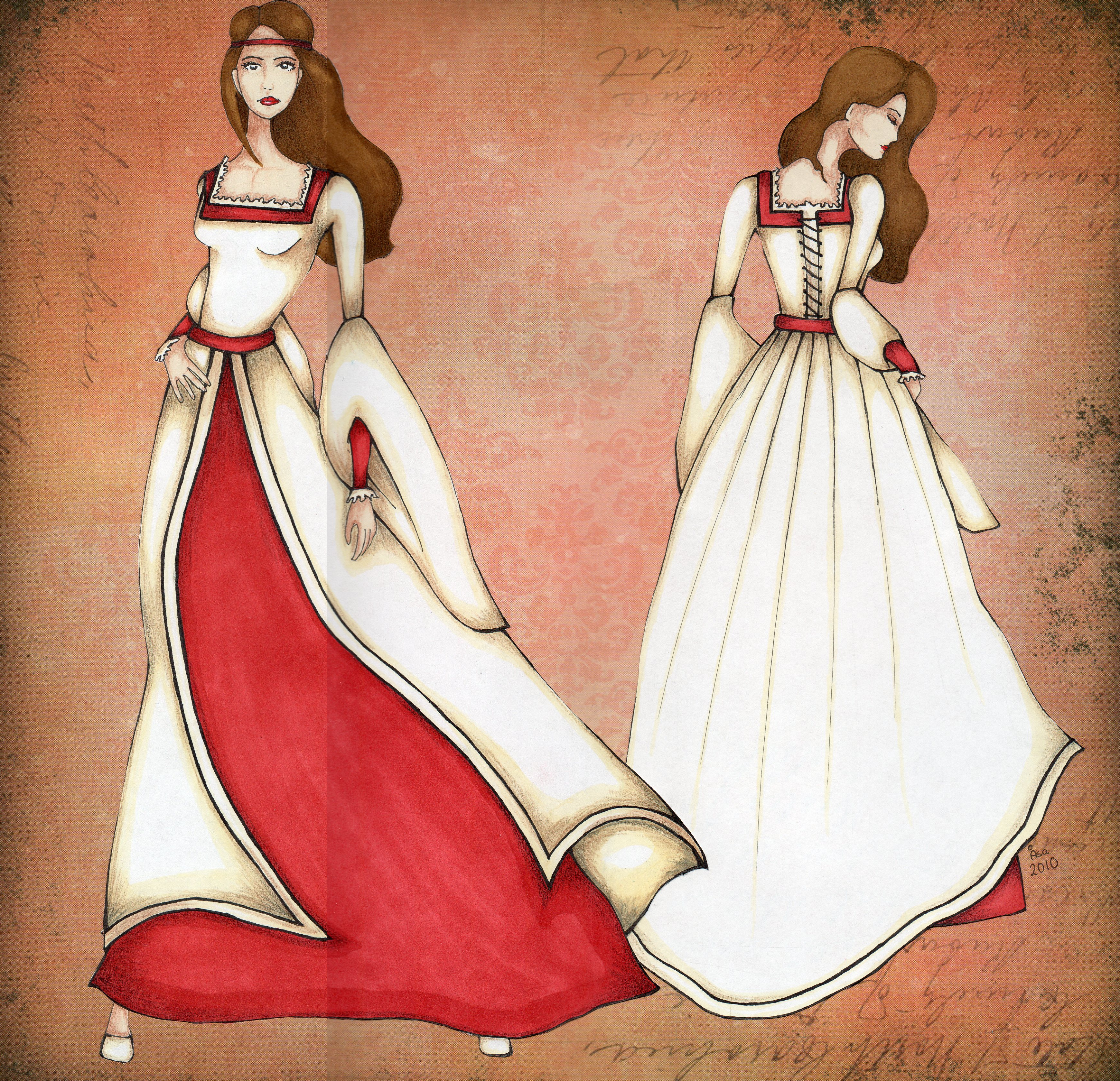 Being a sucker for beautyful renessance gowns, I choose the one female character in the play – Miranda, the daughter of the king, who’s been living on a deserted island until a prince comes and rescues her.