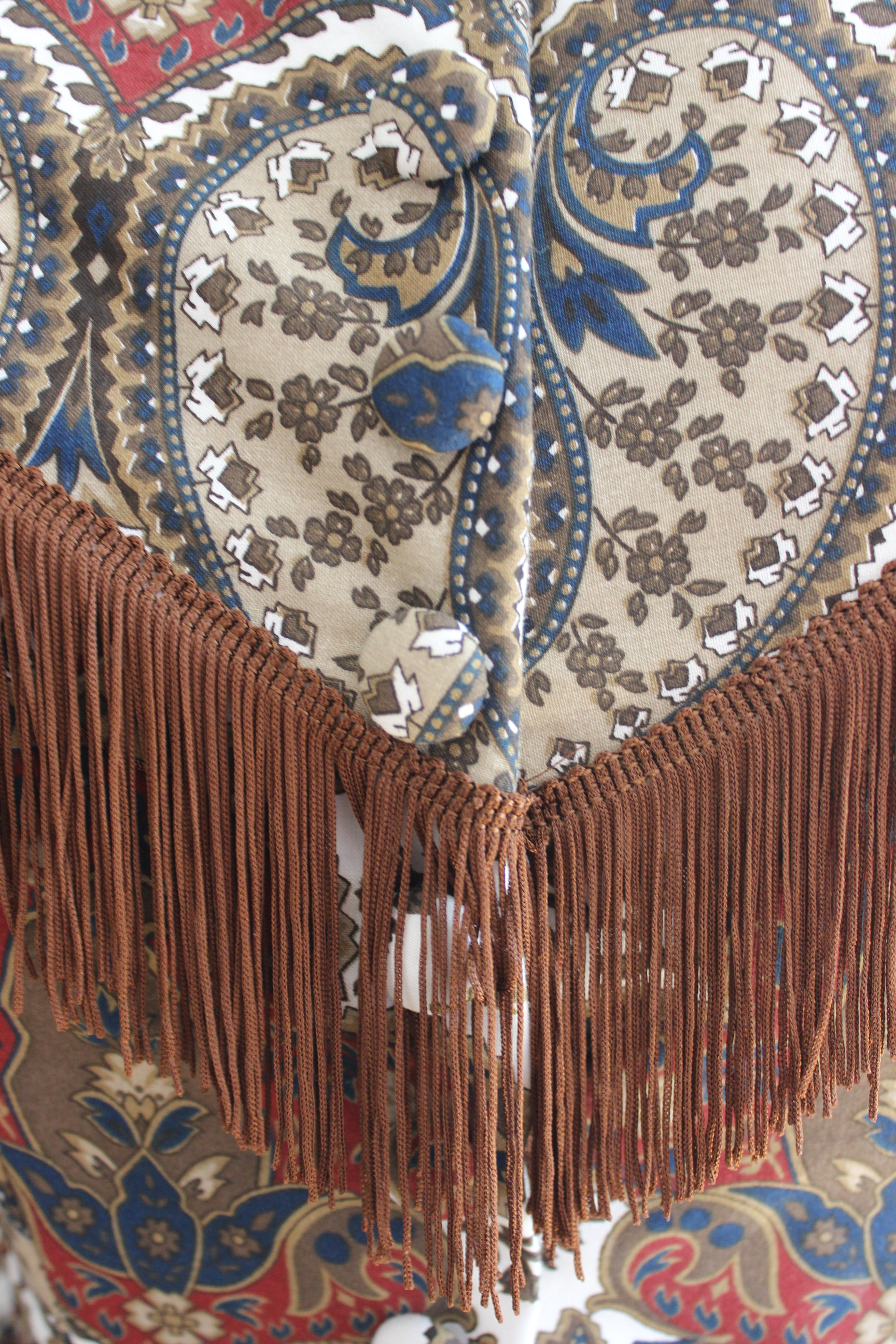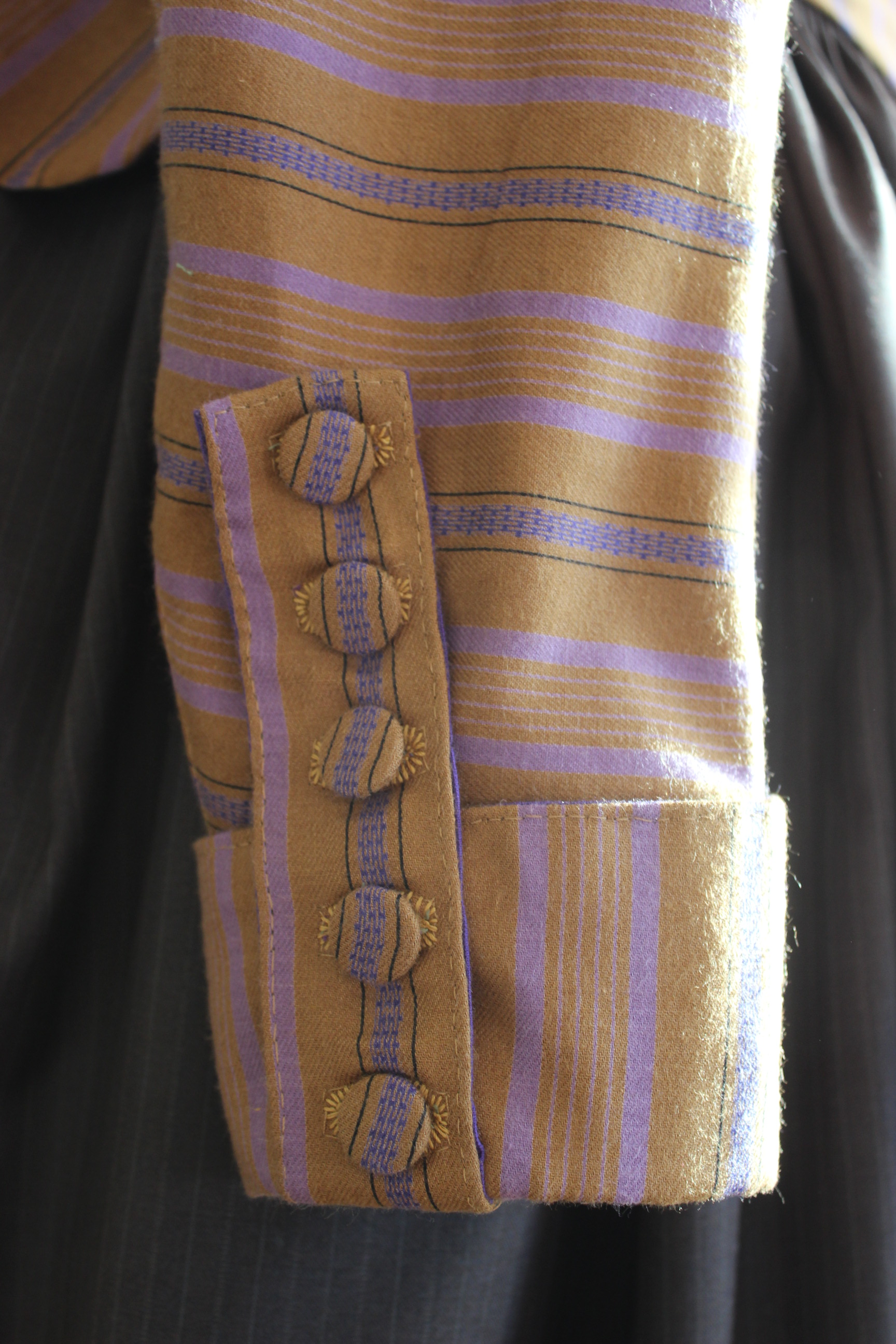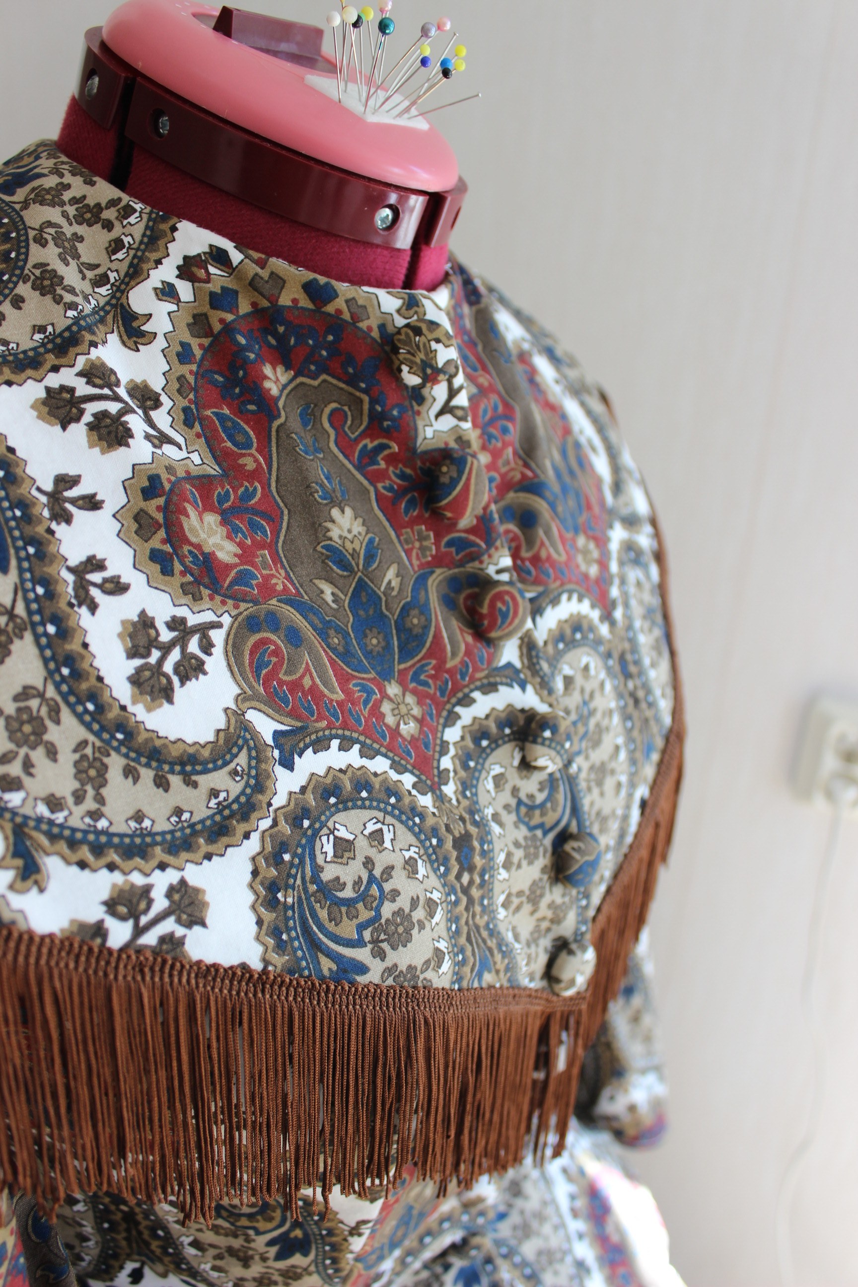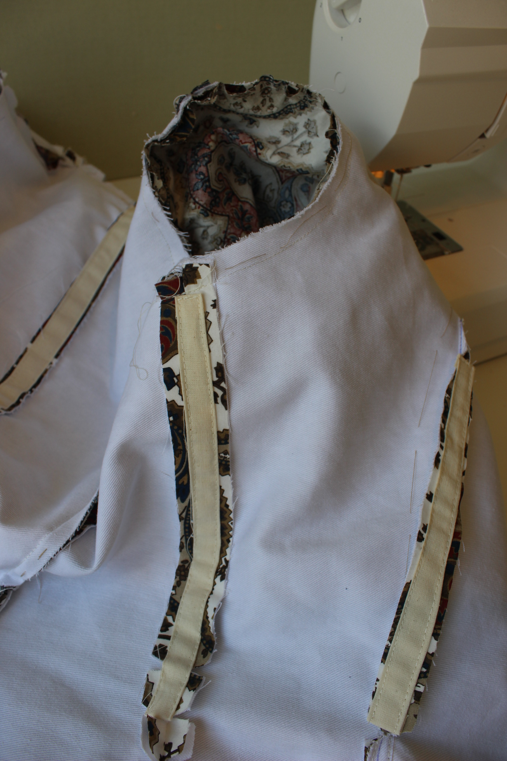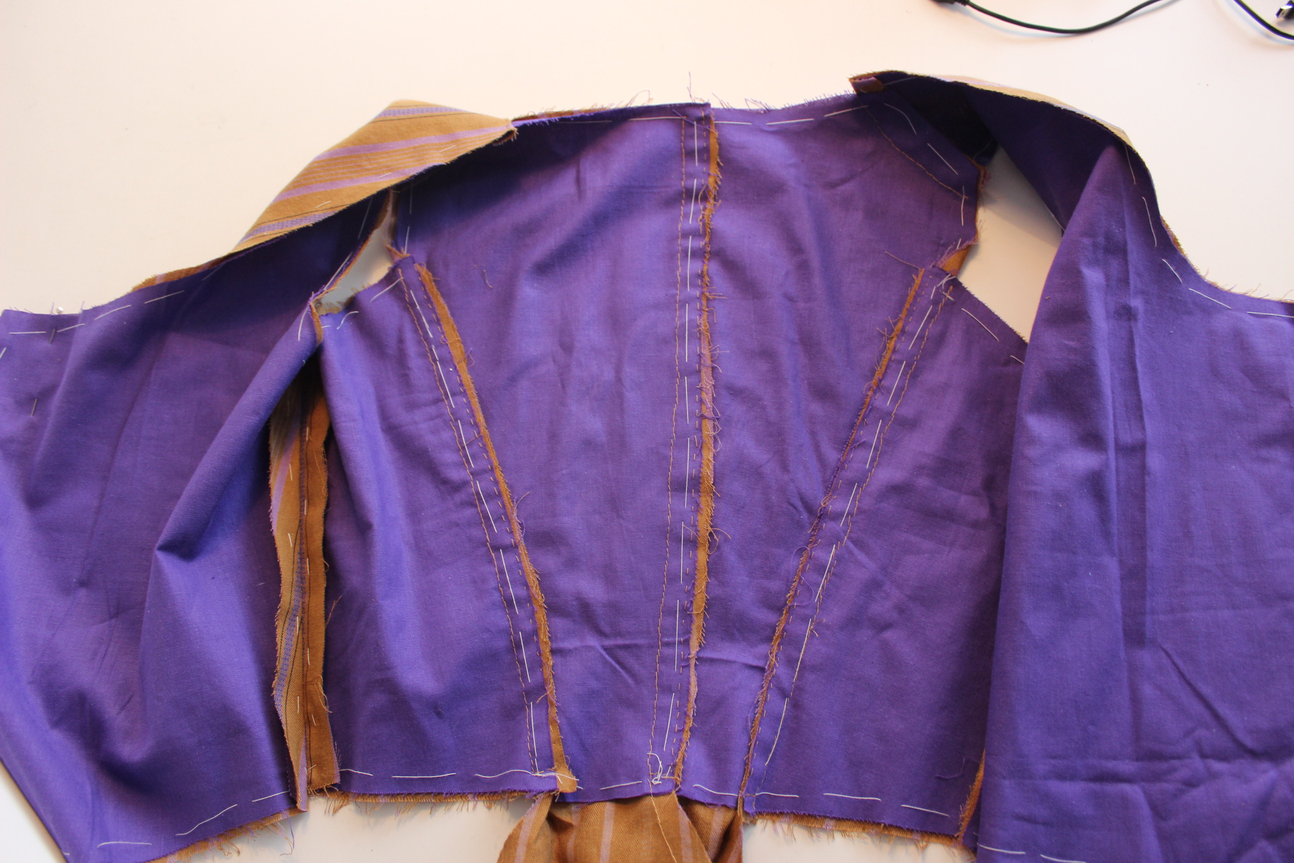 Then I stitched it together, inserted the double sleeves, added lining and begun working on the trimming.