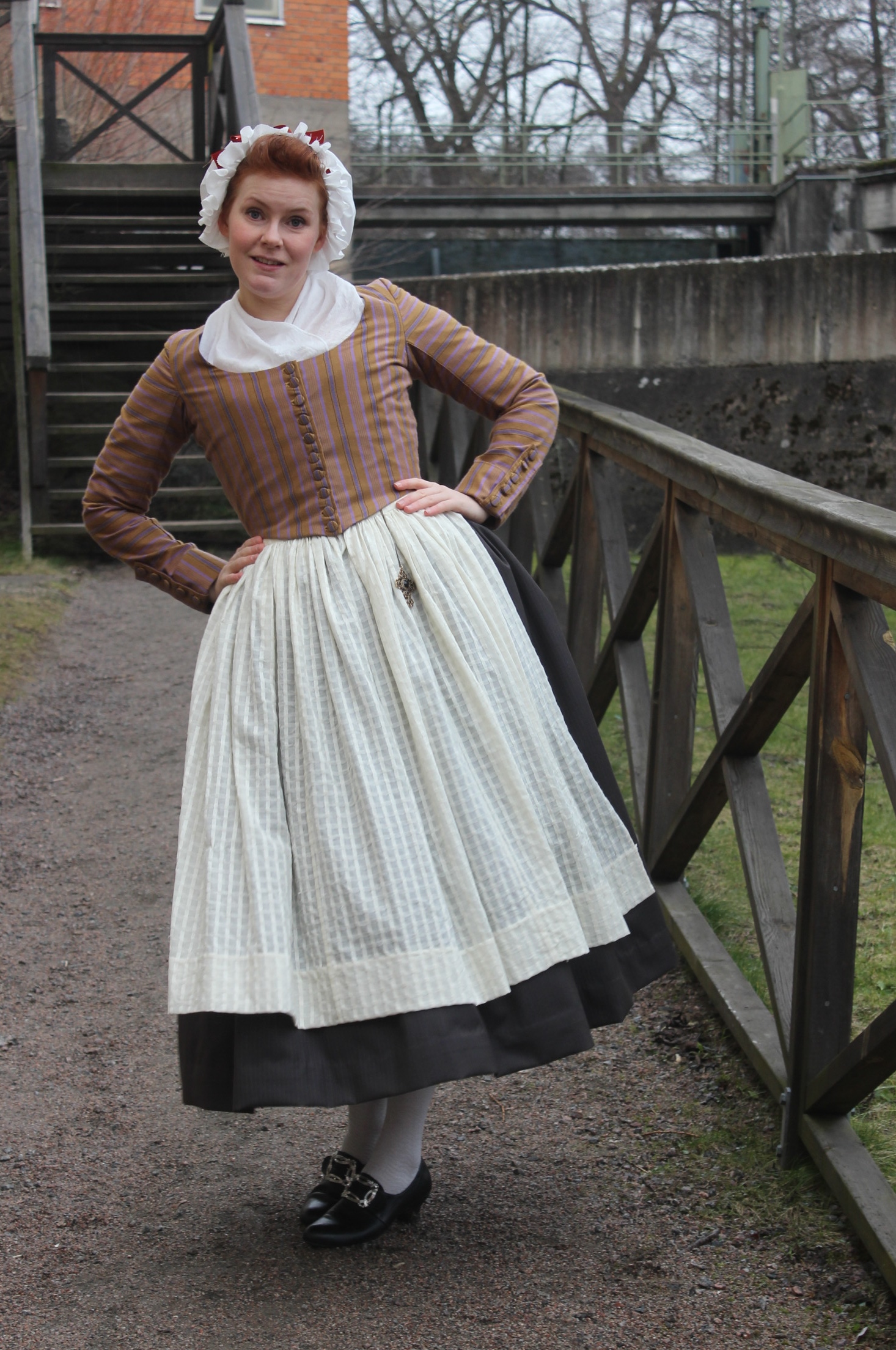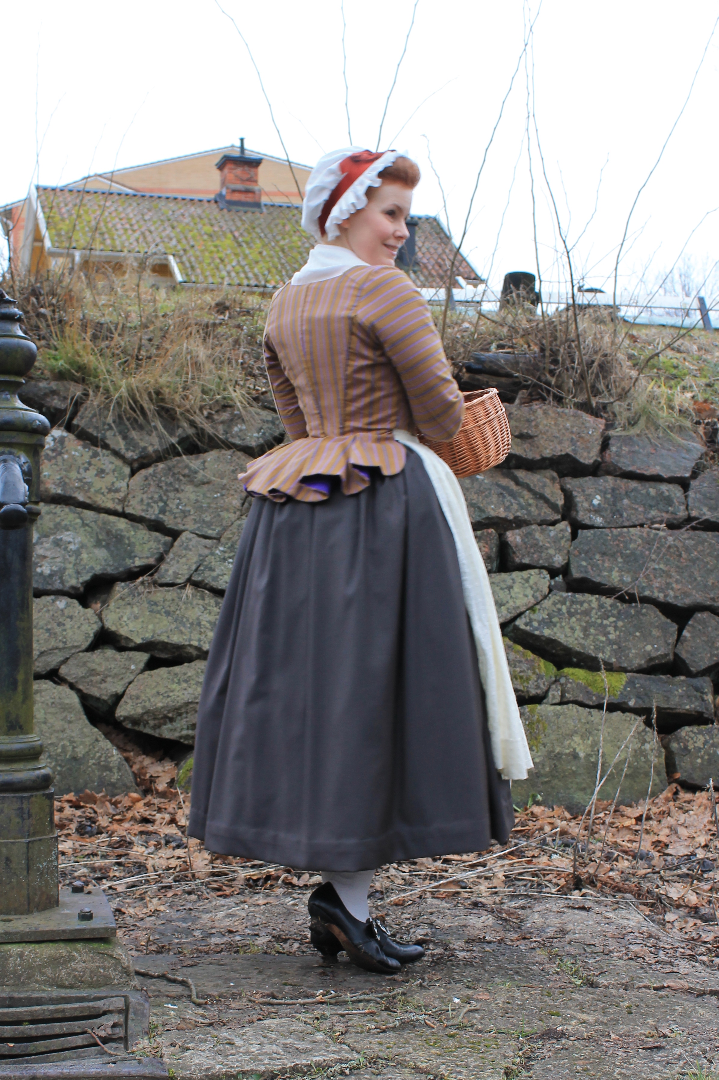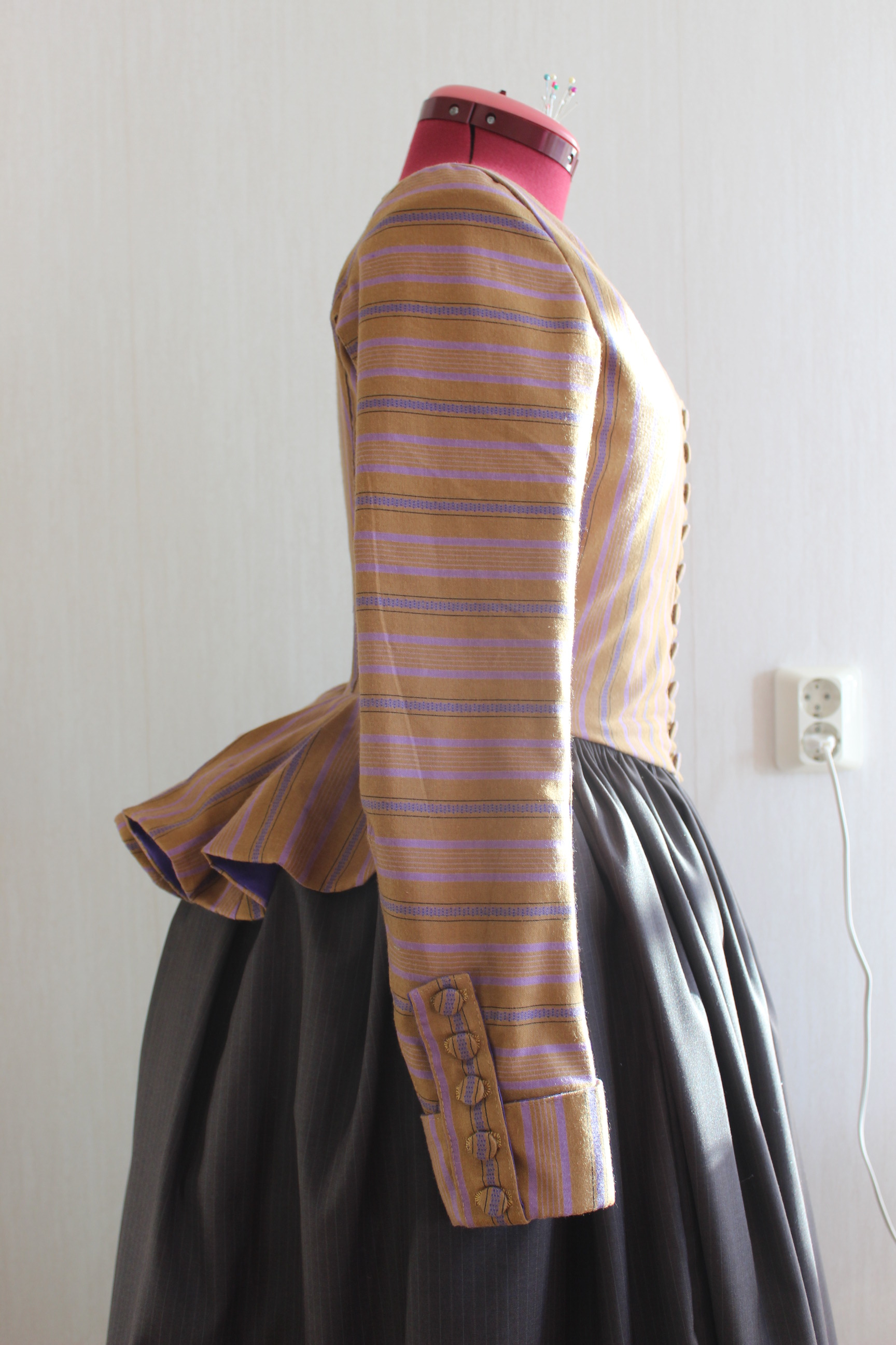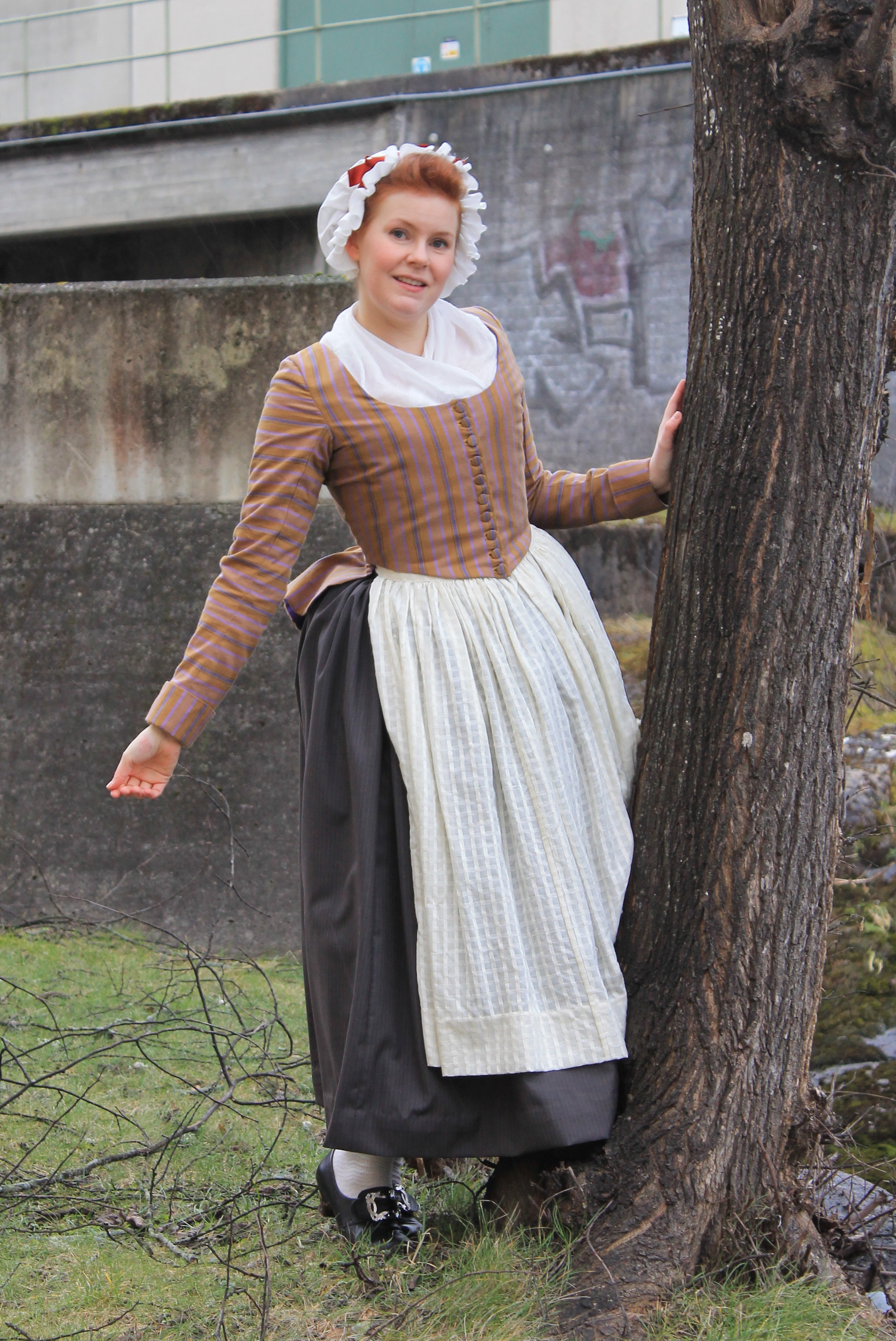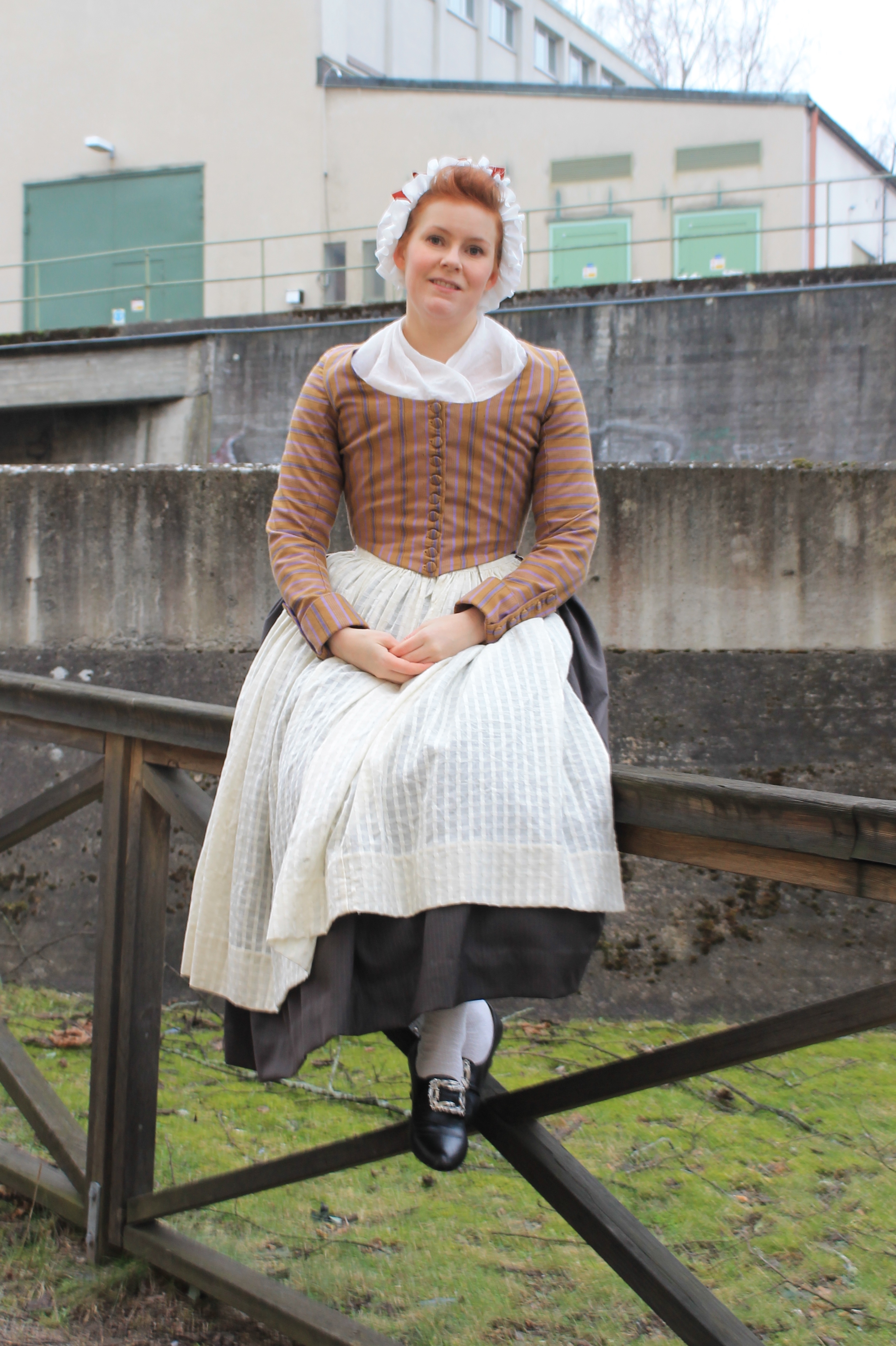 How historical accurate: So so – The look and the pattern are good, but the fabric is way to thin and should have been either a thin wool or a heavier cotton. Also it’s stretching it a bit time wise by saying they used sewing-machines at this time, so thats another “wrong”. Maybe 7/10