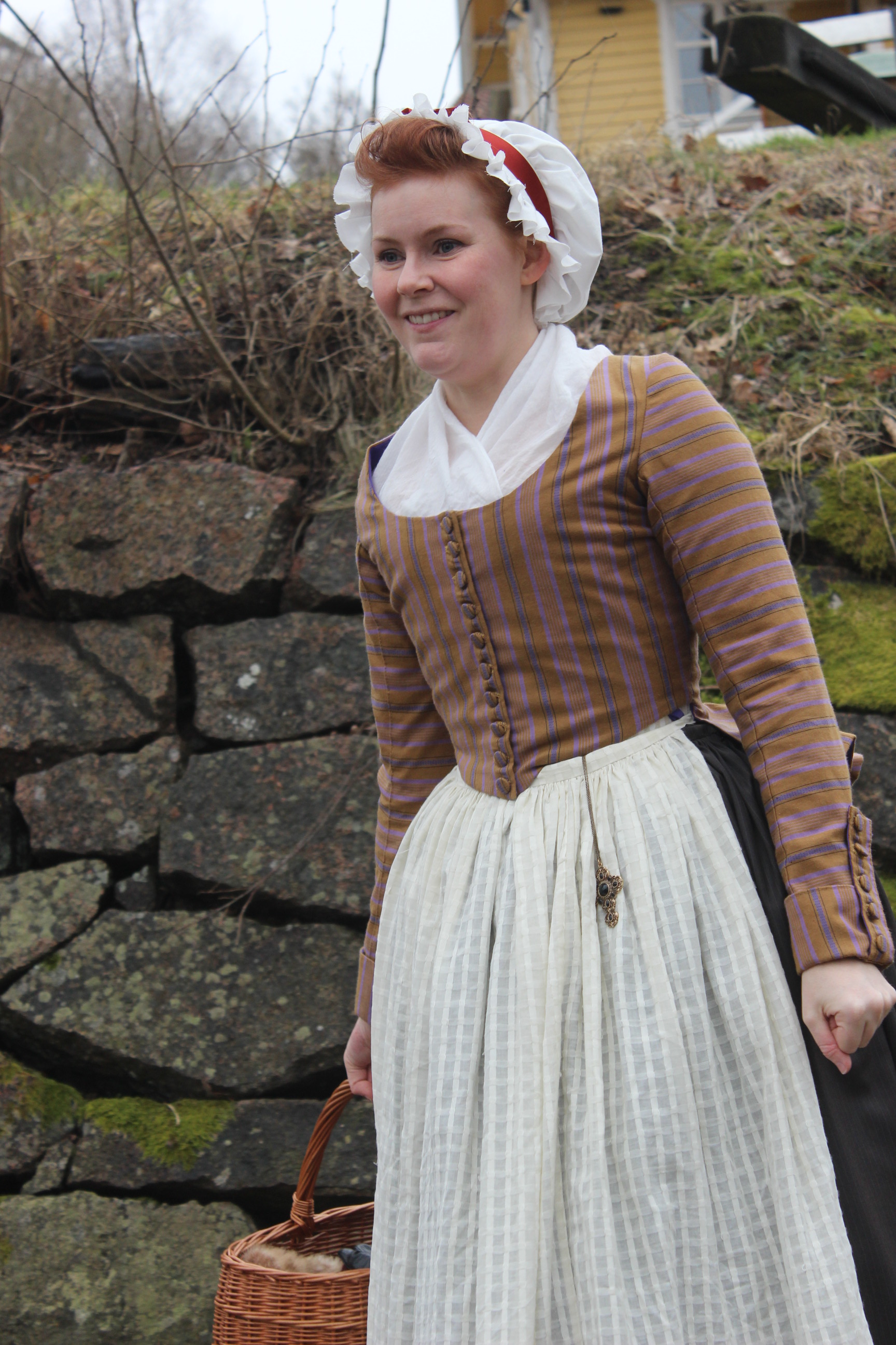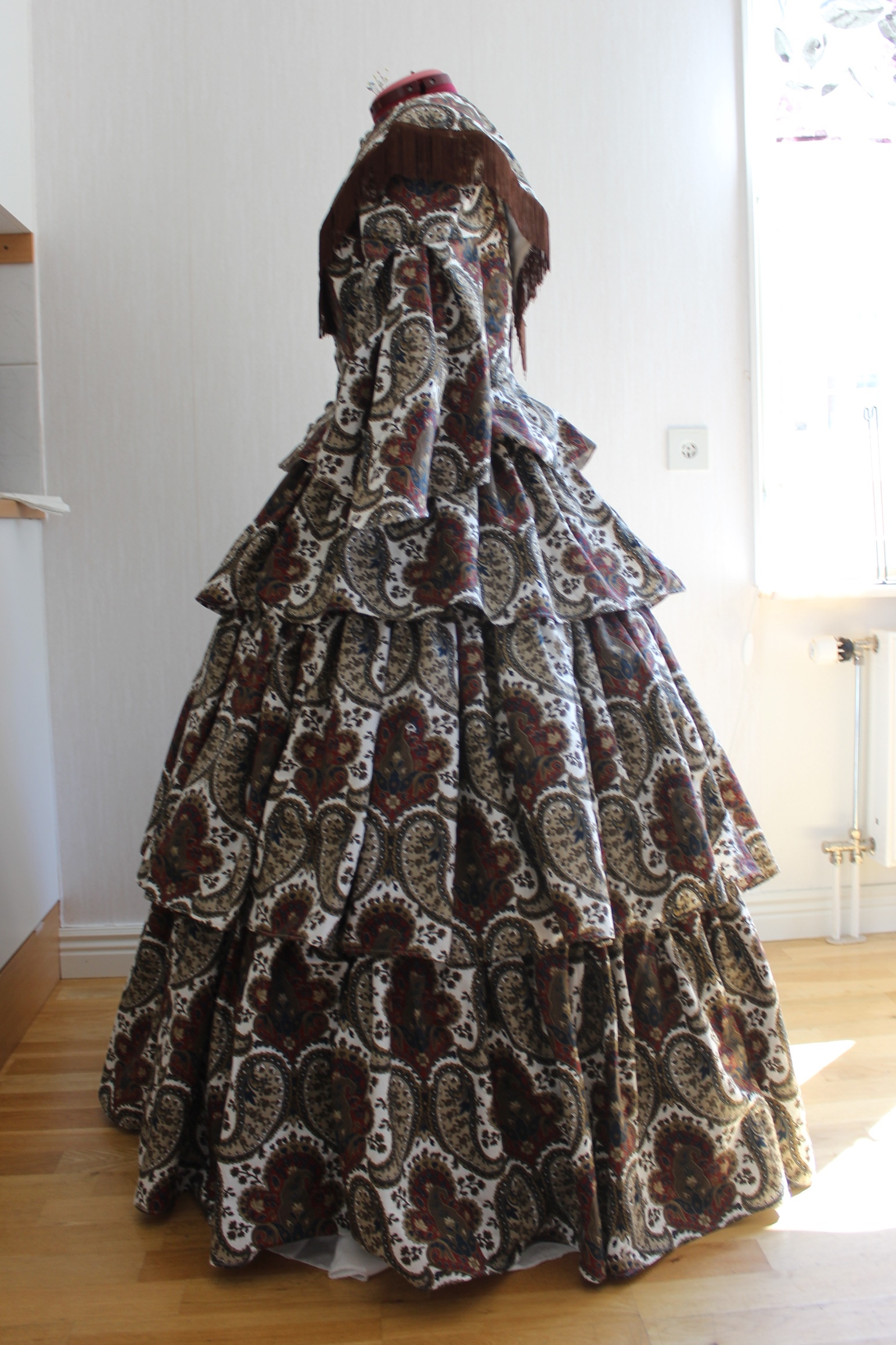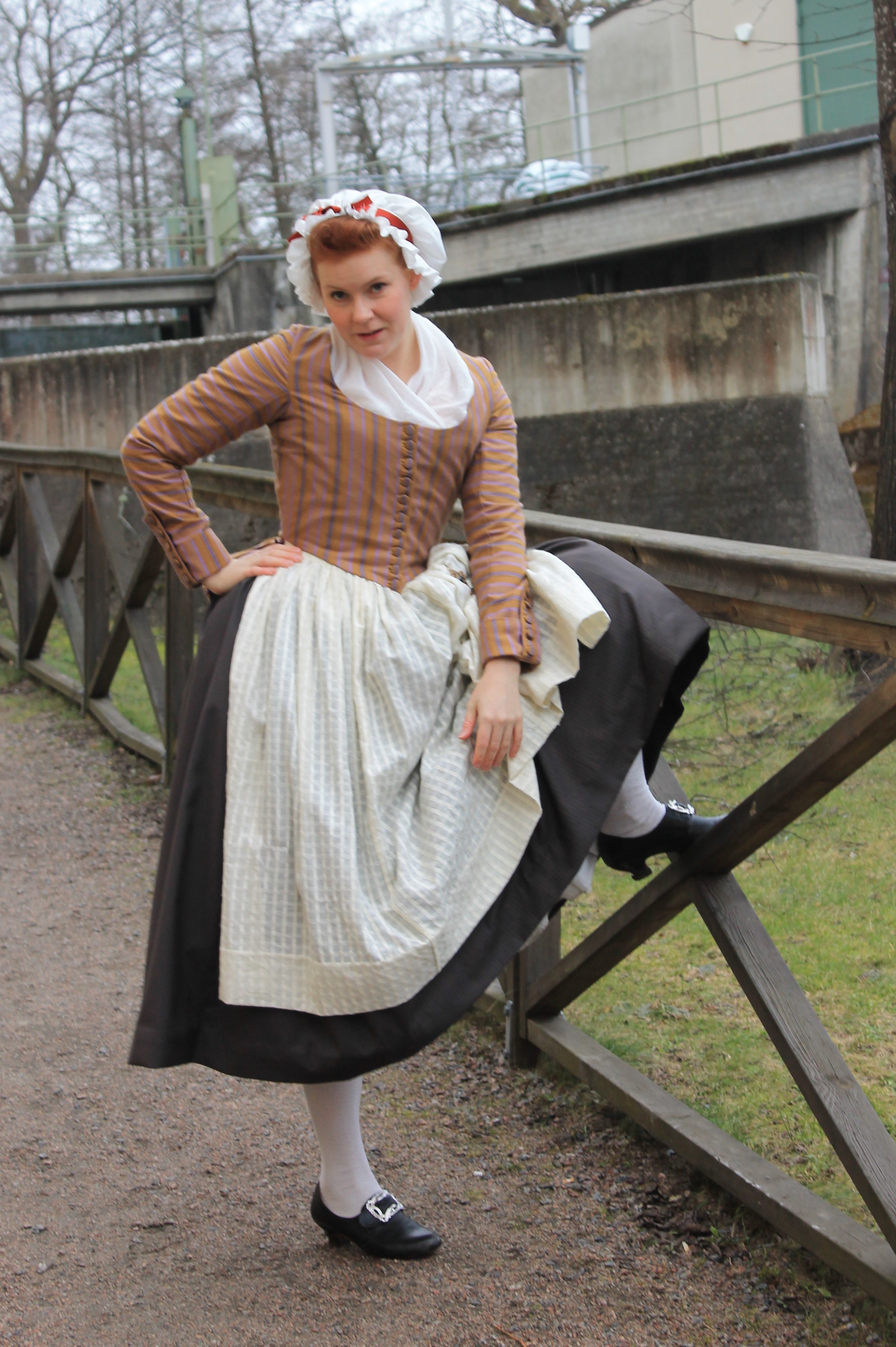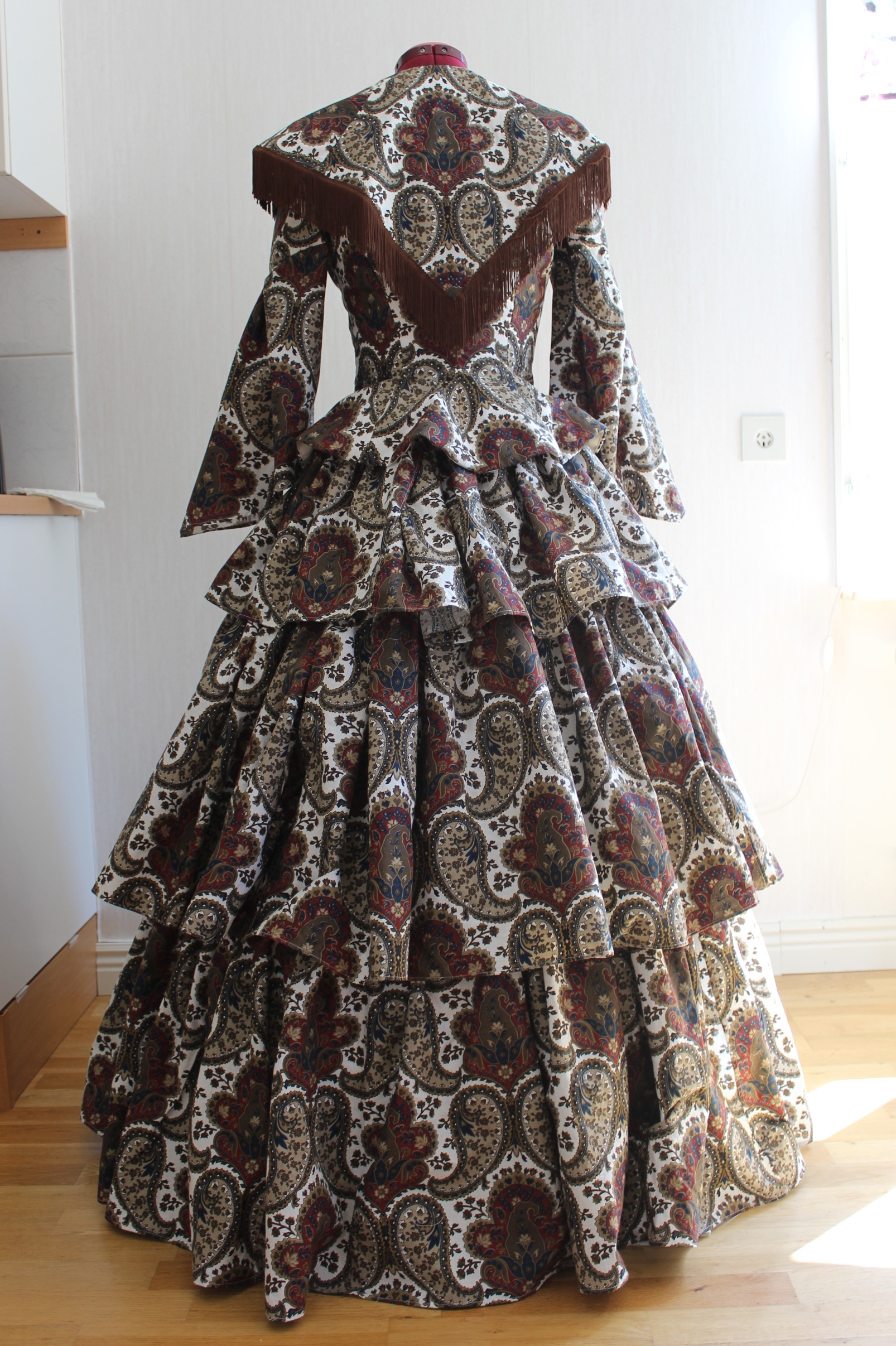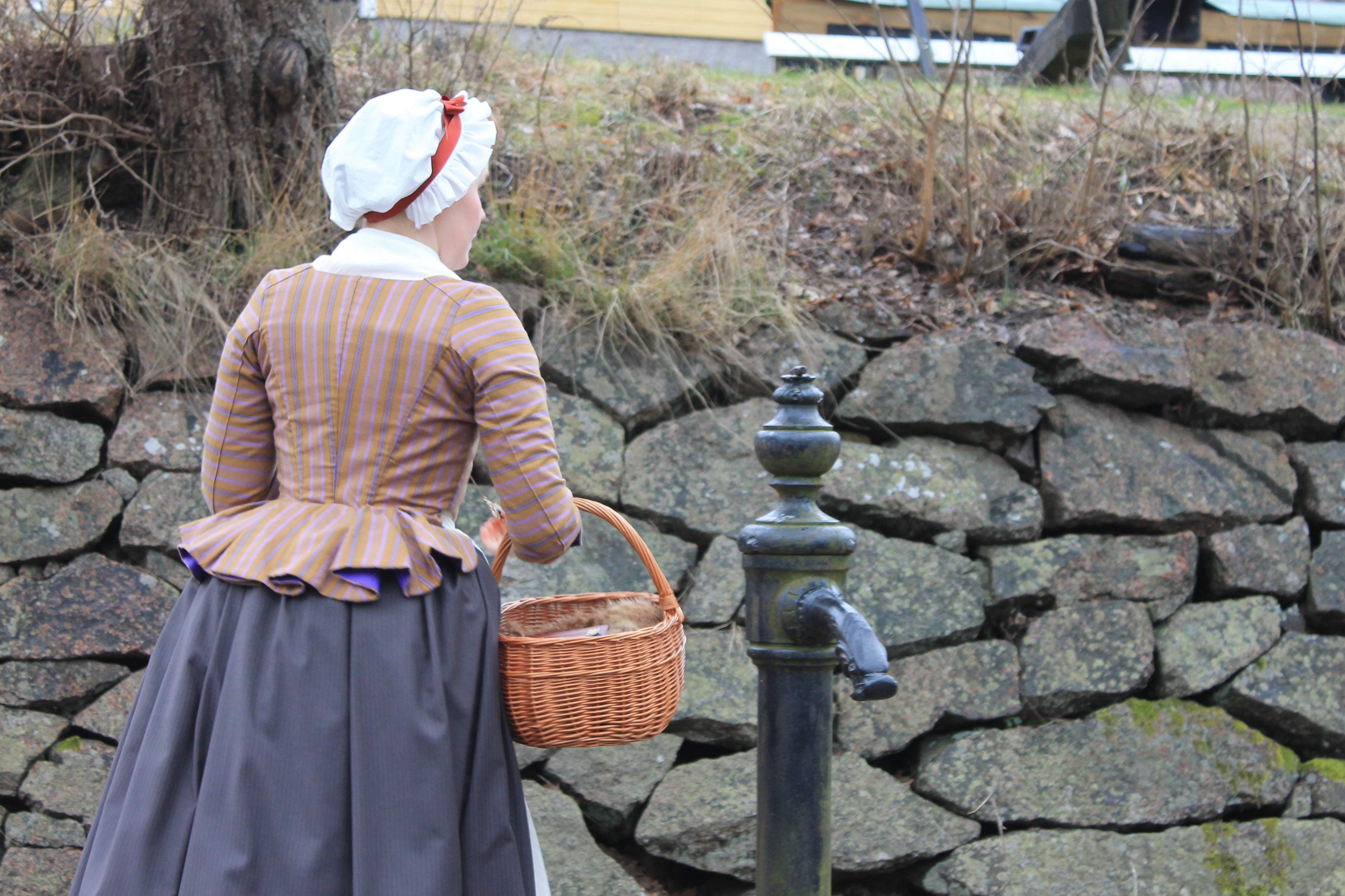 How historical accurate: So so – The look and the pattern are good, but the fabric is way to thin and should have been either a thin wool or a heavier cotton. Also it’s stretching it a bit time wise by saying they used sewing-machines at this time, so thats another “wrong”. Maybe 7/10