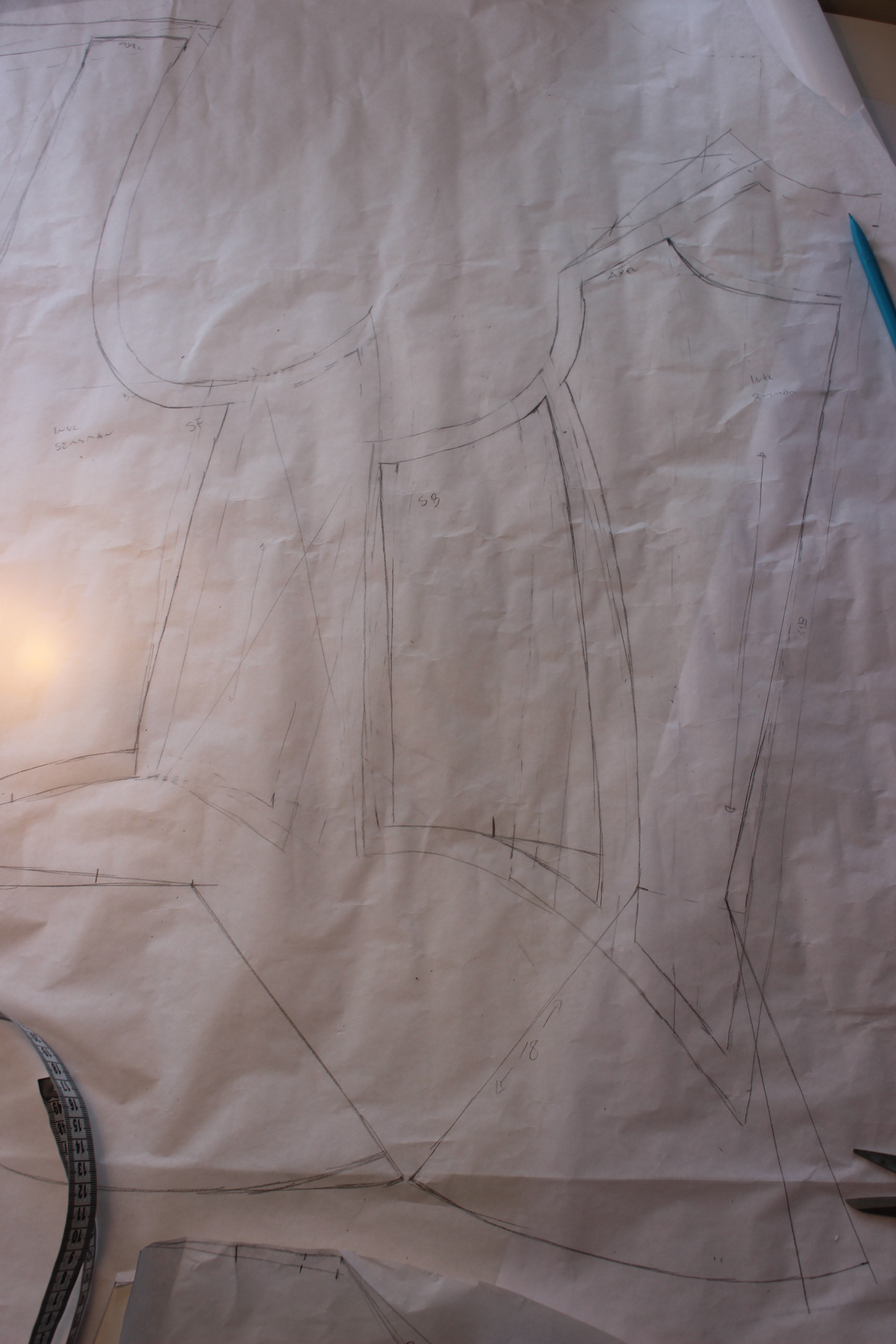 After some quick research and studying of pattern-diagrams and extant jackets on the internet I drafted my own pattern from my usual modern templates.