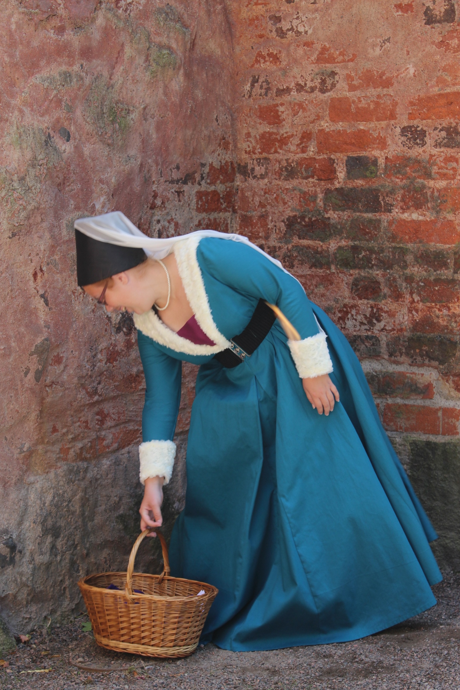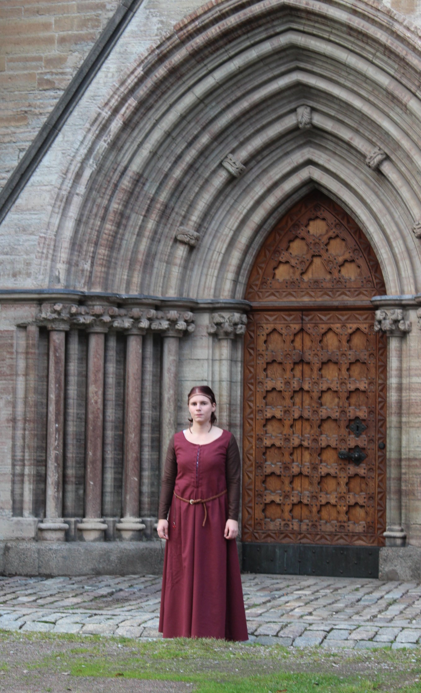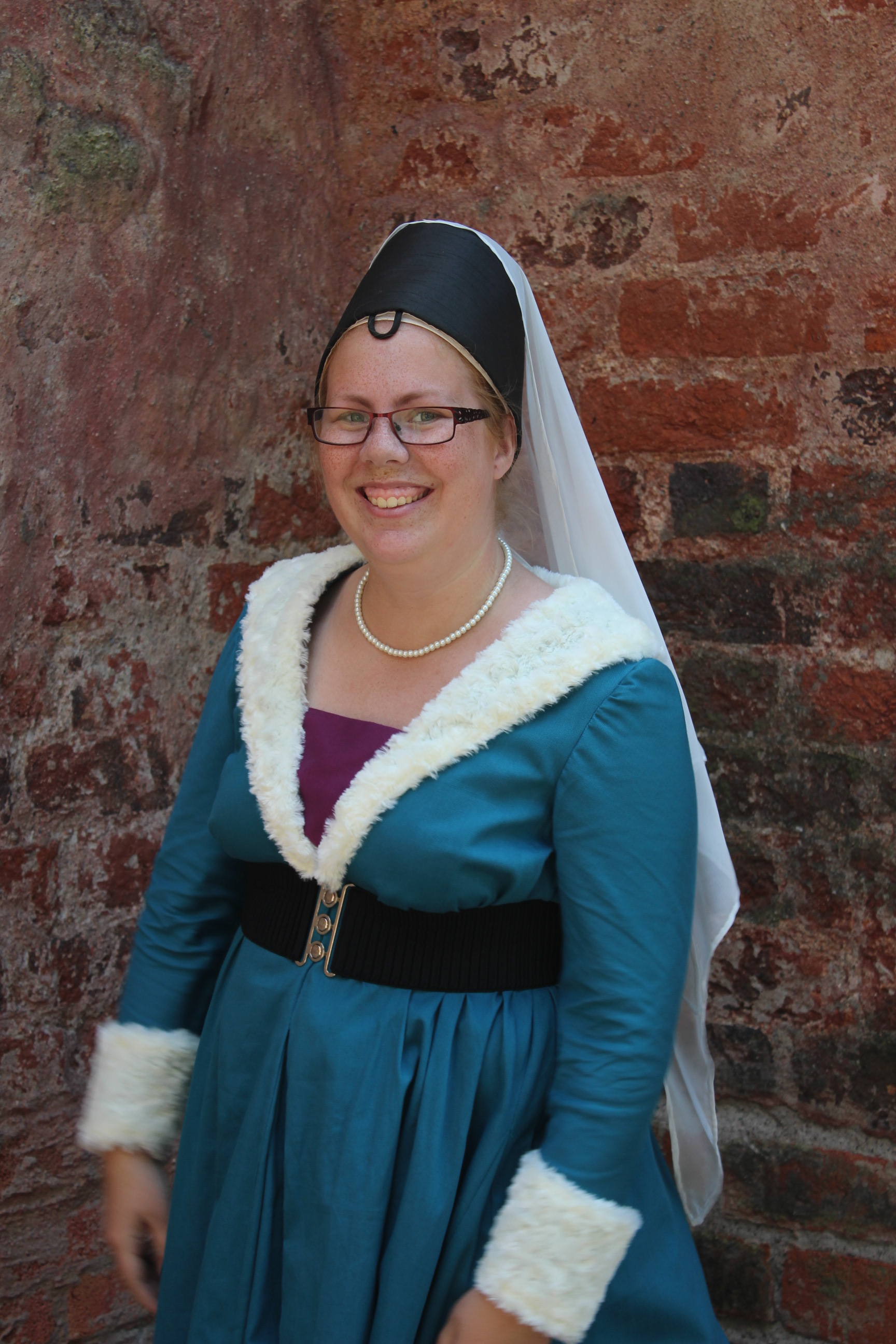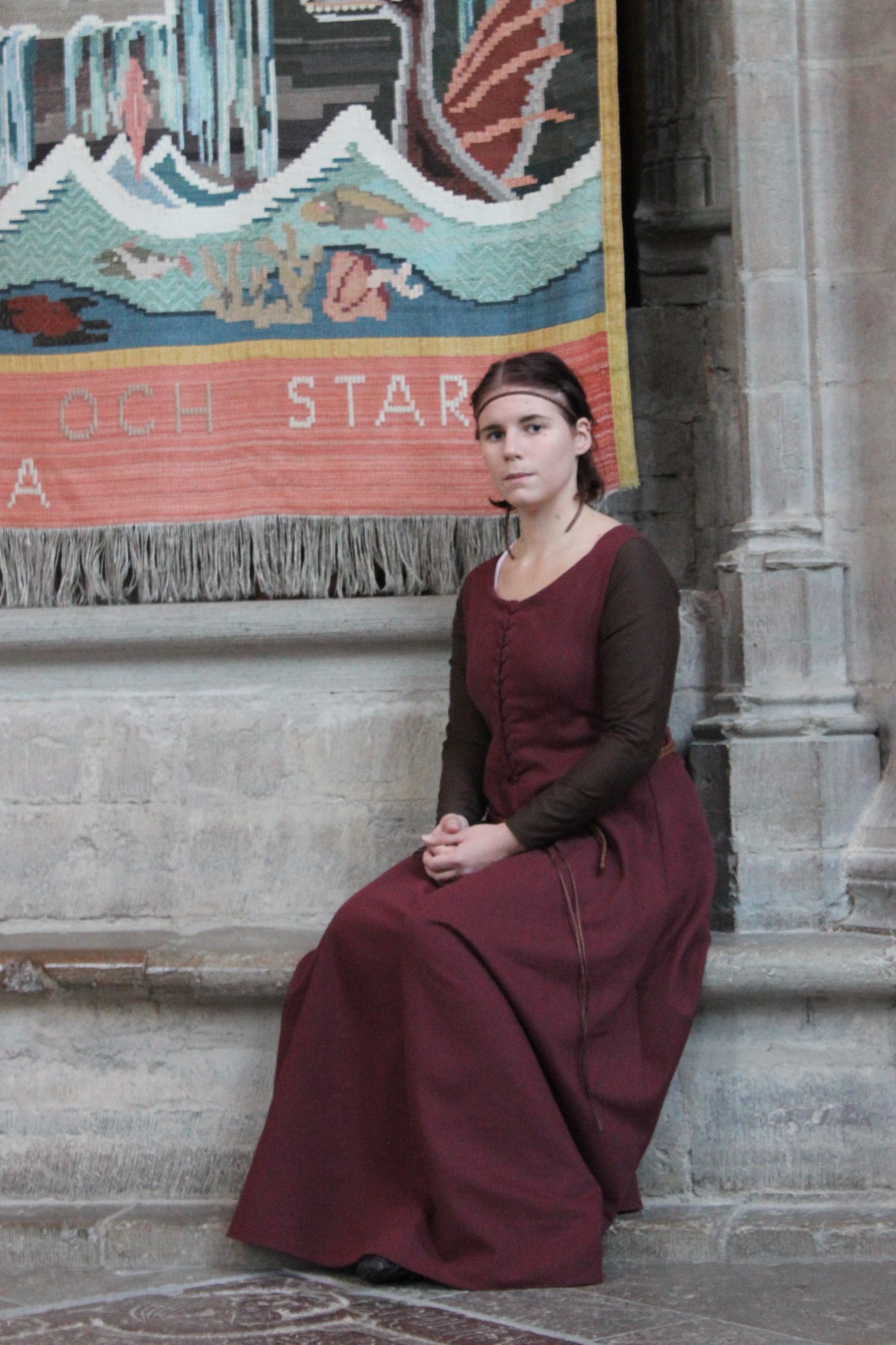 I drafted the pattern for the dress based on “The Medieval Tailor Assistant” and her measurements.