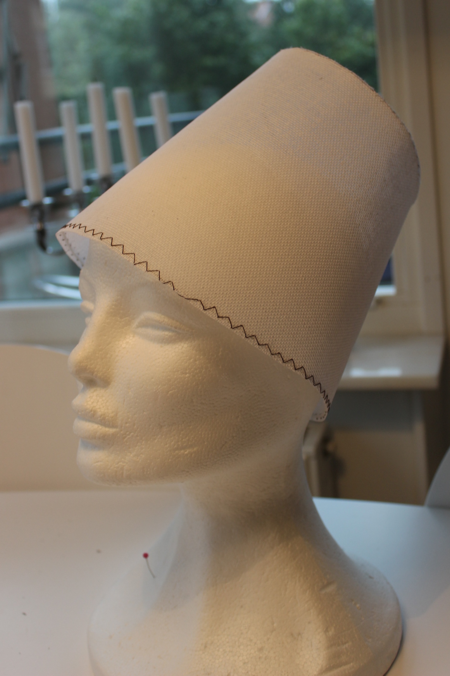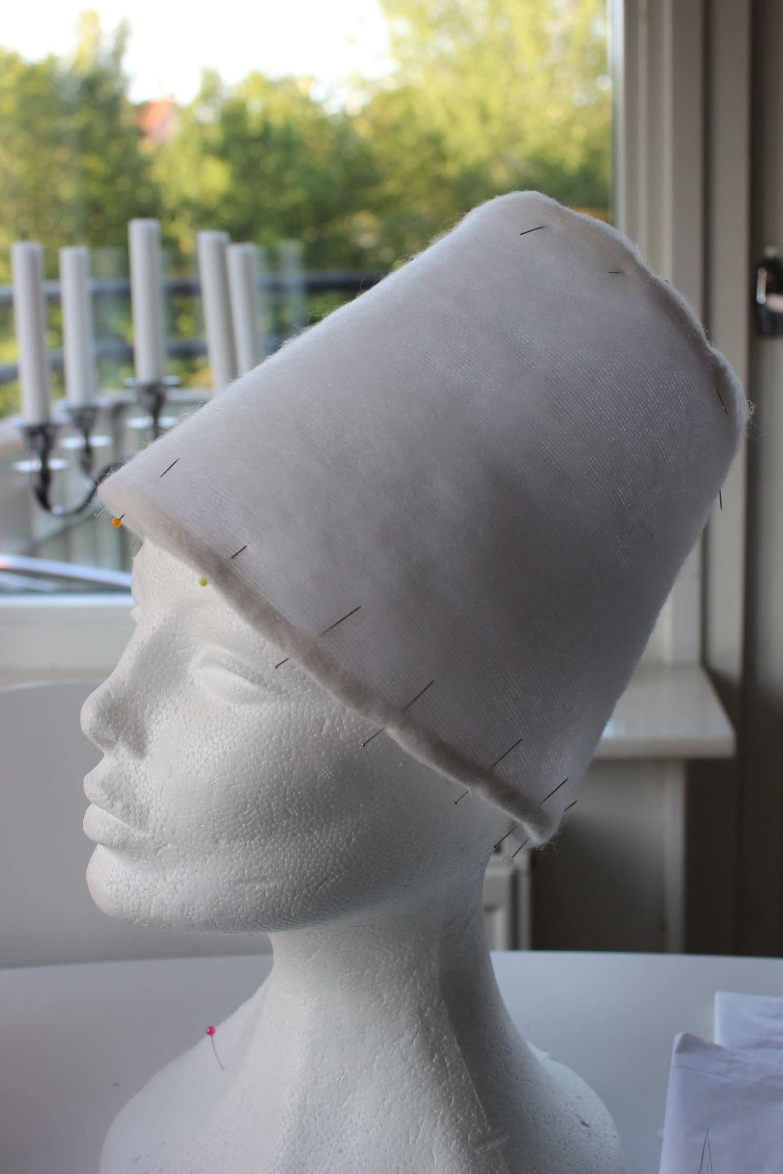 I also drafted and made a pattern test for the typical Burgundian “flower pot” headwear.Â