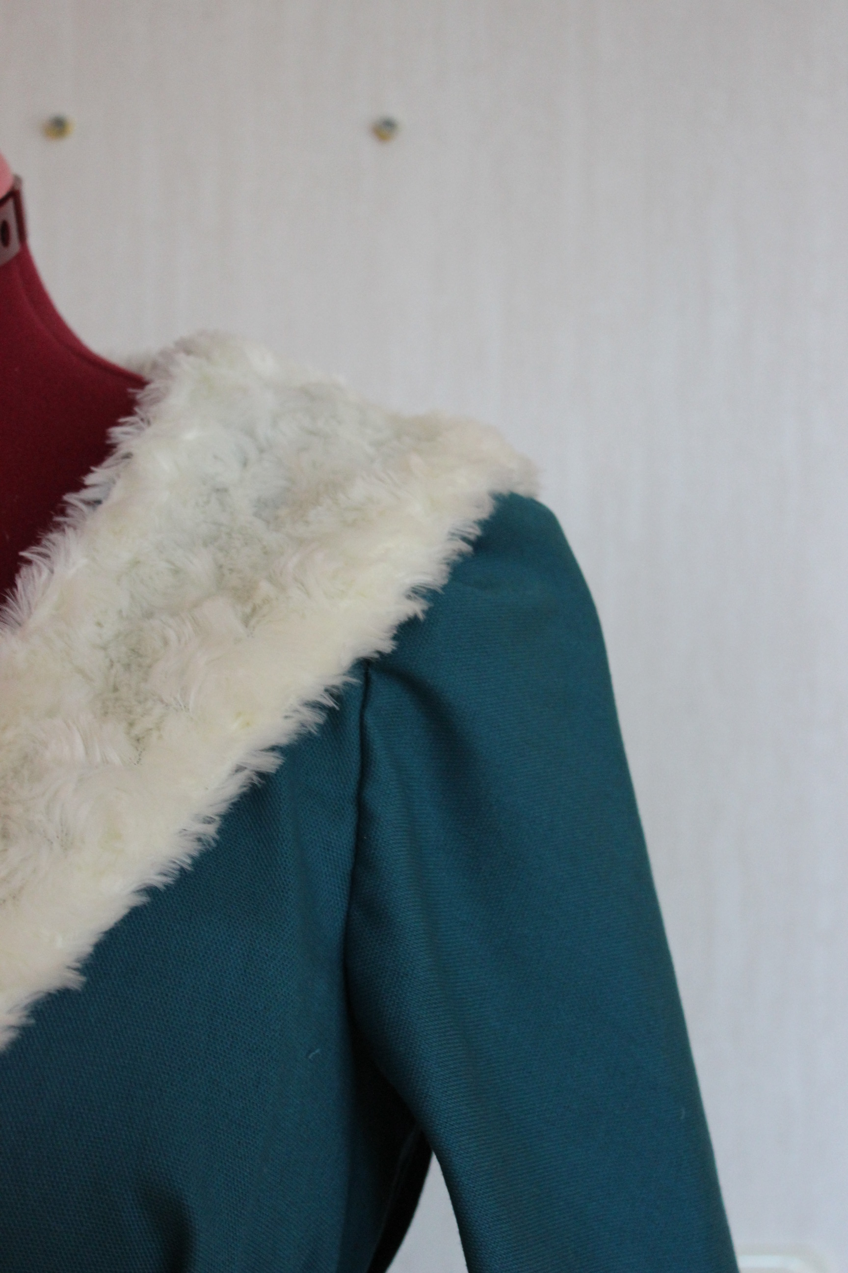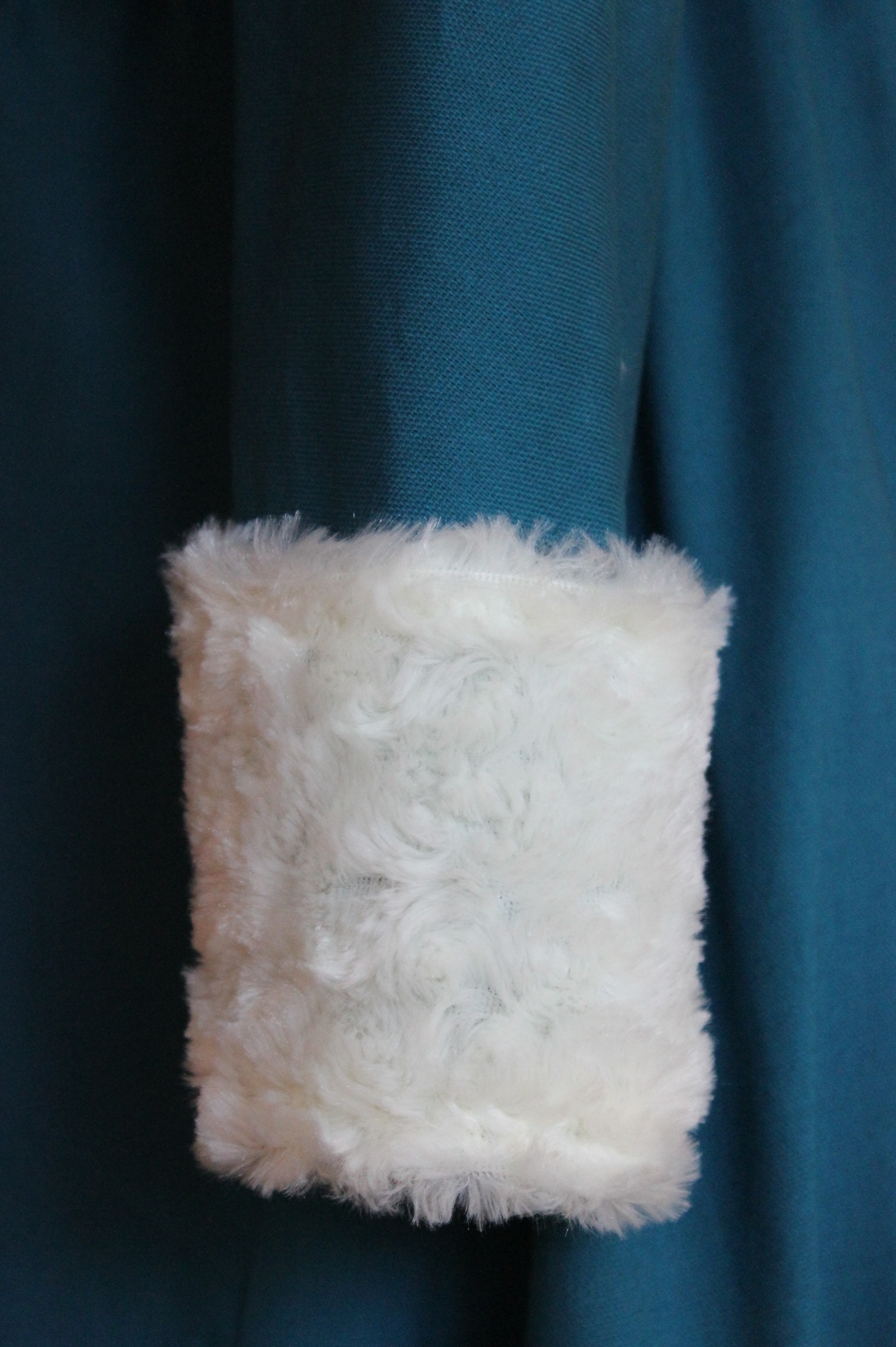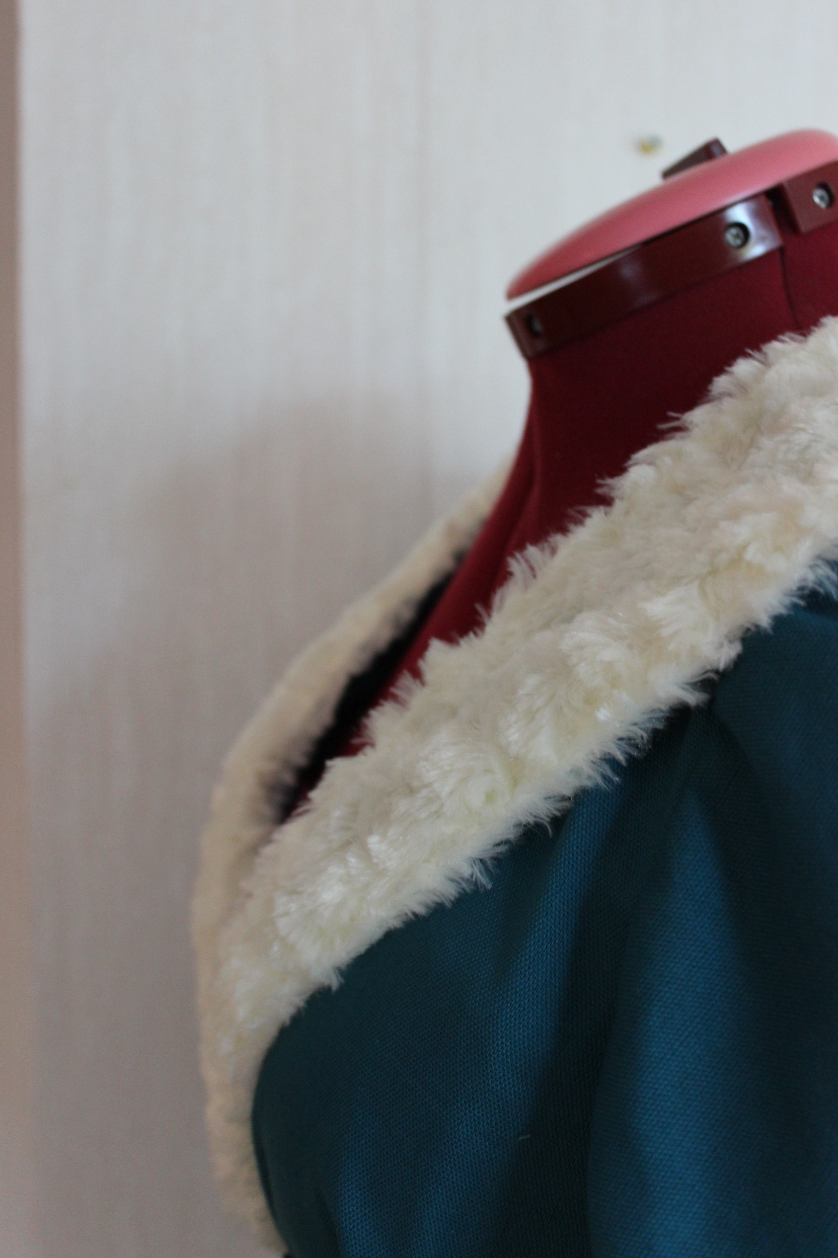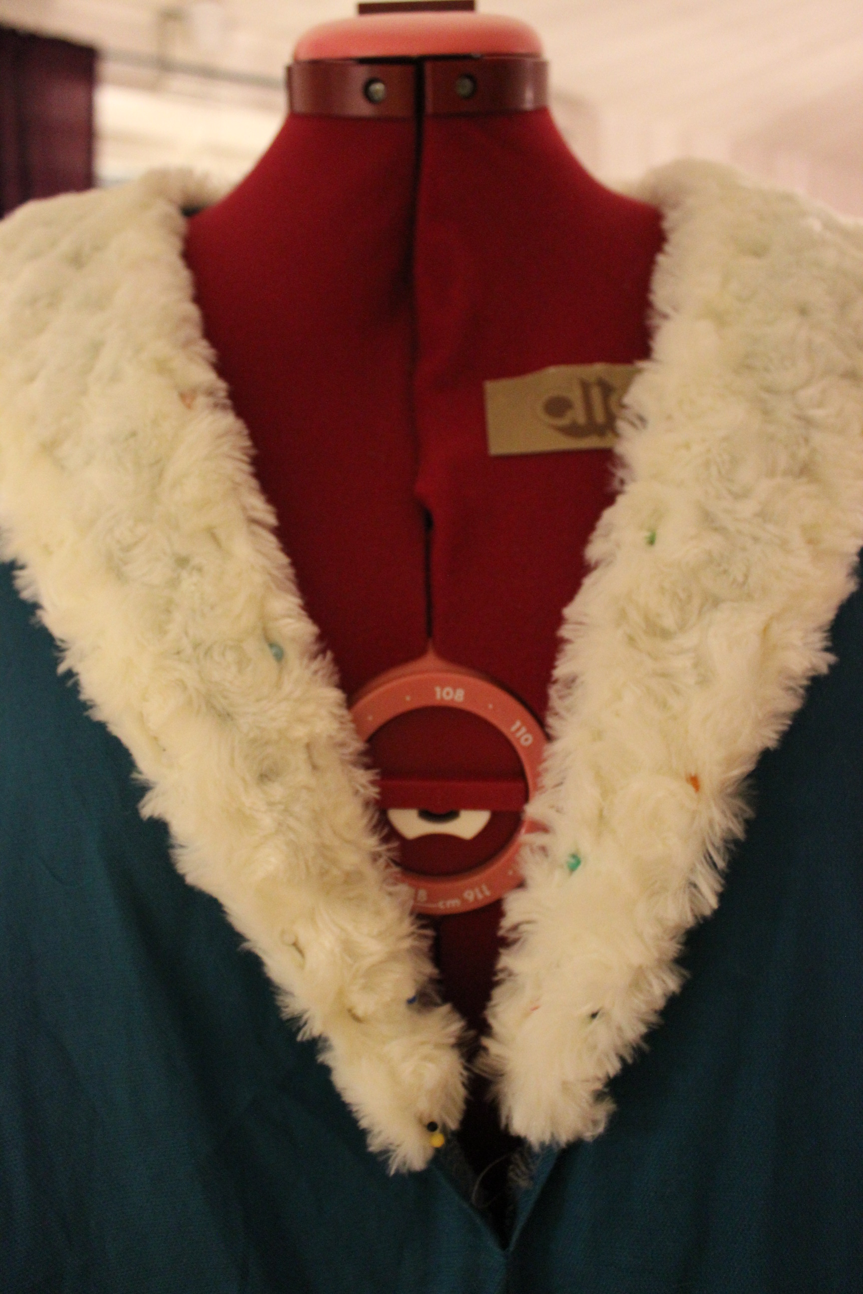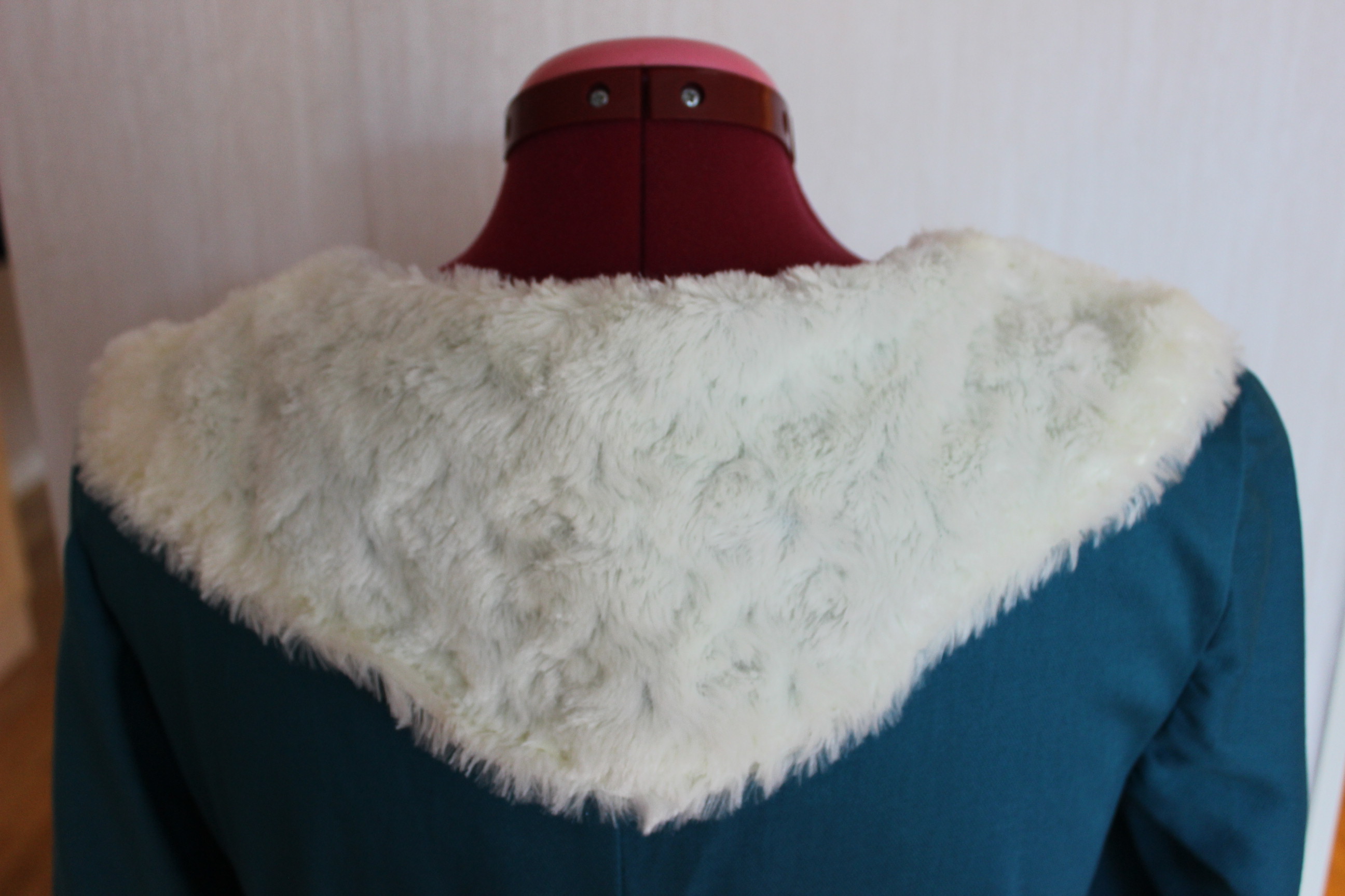 I sewed the collar to the neckline and carefully pinned the fur pieces on top, attaching the by hand.