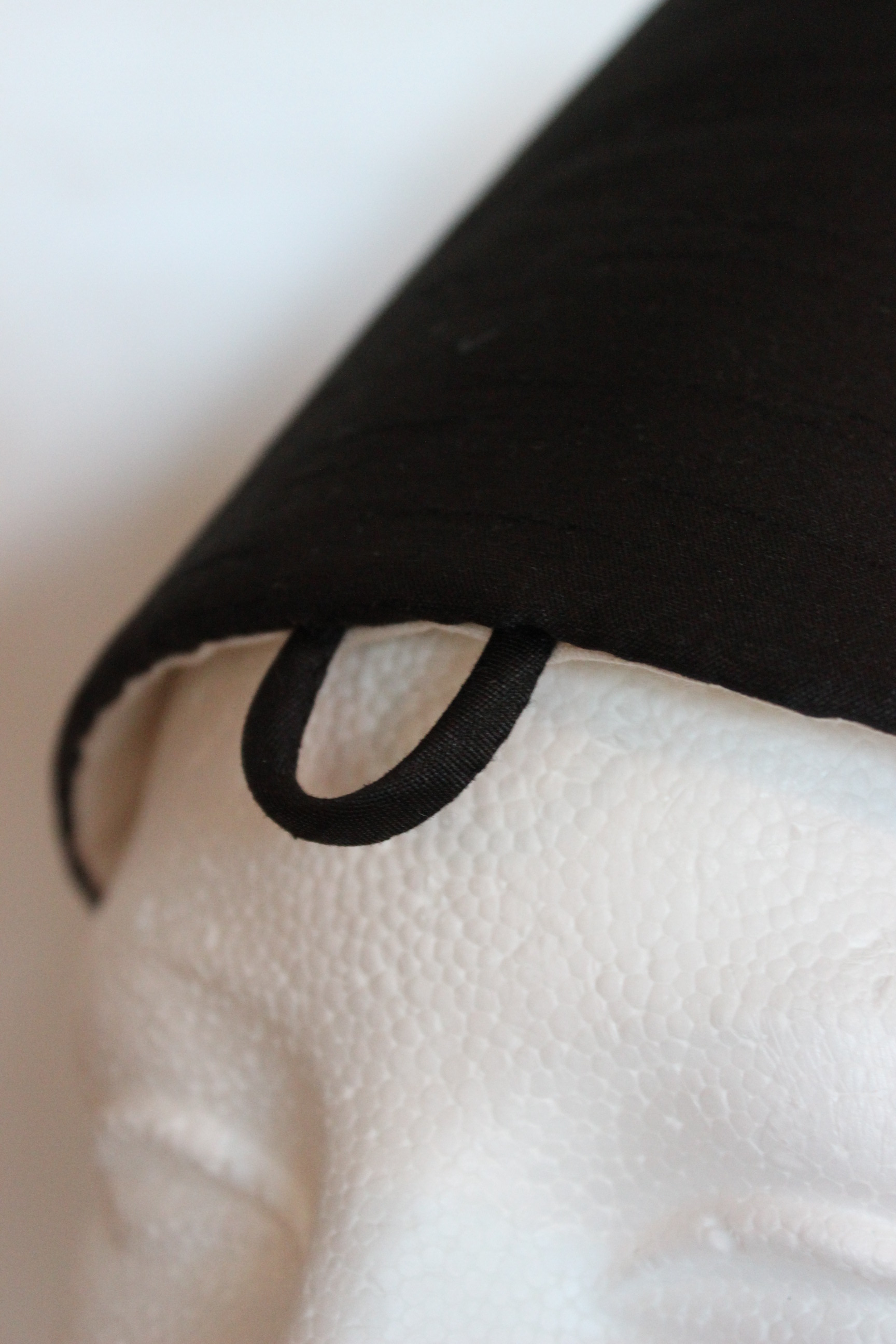 With the dress finished I got to work on the hat, adding the front “loop” and the lining. I finished by attaching a sheer veil (my 18th century fichu) at the top.