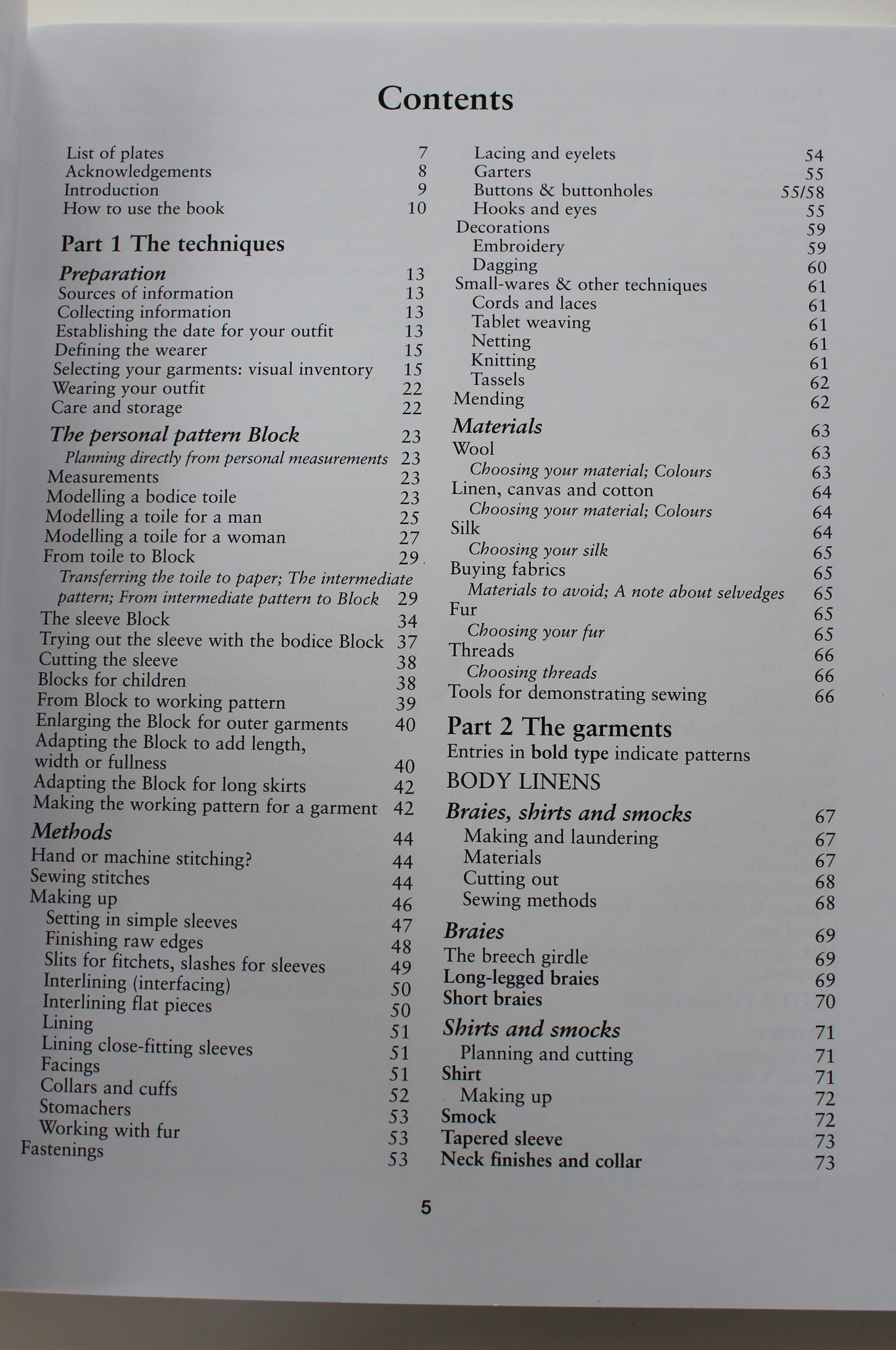 It is a ok about basic medieval pattermaking for men and women. The book does not include sewing instructions, but do however have a couple of pages about stiches, teqnicues and fabrics used at the time.
