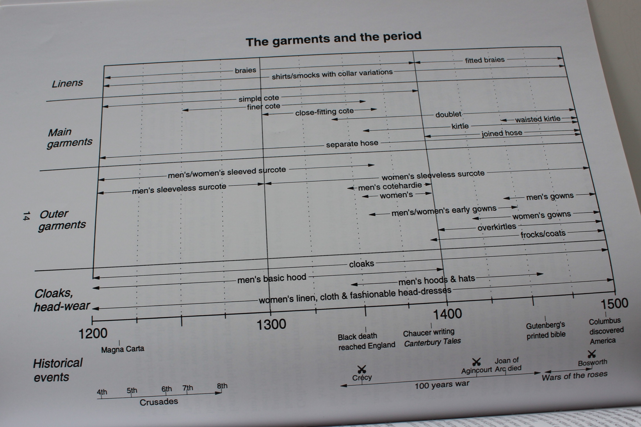 It also have a diagram which shows what clothing pieces were being used during different fashions and times during the time frame caled middle ages.