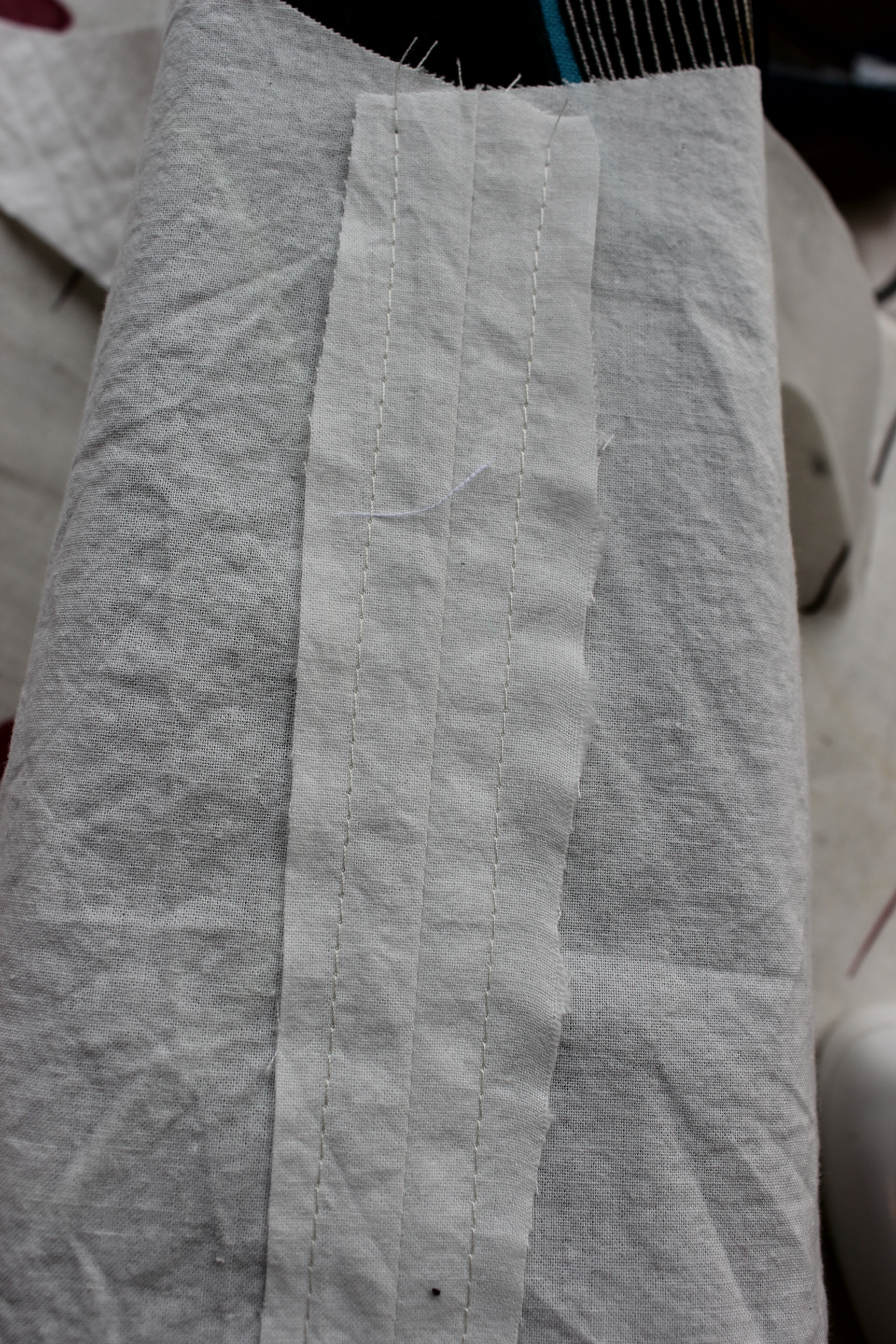 I then started on the lining, sewing boning chanels in the seam allowence.
